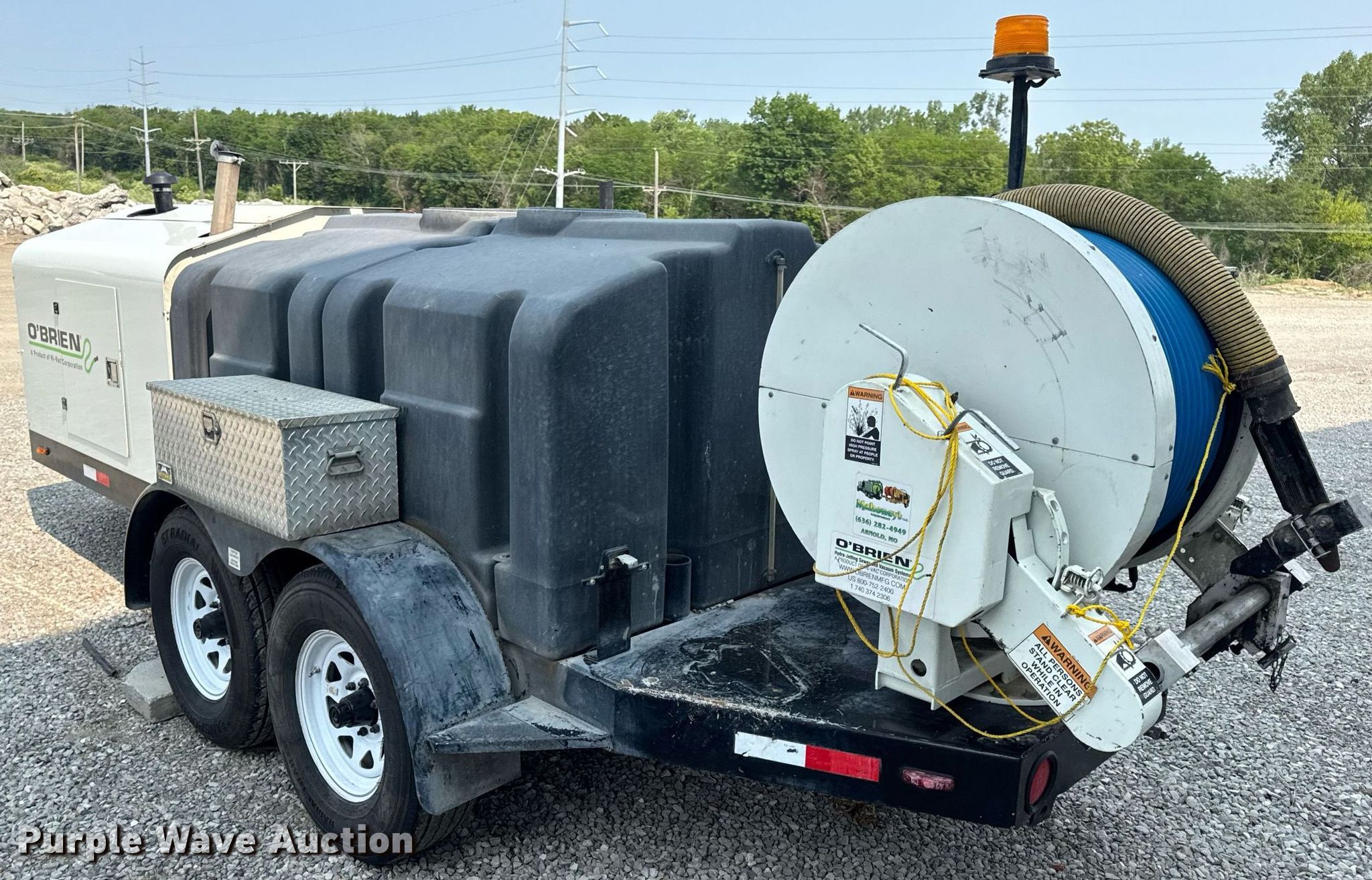 Purple Wave is selling a used Vacuum Excavator in Missouri. This item is a 2016 O'Brien 7040-SC sewer jetter trailer with the following: Hours: 603 on meter, VIN: 1H9BS2129GM511801, Serial: 0BM-1801