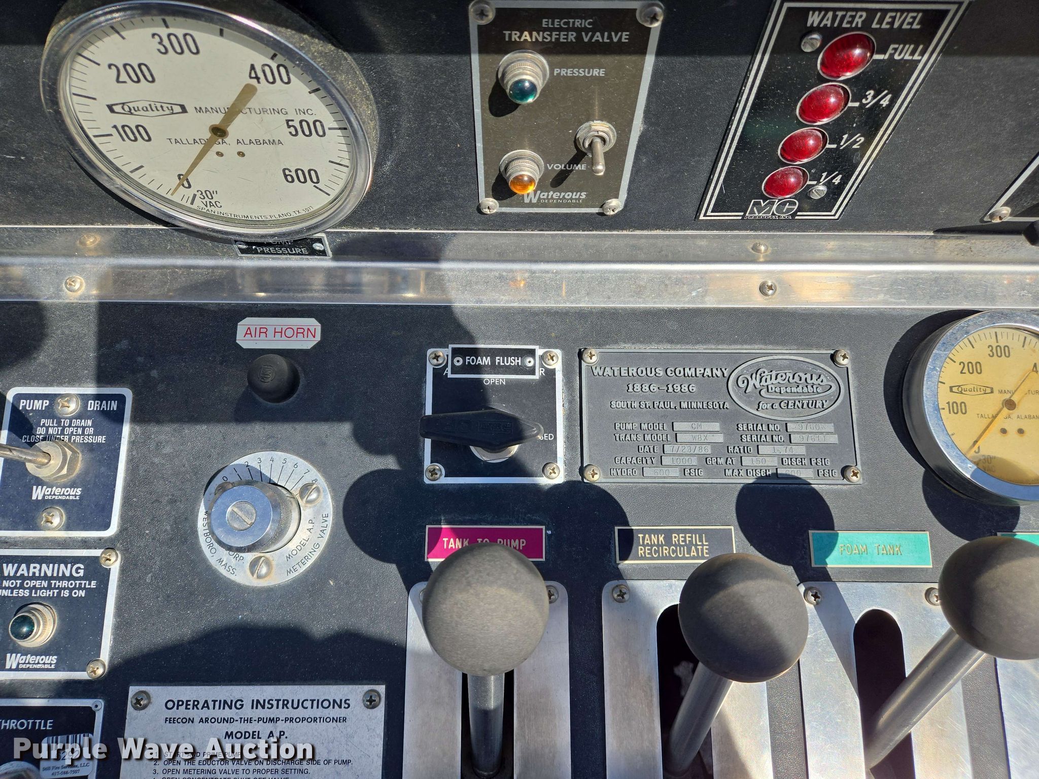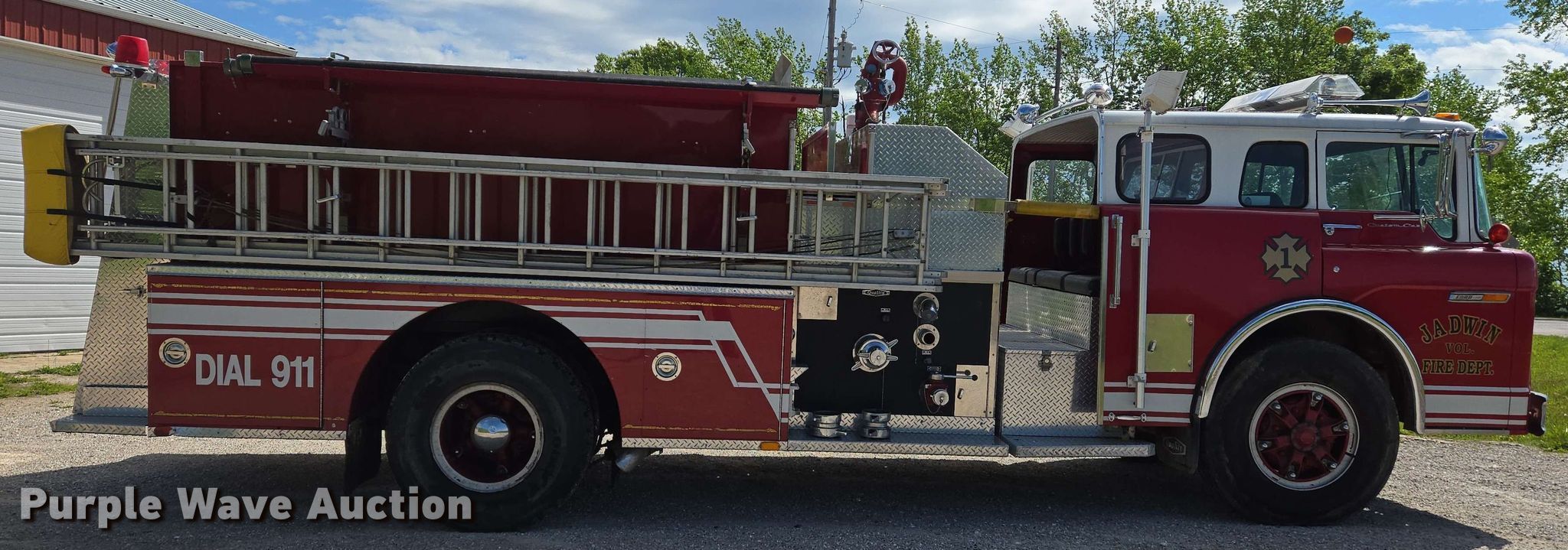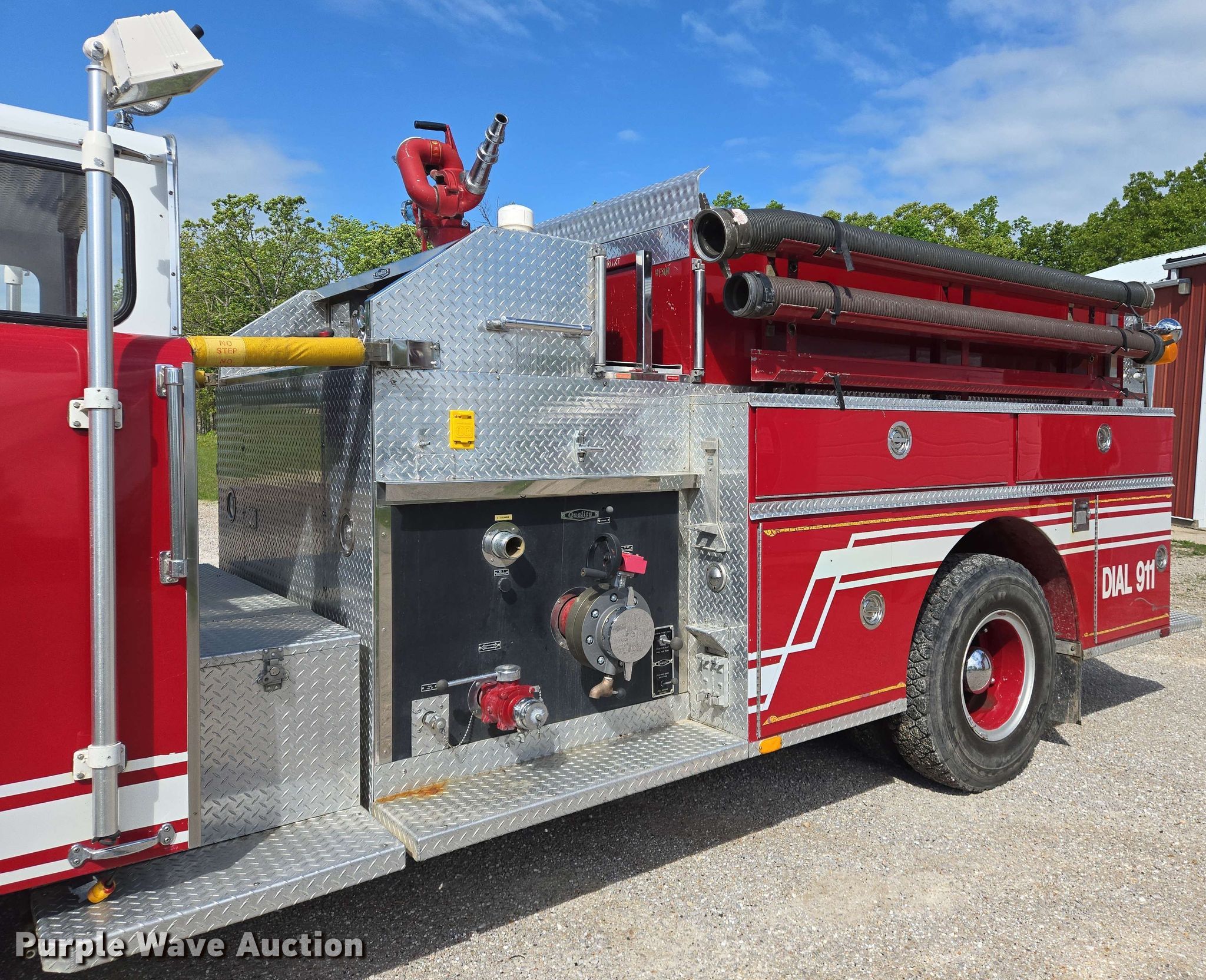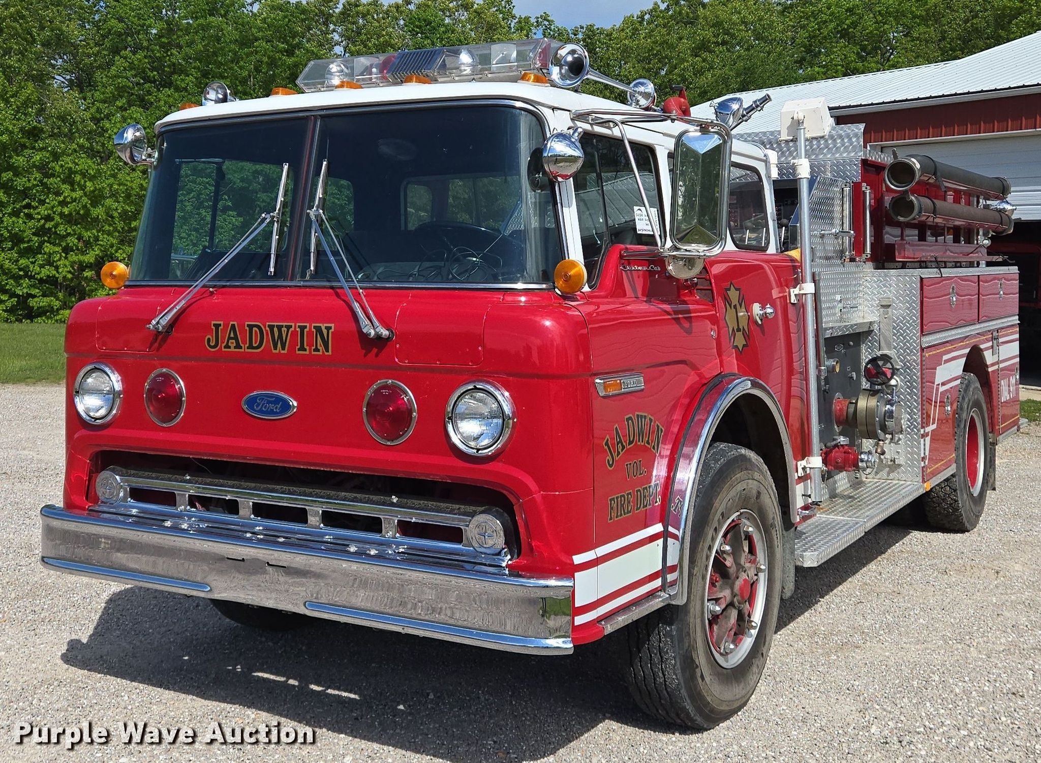 1986 Ford C8000 pumper fire truck. Miles: 41,542 on odometer, VIN: 1FDYD80U6GVA05270. Engine Caterpillar 3208, Displacement: 10.4L, Cylinders: 8, Fuel type: Diesel. Transmission Allison, Automatic. Chassis Axles: Single, Suspension: Spring, Brakes: Air. Interior Heat, Auxiliary controls. Features Fire truck body Quality bed, Tank Capacity: 1,000 gallons, Pump 1,000 gpm, Ground ladder, Generator Briggs & Stratton 11hp, Fuel type: Gas, Electric start, PA/ siren controls. Tires Size: 11.00R20. Notes Traction chains included. Missouri title. Title distribution may be delayed up to 30 days from verification of funds. Jadwin Volunteer Fire Dept.. Jadwin, MO 65501