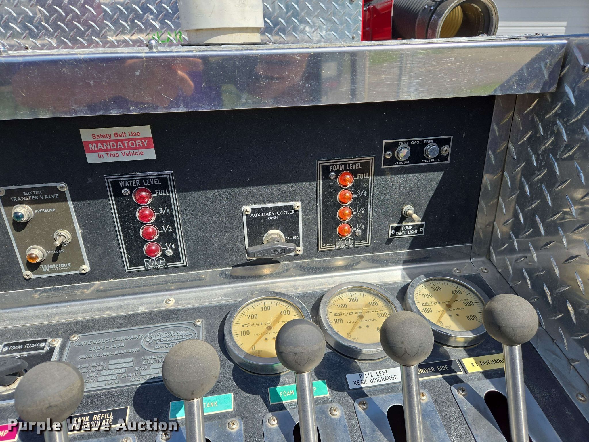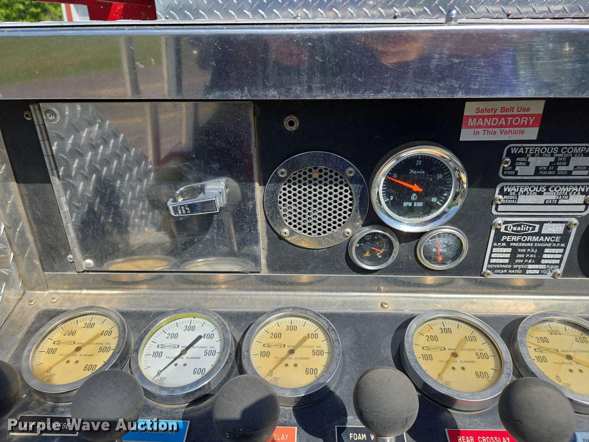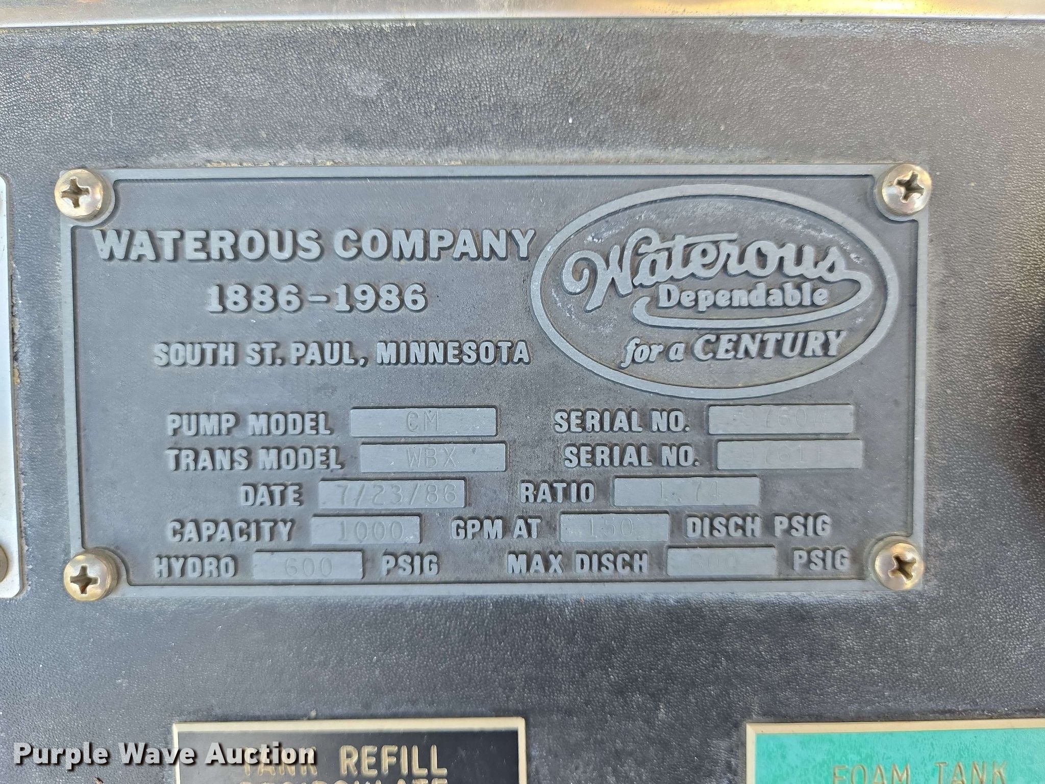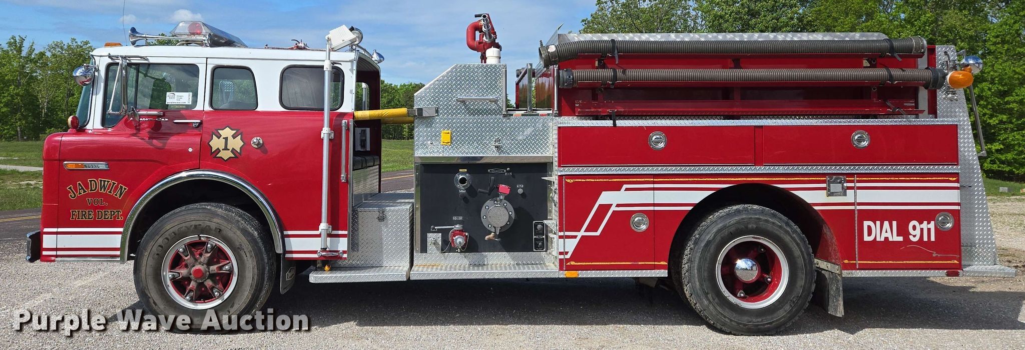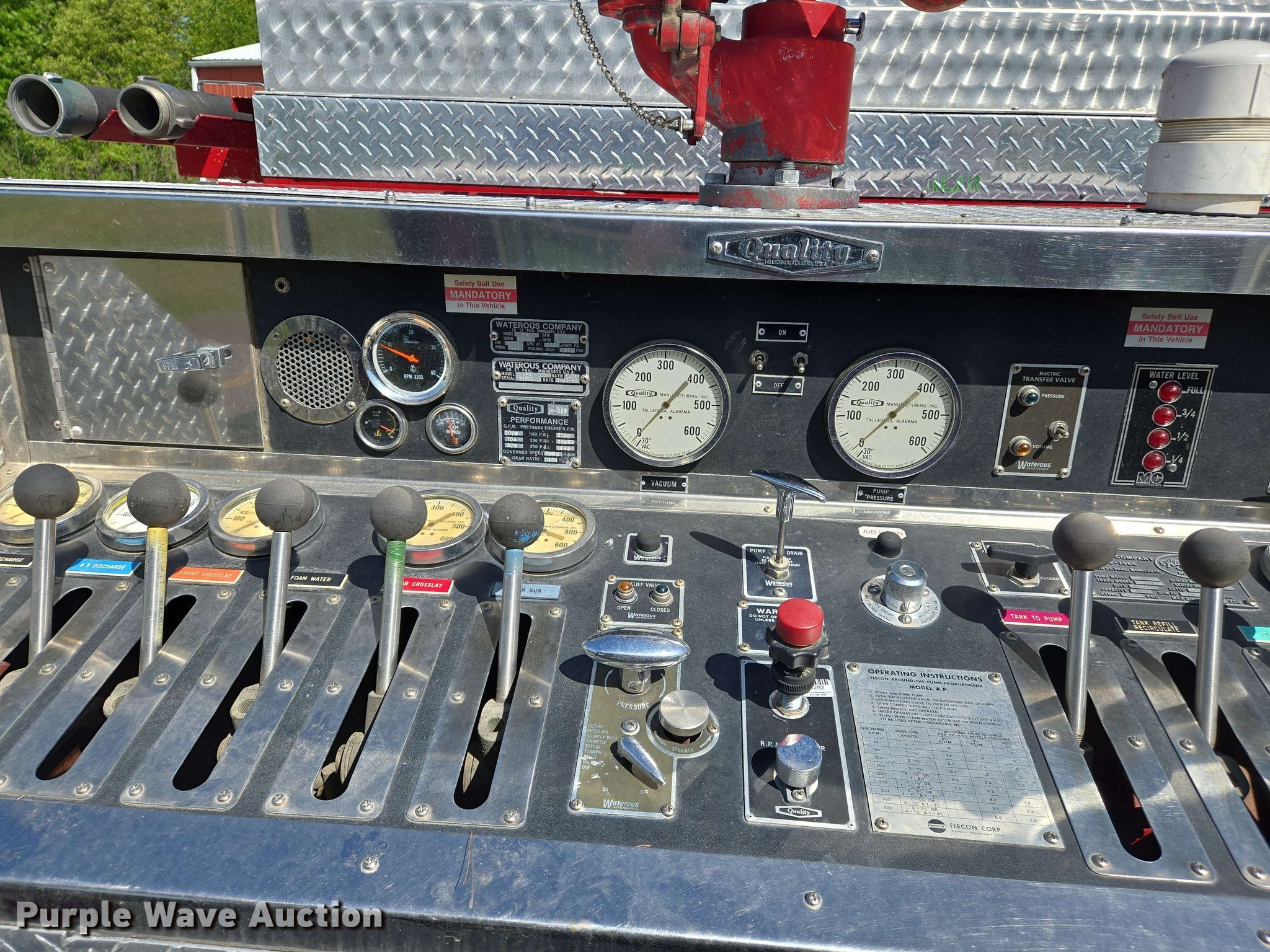 1986 Ford C8000 pumper fire truck. Miles: 41,542 on odometer, VIN: 1FDYD80U6GVA05270. Engine Caterpillar 3208, Displacement: 10.4L, Cylinders: 8, Fuel type: Diesel. Transmission Allison, Automatic. Chassis Axles: Single, Suspension: Spring, Brakes: Air. Interior Heat, Auxiliary controls. Features Fire truck body Quality bed, Tank Capacity: 1,000 gallons, Pump 1,000 gpm, Ground ladder, Generator Briggs & Stratton 11hp, Fuel type: Gas, Electric start, PA/ siren controls. Tires Size: 11.00R20. Notes Traction chains included. Missouri title. Title distribution may be delayed up to 30 days from verification of funds. Jadwin Volunteer Fire Dept.. Jadwin, MO 65501