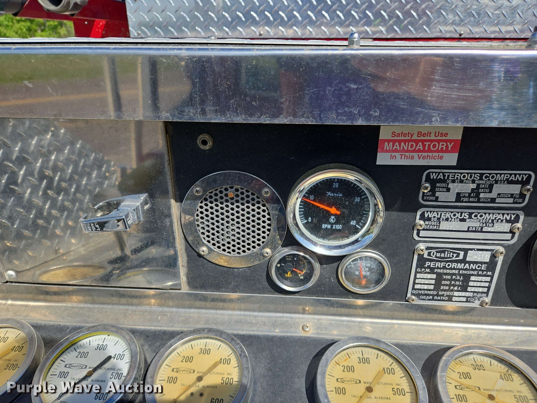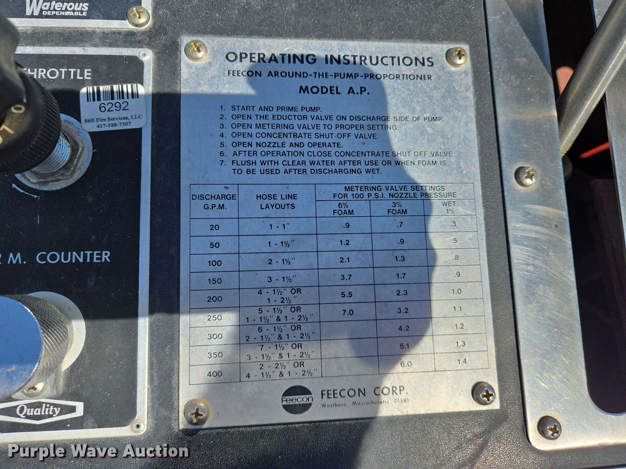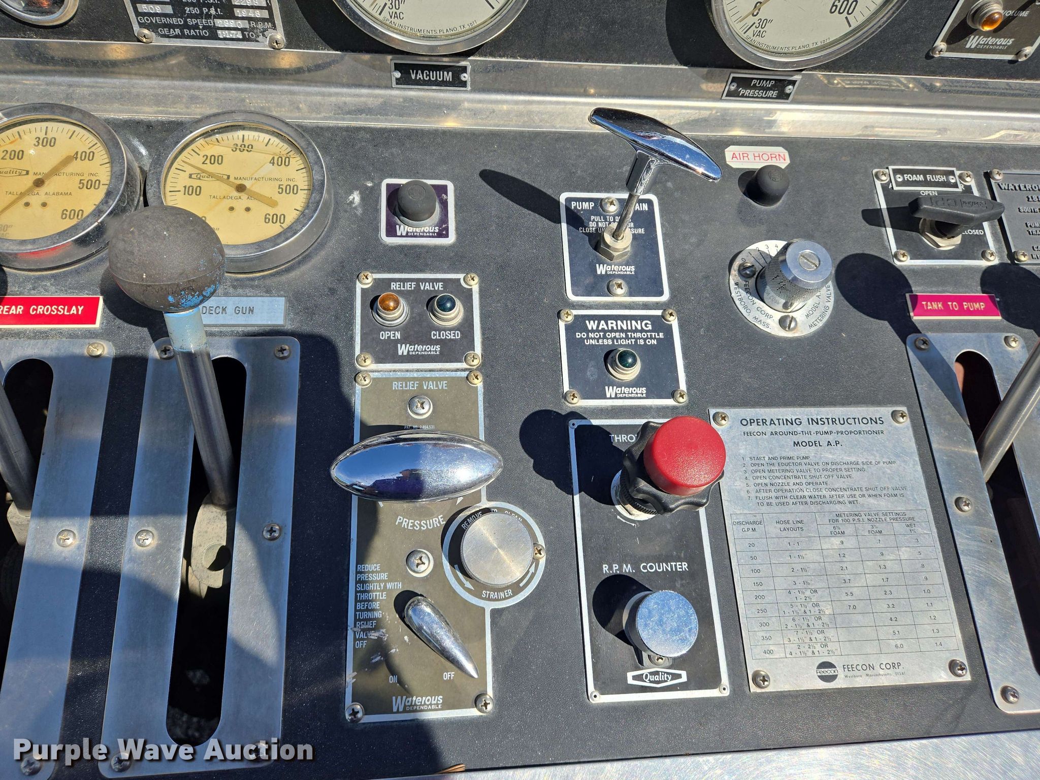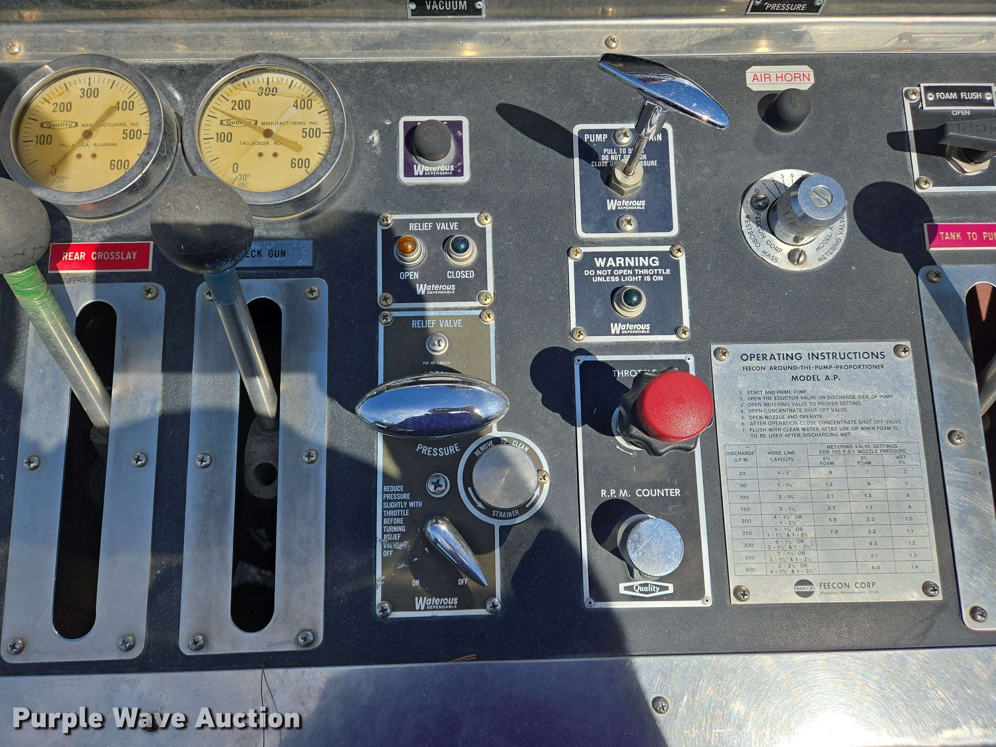 1986 Ford C8000 pumper fire truck. Miles: 41,542 on odometer, VIN: 1FDYD80U6GVA05270. Engine Caterpillar 3208, Displacement: 10.4L, Cylinders: 8, Fuel type: Diesel. Transmission Allison, Automatic. Chassis Axles: Single, Suspension: Spring, Brakes: Air. Interior Heat, Auxiliary controls. Features Fire truck body Quality bed, Tank Capacity: 1,000 gallons, Pump 1,000 gpm, Ground ladder, Generator Briggs & Stratton 11hp, Fuel type: Gas, Electric start, PA/ siren controls. Tires Size: 11.00R20. Notes Traction chains included. Missouri title. Title distribution may be delayed up to 30 days from verification of funds. Jadwin Volunteer Fire Dept.. Jadwin, MO 65501