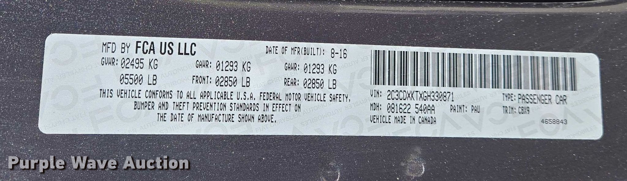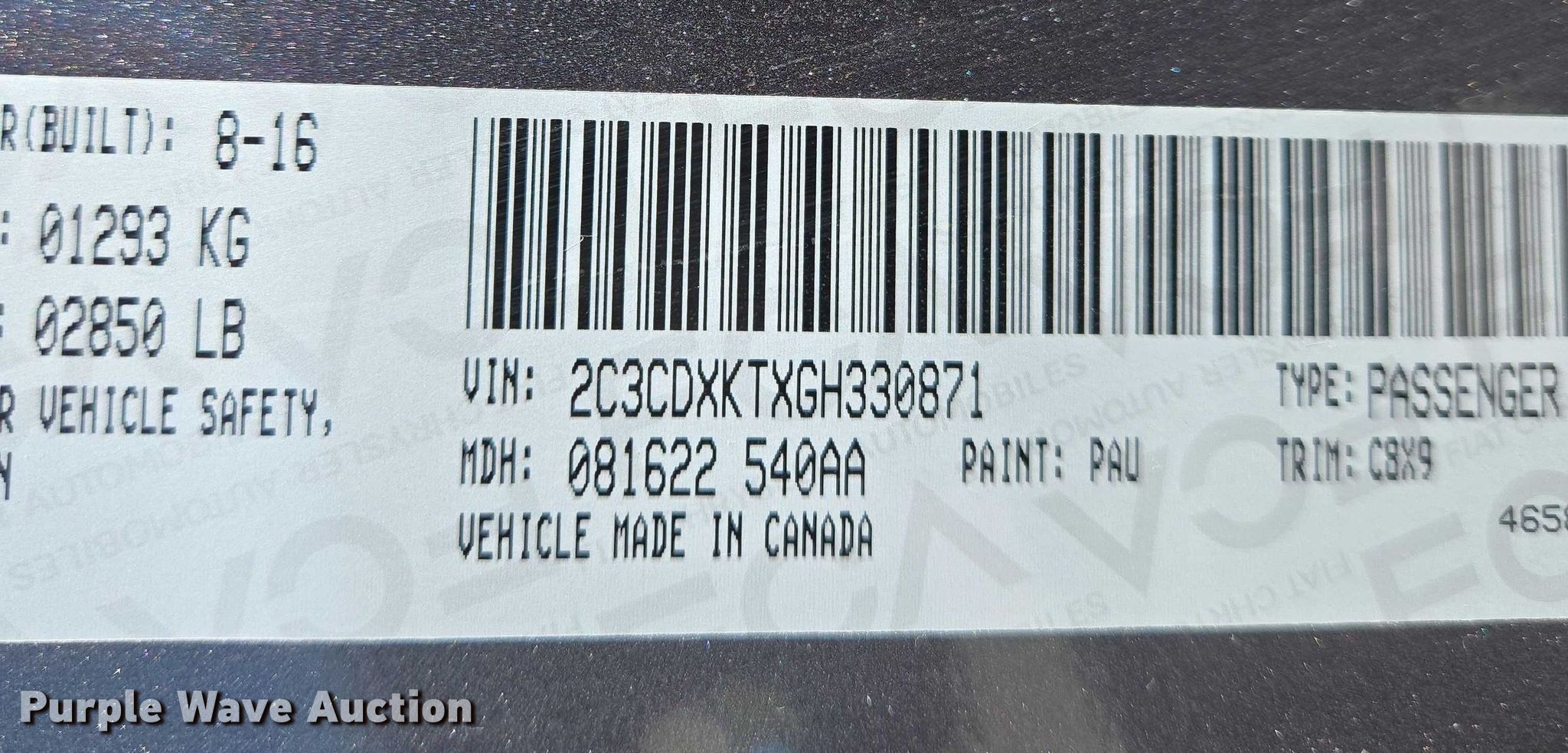 - VIN: 2C3CDXKTXGH330871