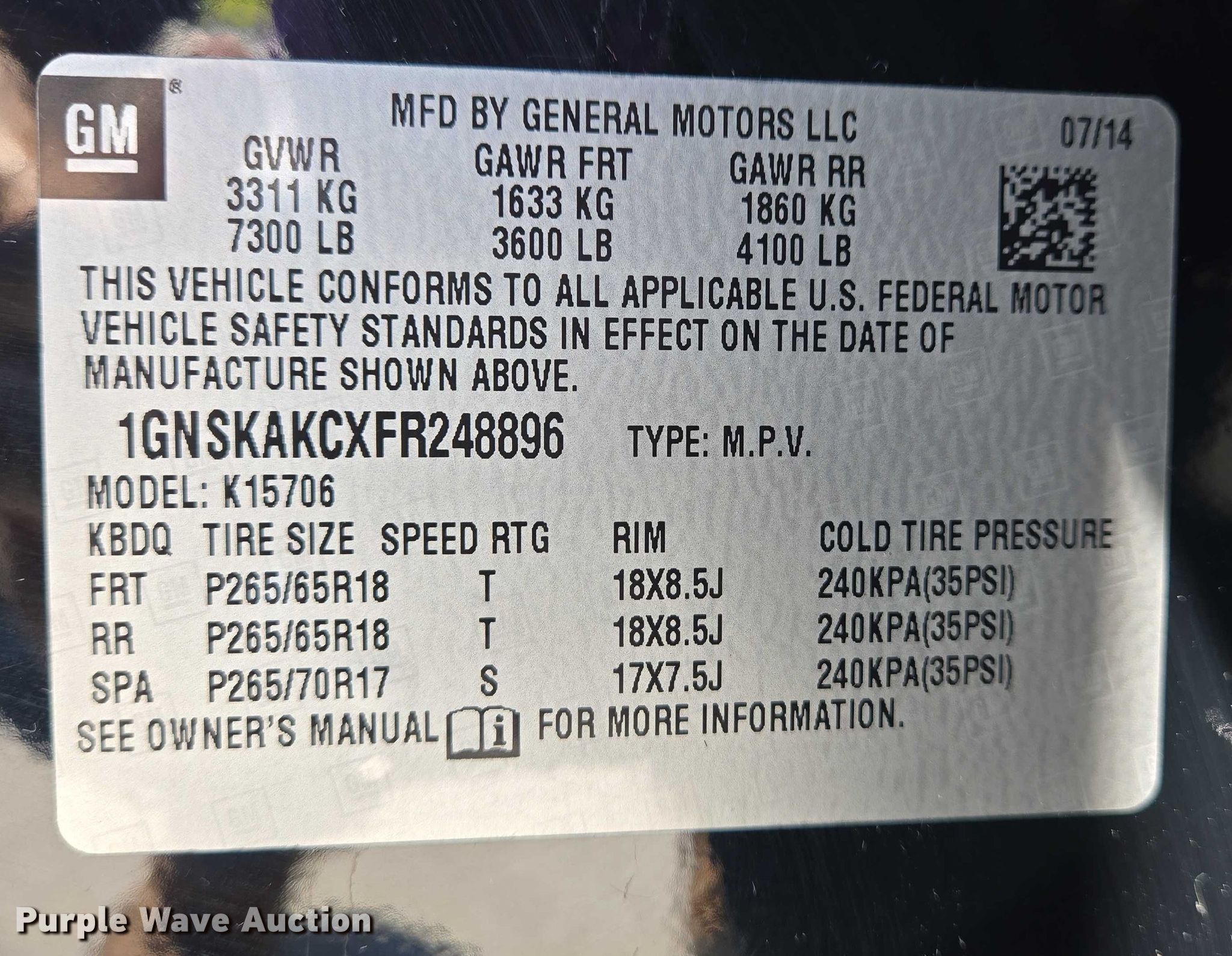 Purple Wave is selling a used Passenger Vehicle in Missouri. This item is a 2015 Chevrolet Tahoe SUV with the following: Miles: 117,388 on odometer, VIN: 1GNSKAKCXFR248896
