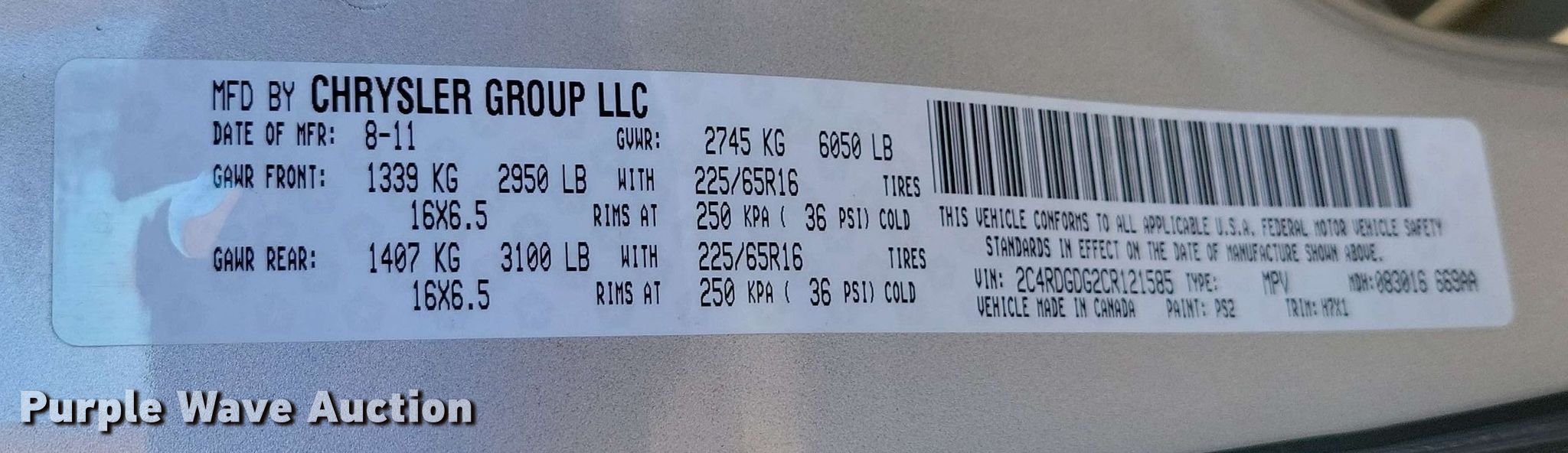 Purple Wave is selling a used Passenger Vehicle in South Dakota. This item is a 2012 Dodge Grand Caravan Crew van with the following: Miles: 147,972 on odometer, VIN: 2C4RDGDG2CR121585