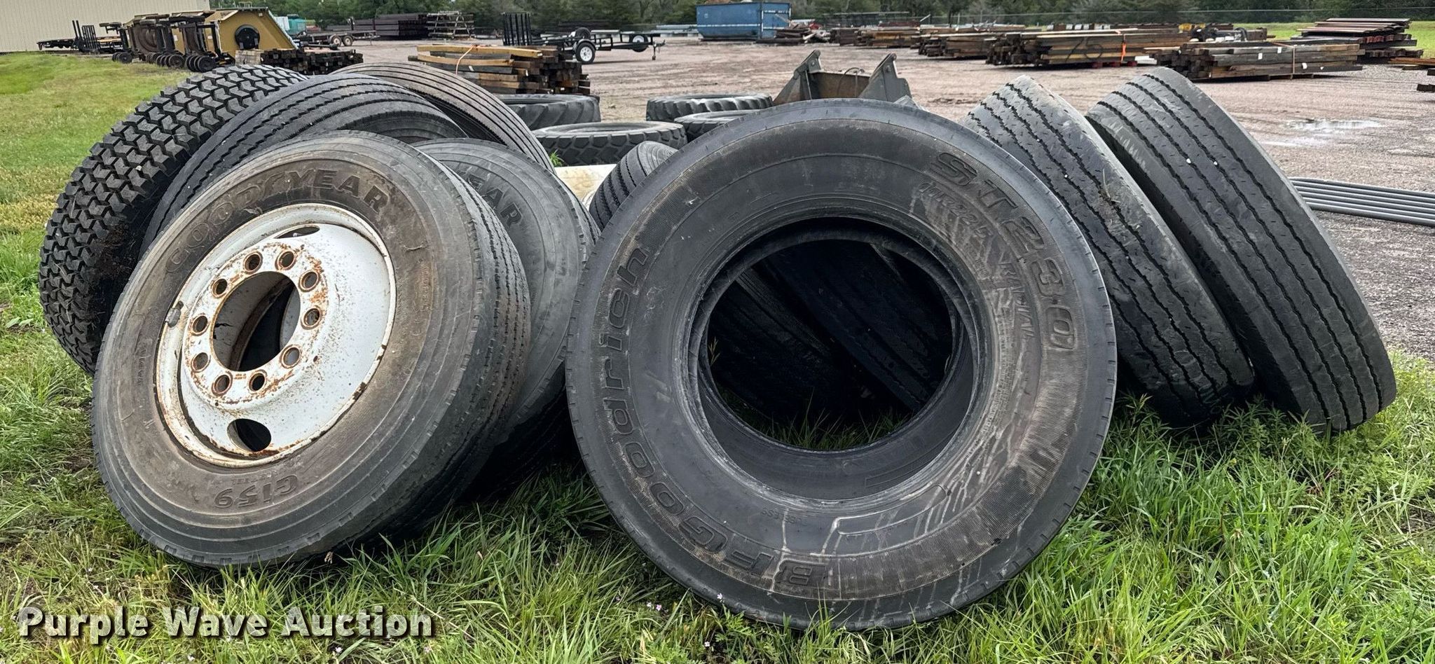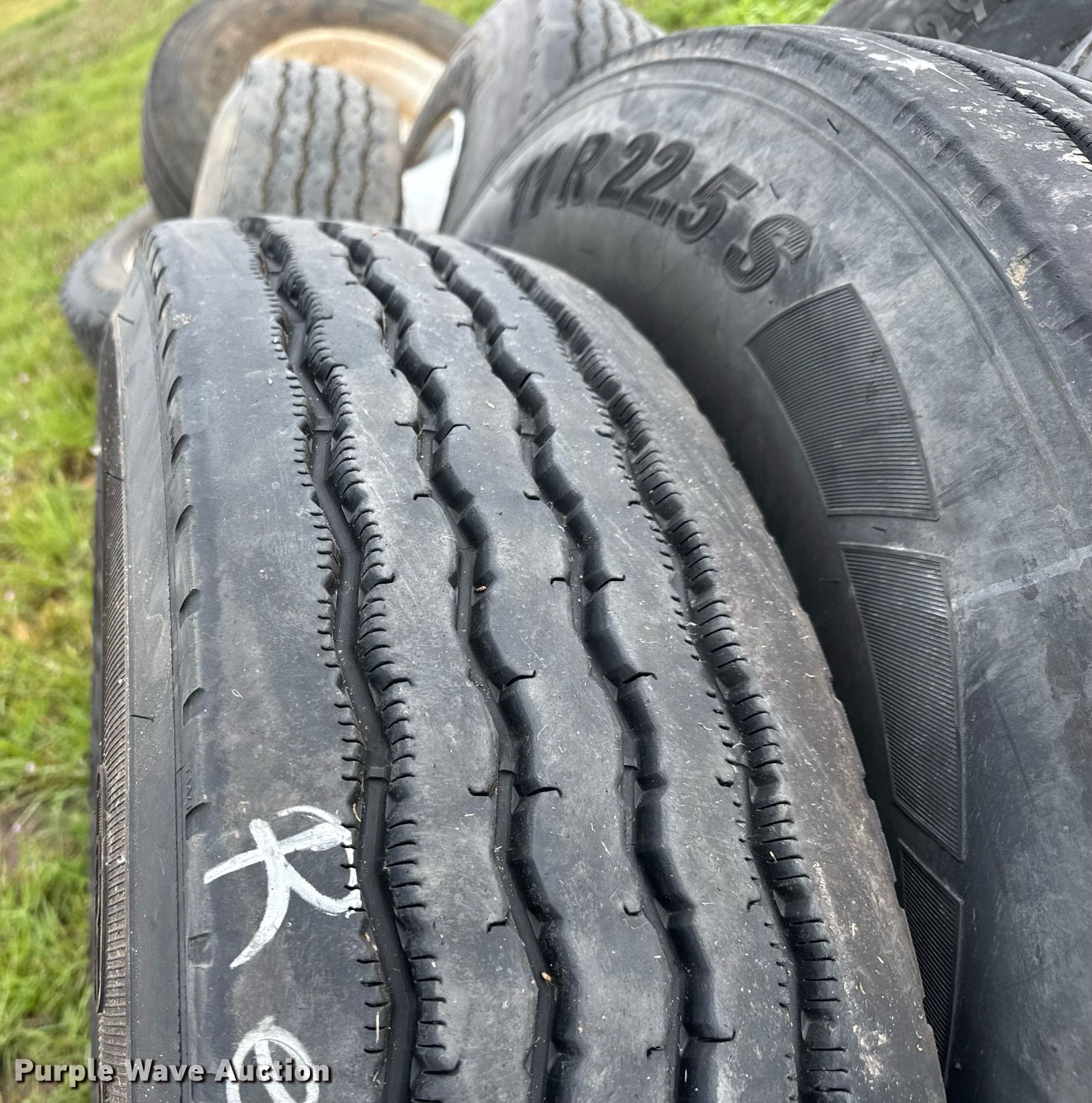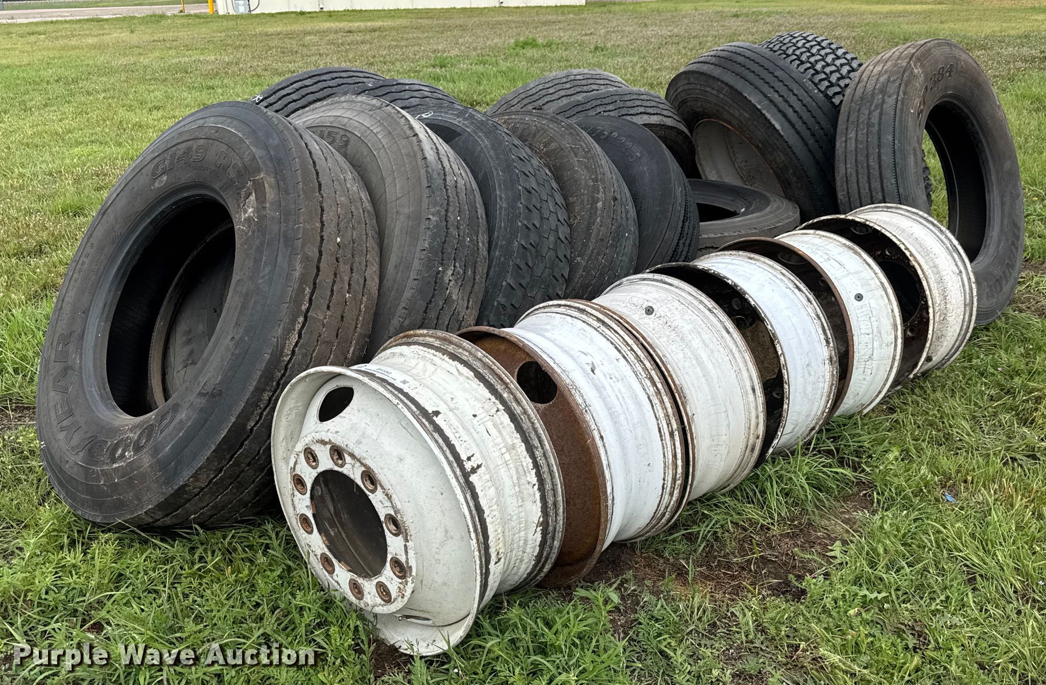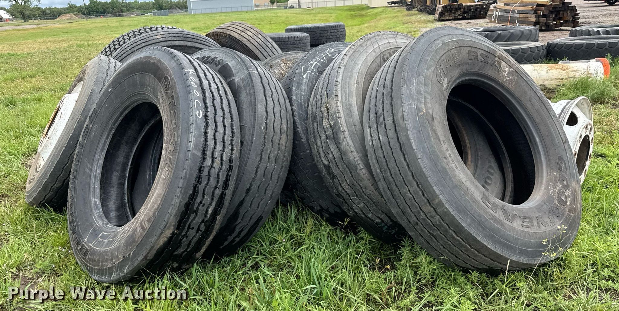 Purple Wave is selling a used Fleet Tires in Kansas. This item is a Tires and wheels with the following: (14) tires, Sizes include:, 10R22.5, 11.00R20, 11R22.5, 11R24.5, 12R22.5, 275/80R22.5, 295/75R22.5,, (10) wheels