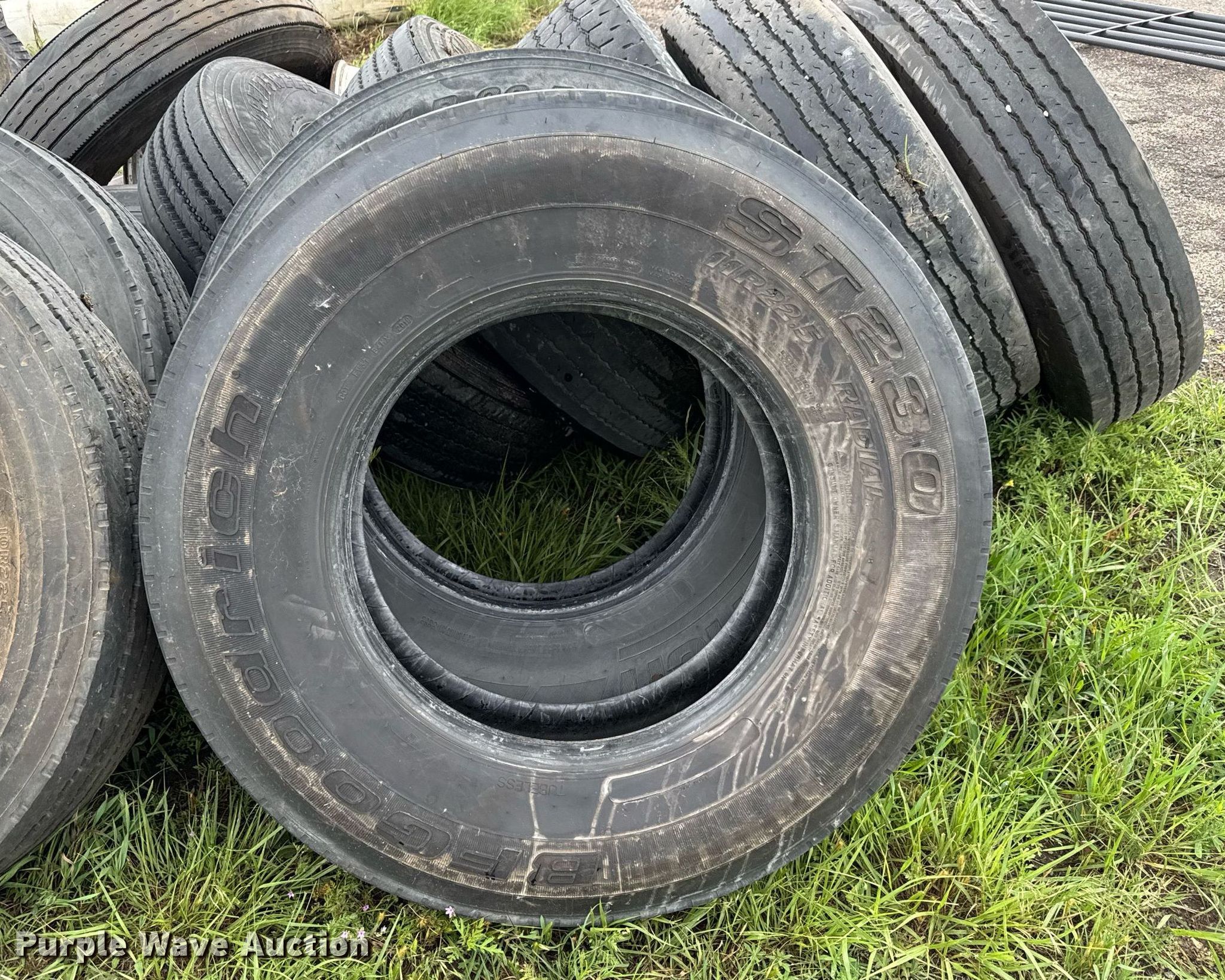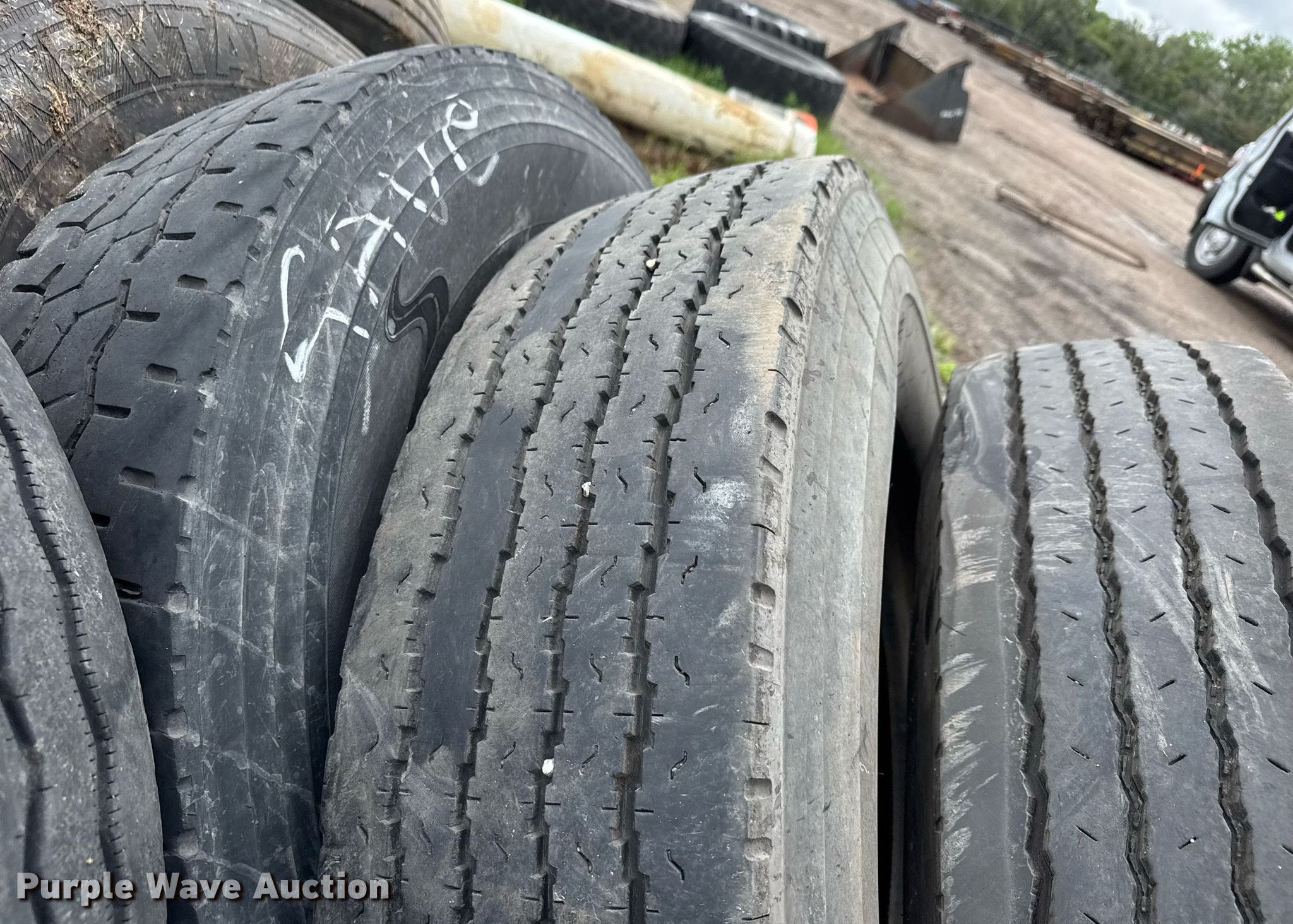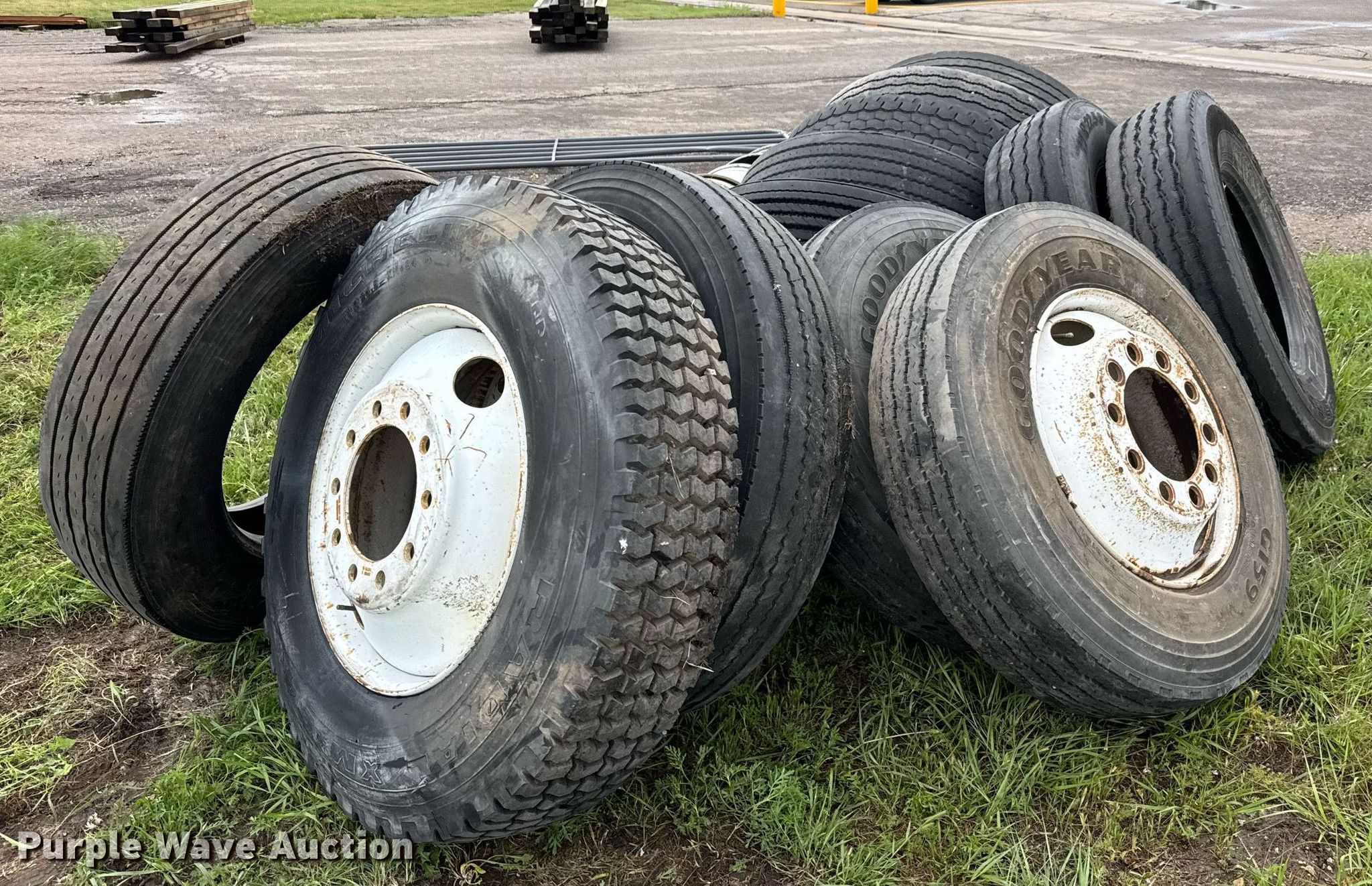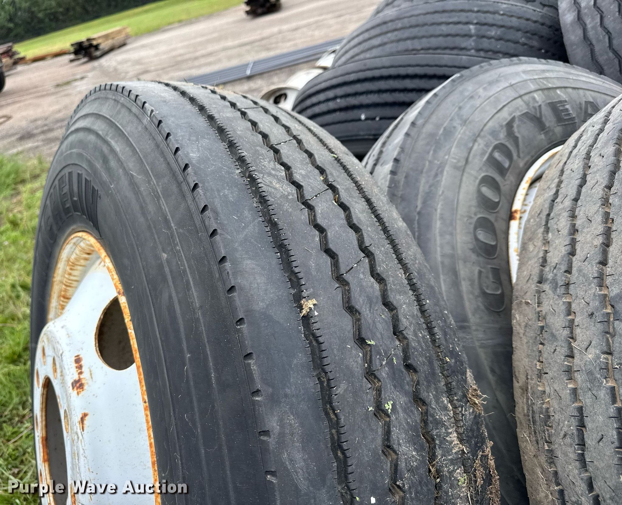 Purple Wave is selling a used Fleet Tires in Kansas. This item is a Tires and wheels with the following: (14) tires, Sizes include:, 10R22.5, 11.00R20, 11R22.5, 11R24.5, 12R22.5, 275/80R22.5, 295/75R22.5,, (10) wheels