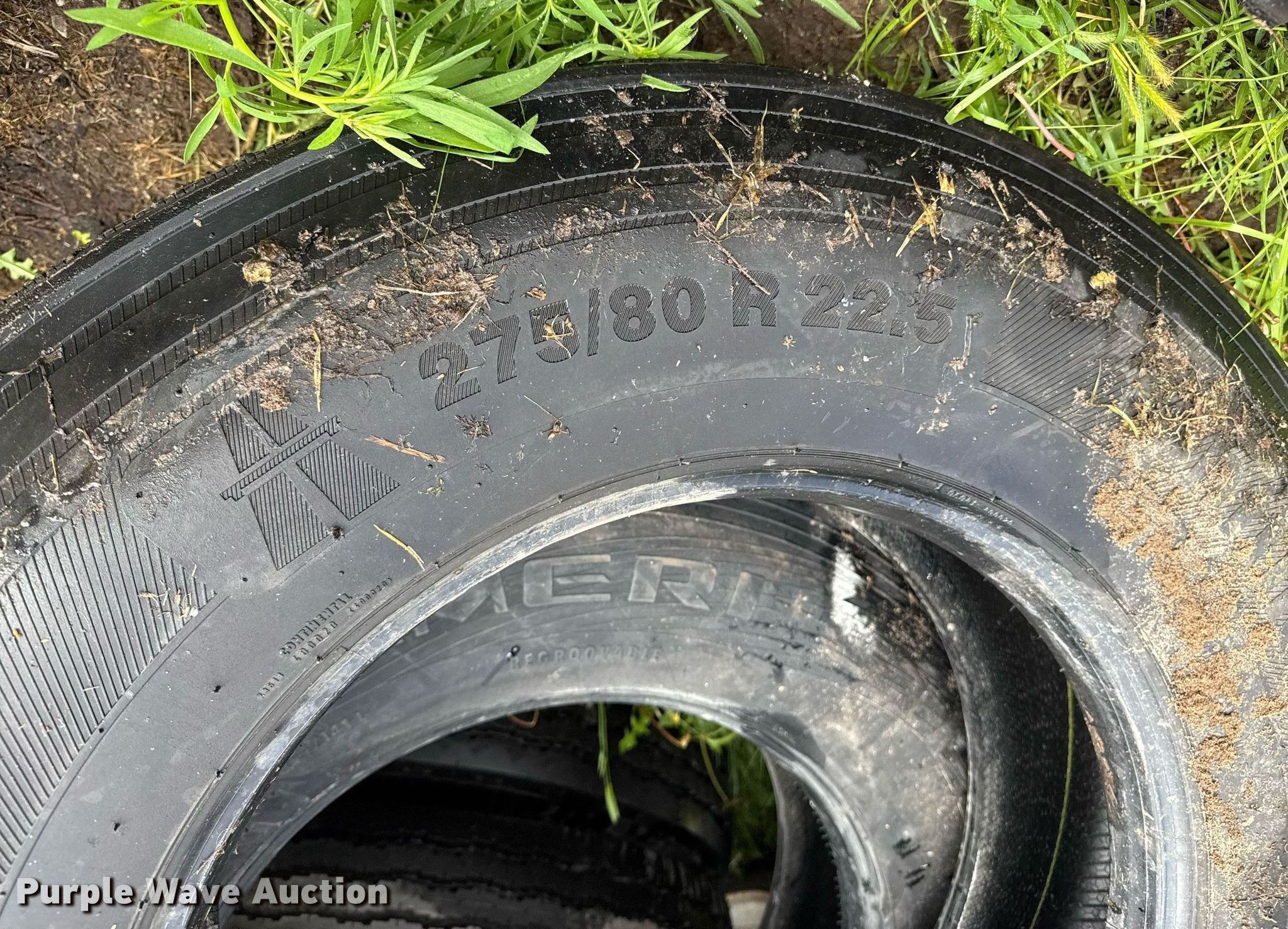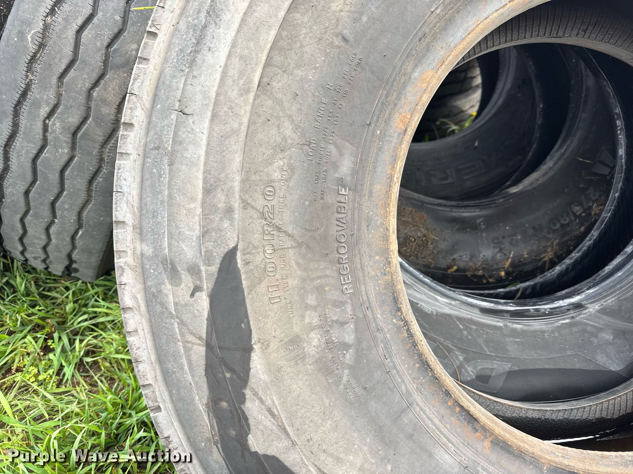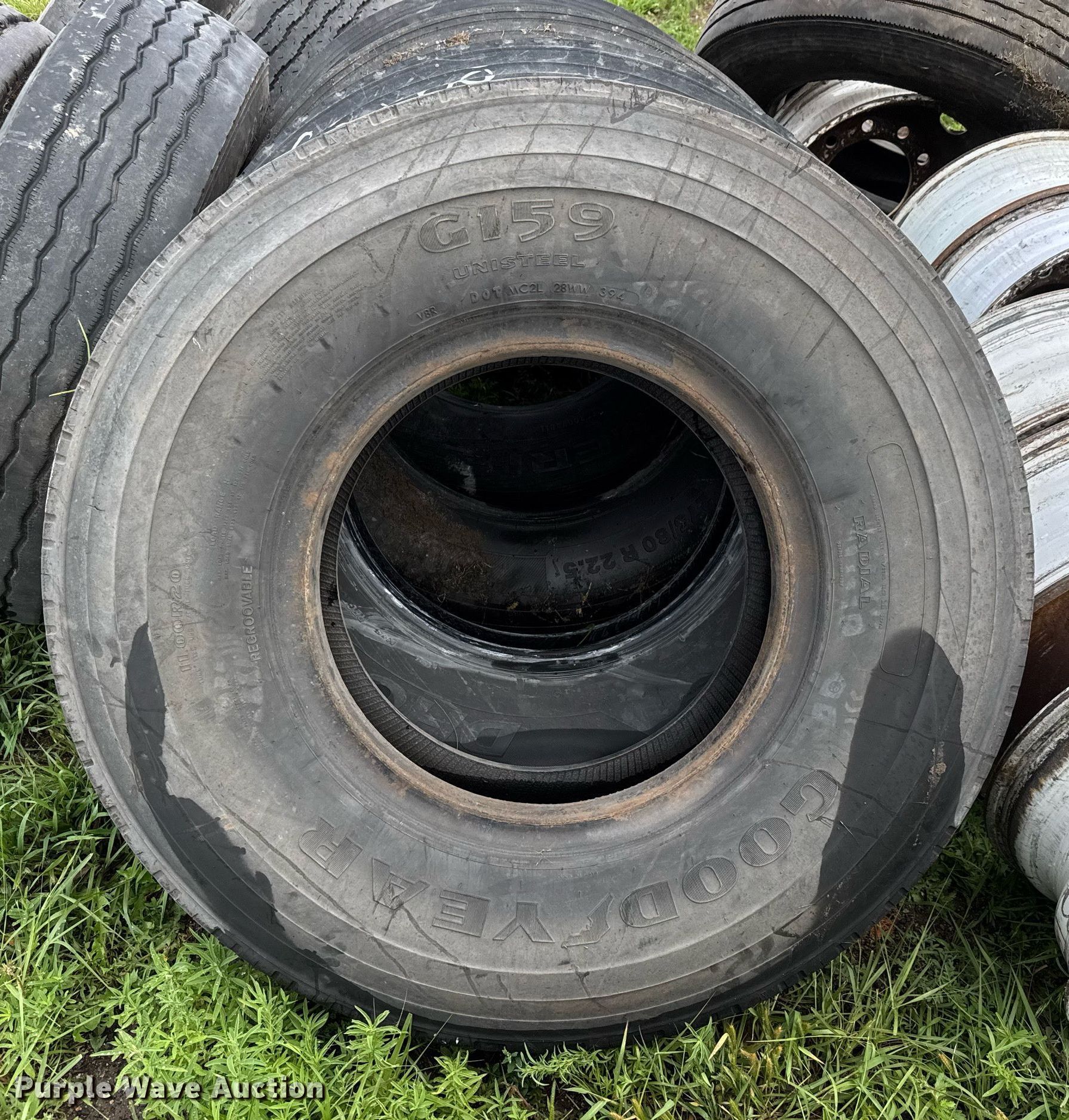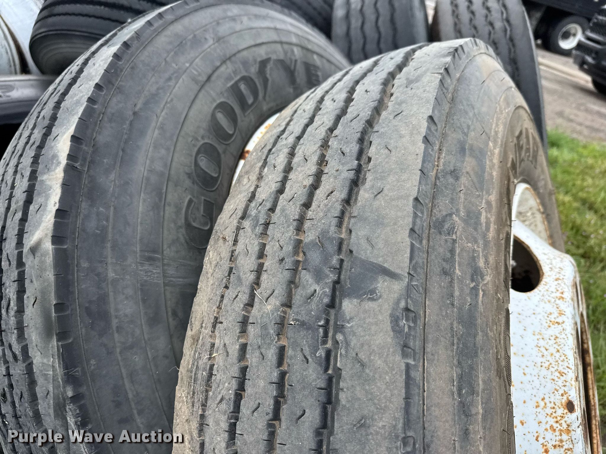 Purple Wave is selling a used Fleet Tires in Kansas. This item is a Tires and wheels with the following: (14) tires, Sizes include:, 10R22.5, 11.00R20, 11R22.5, 11R24.5, 12R22.5, 275/80R22.5, 295/75R22.5,, (10) wheels