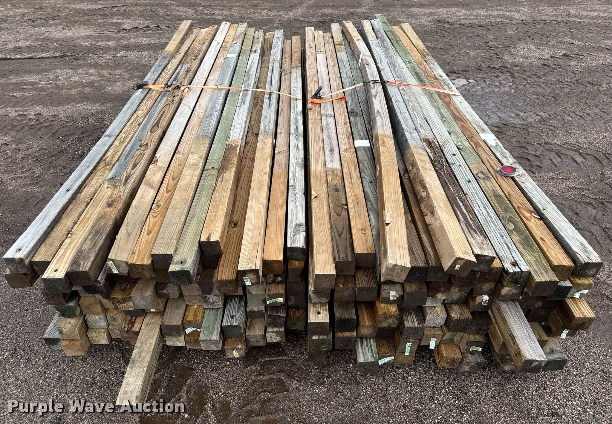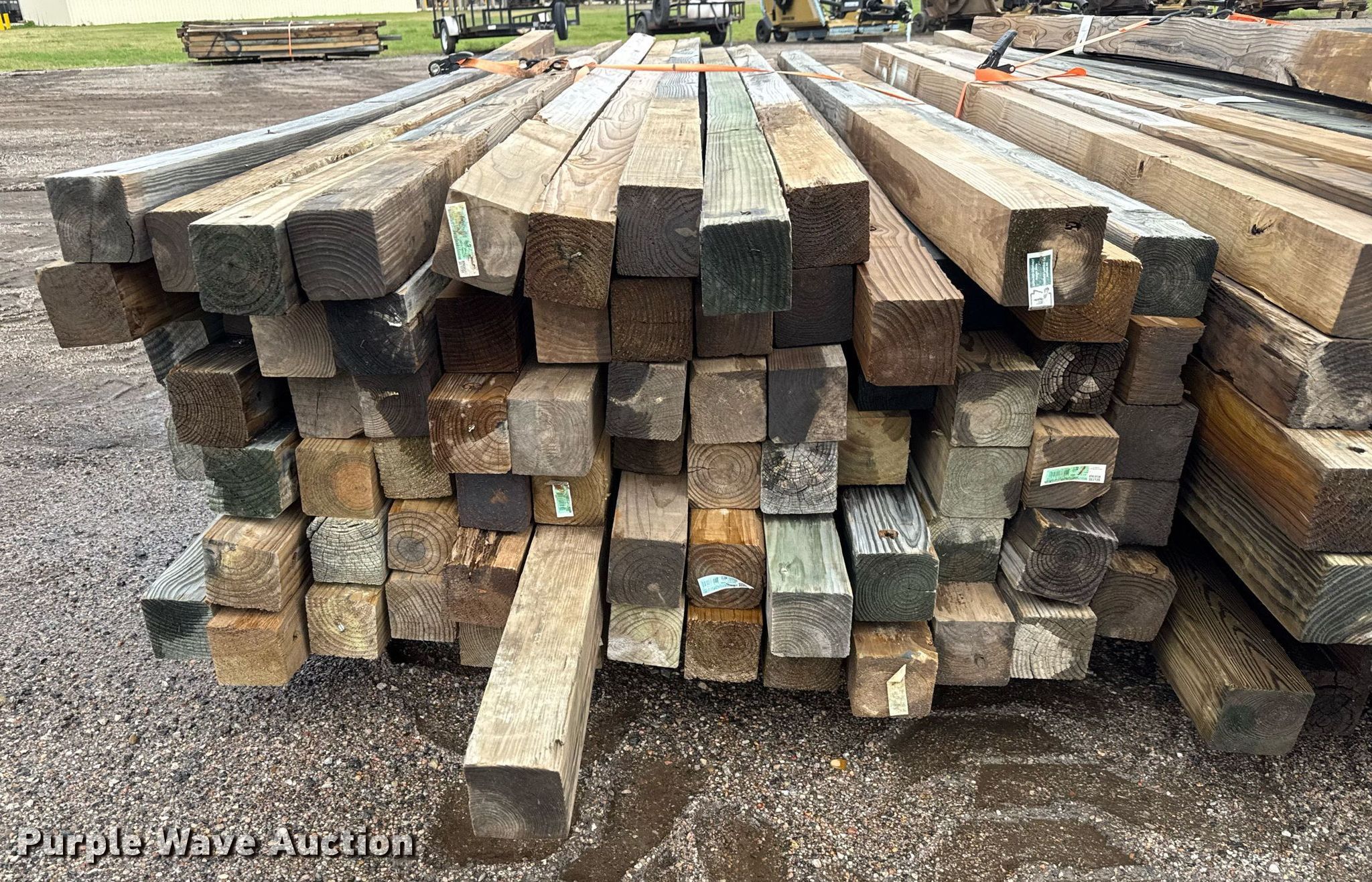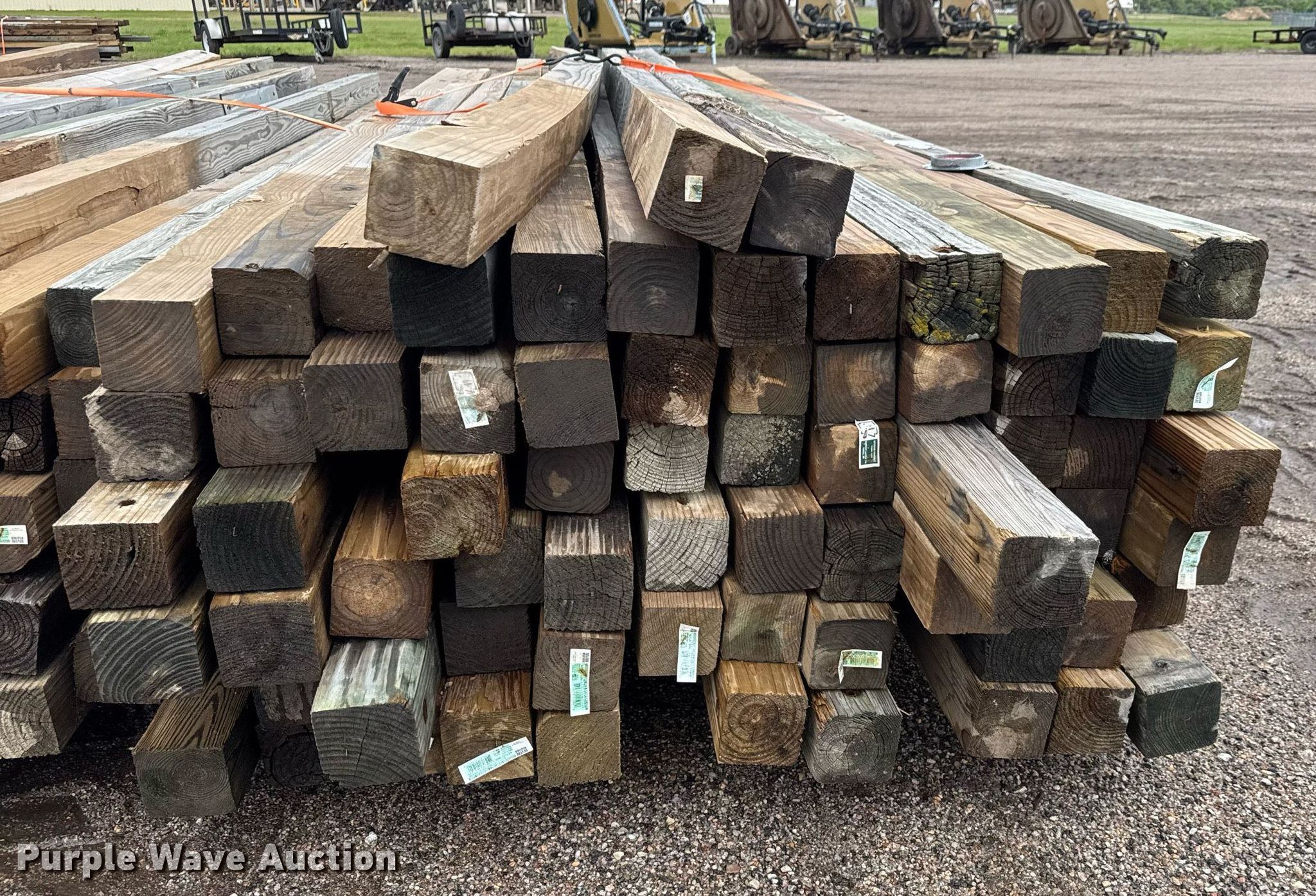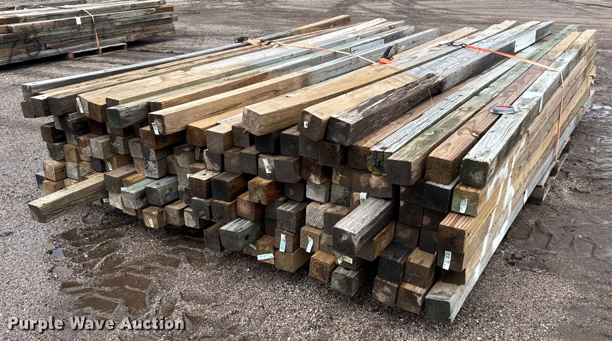 Purple Wave is selling a used Building Materials in Kansas. This item is a (150) posts with the following: Length: Approx. 6' to 14', 4" x 4", Straps