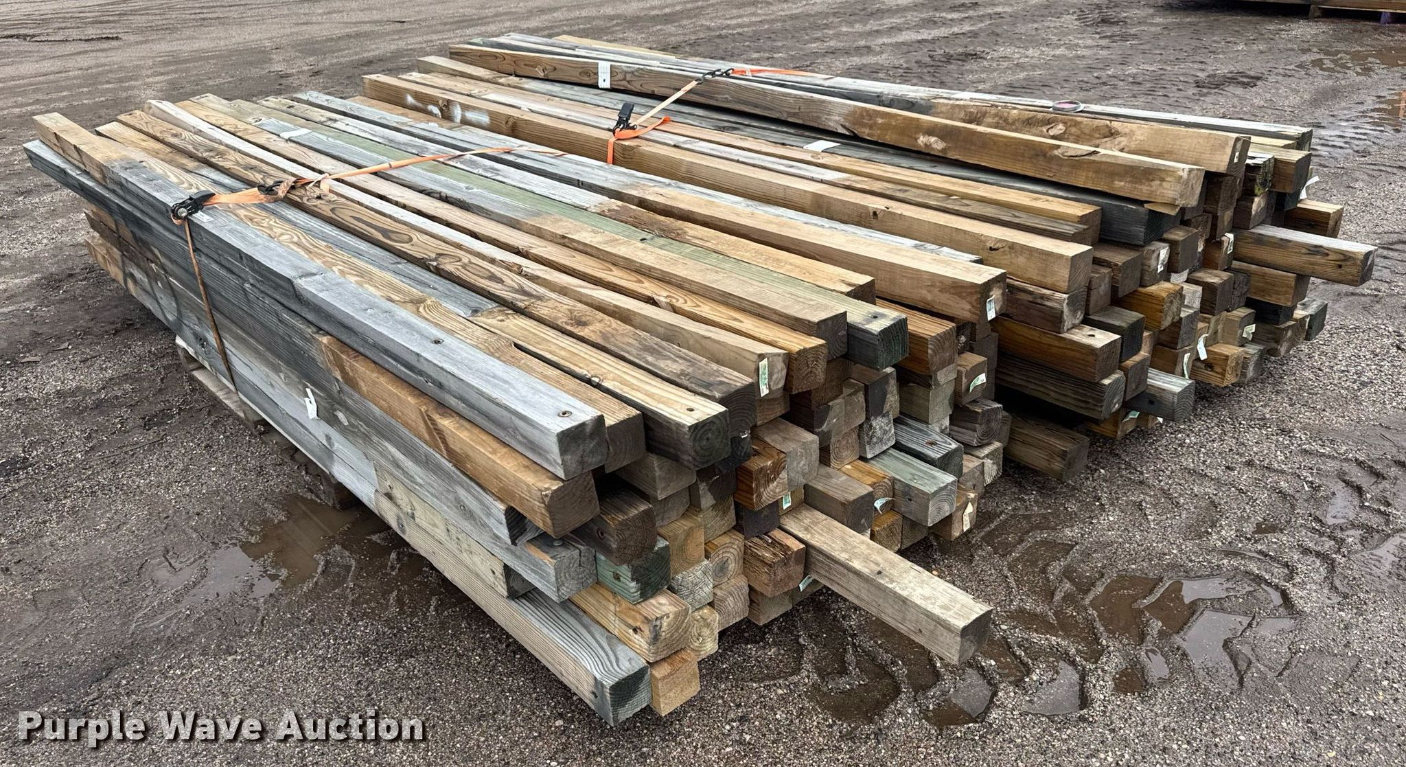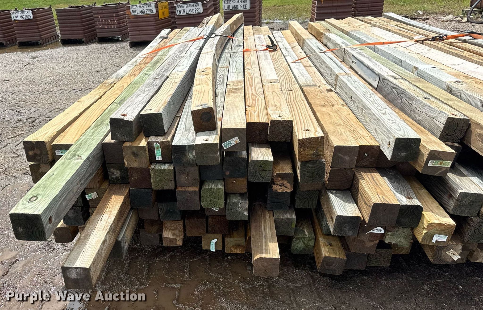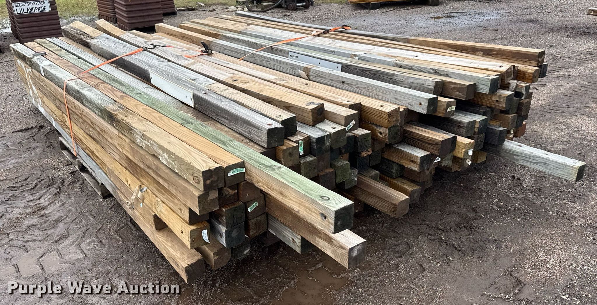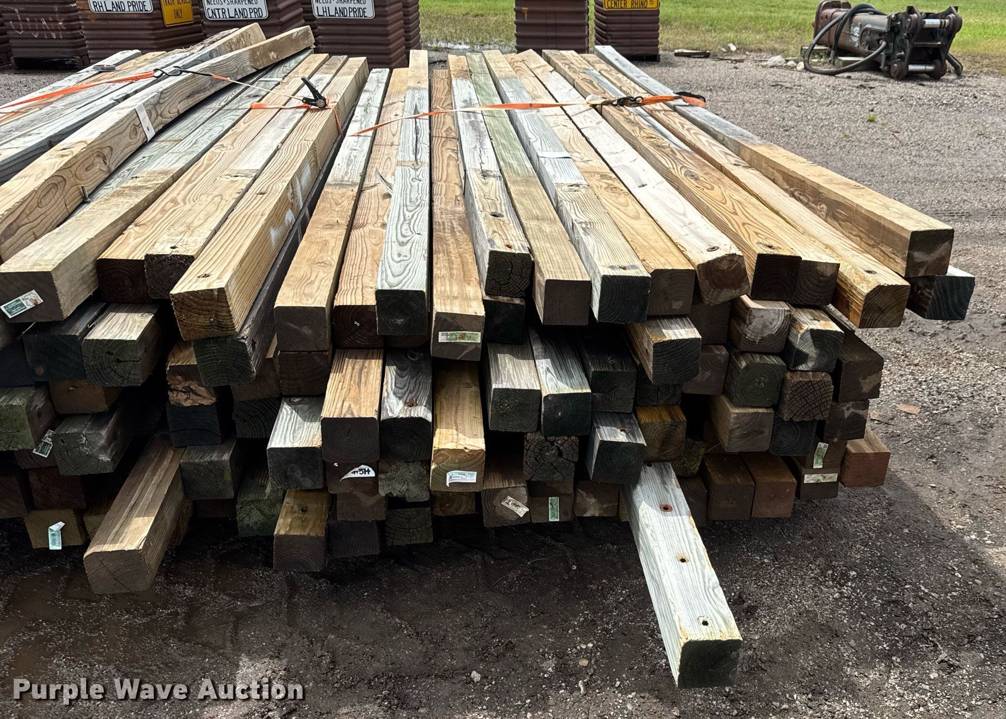 Purple Wave is selling a used Building Materials in Kansas. This item is a (150) posts with the following: Length: Approx. 6' to 14', 4" x 4", Straps