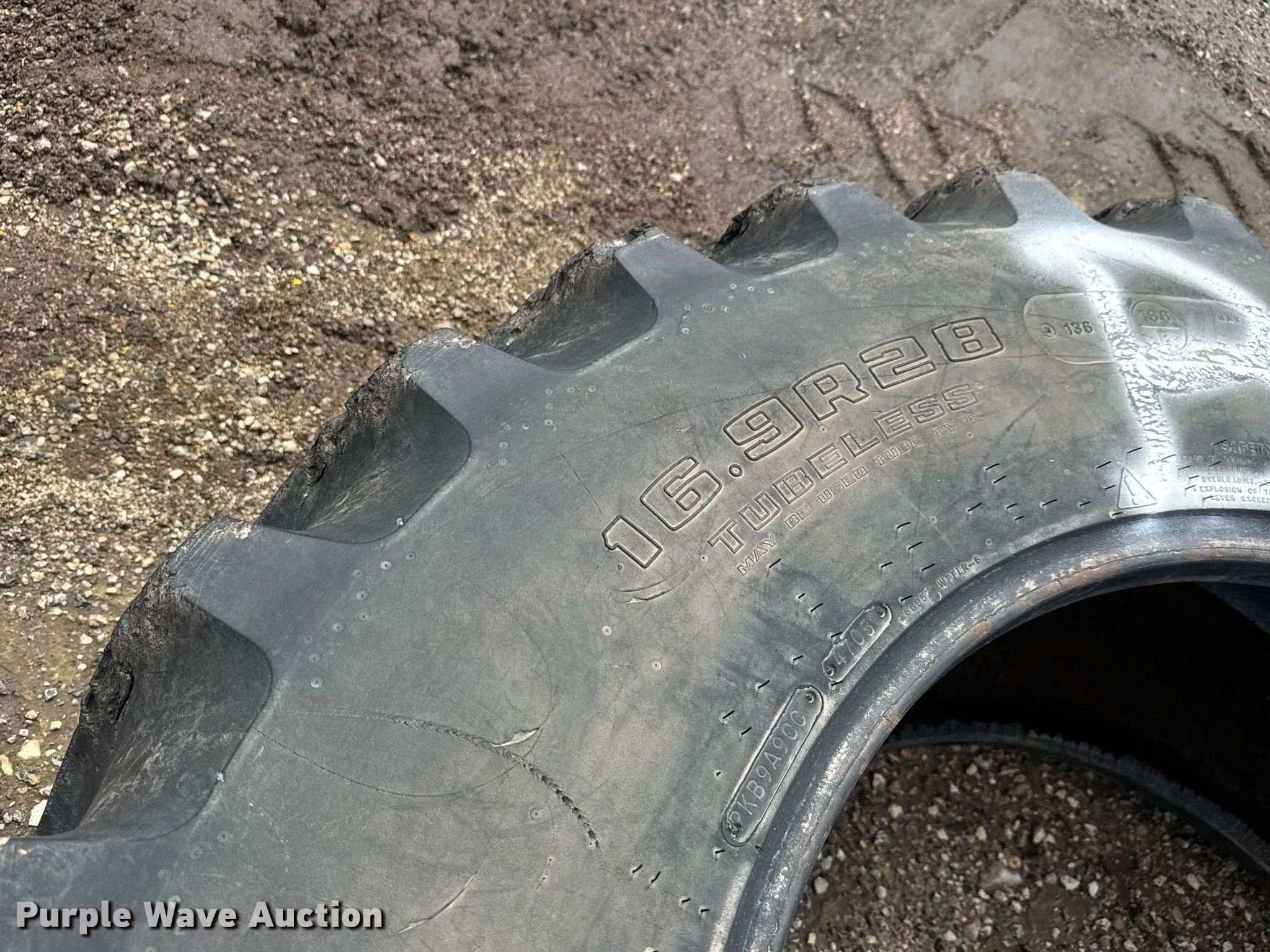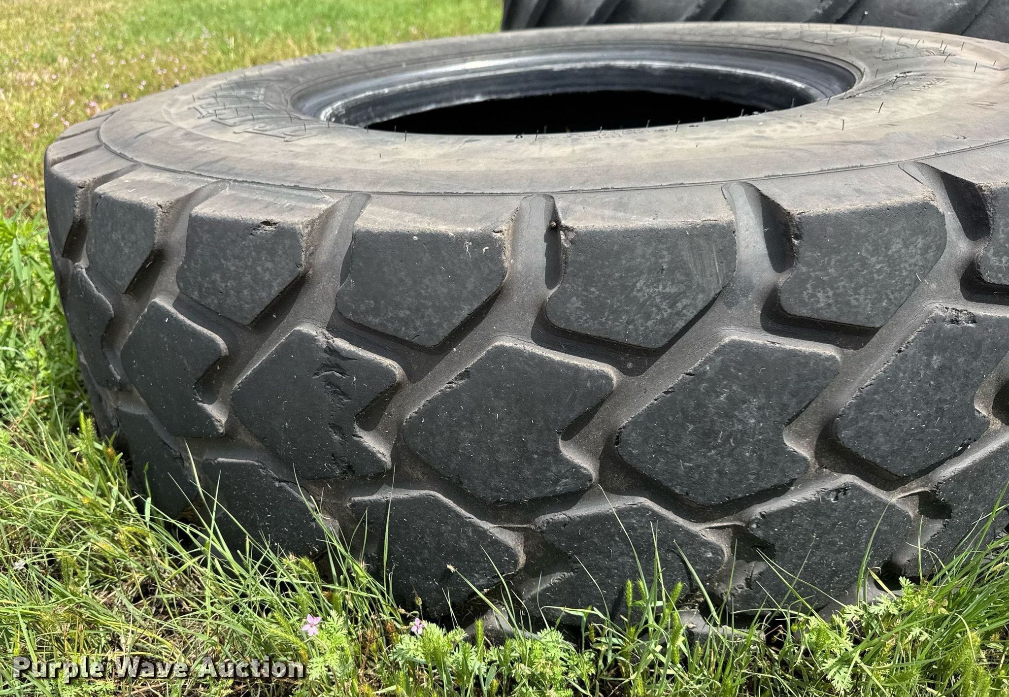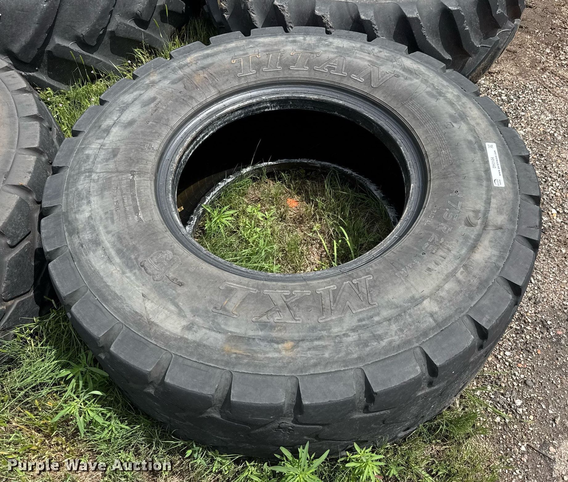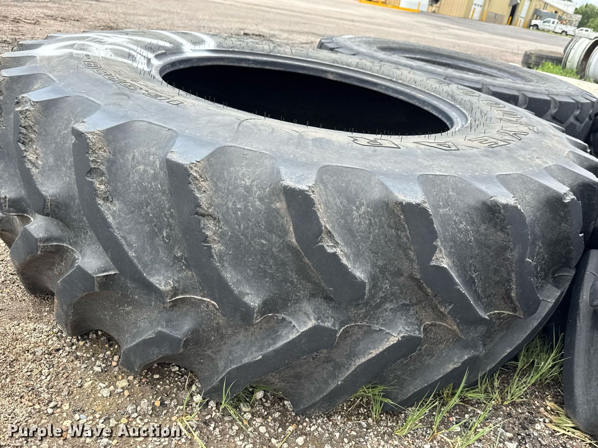 Purple Wave is selling a used Industrial Tires or Tracks in Kansas. This item is a (4) tires with the following: (2) Titan MXL 17.5R25, Continental 460/85R38, Goodyear 16.9R28