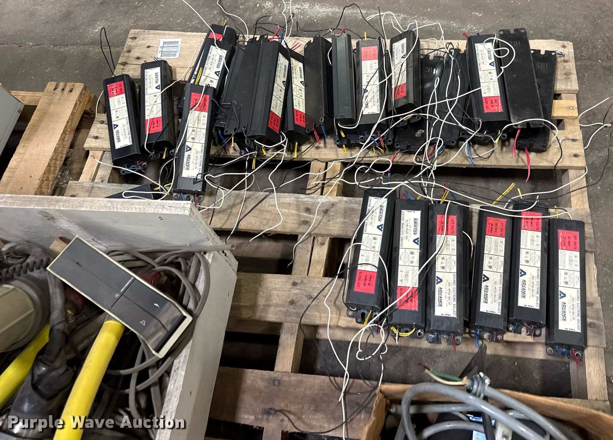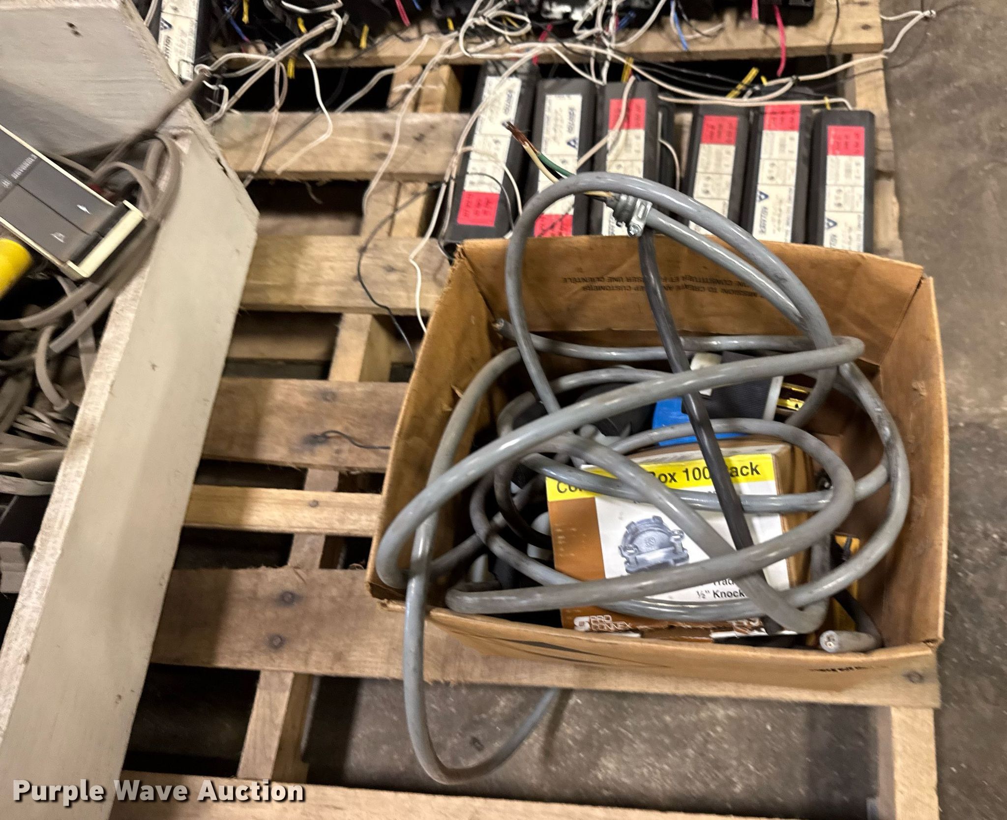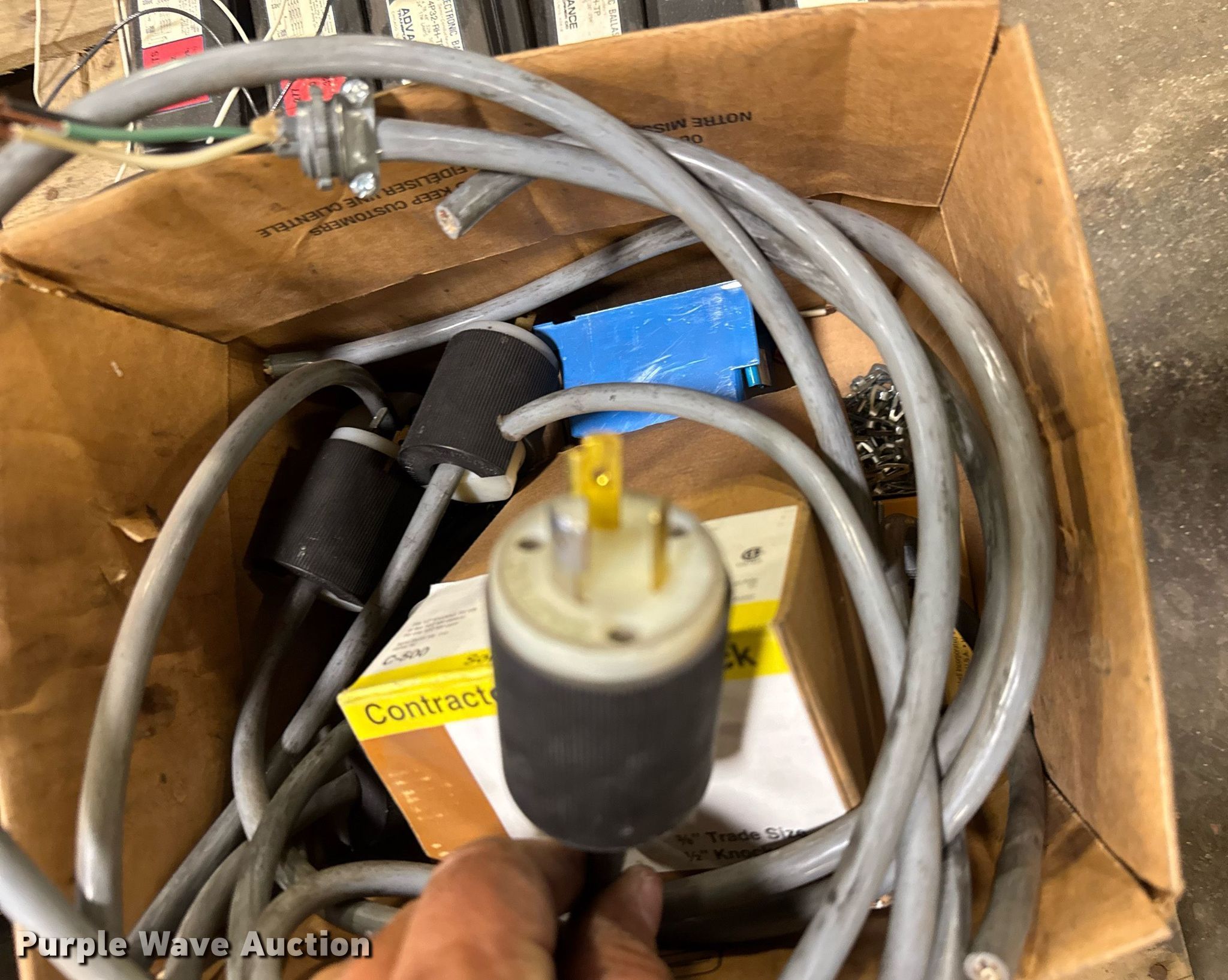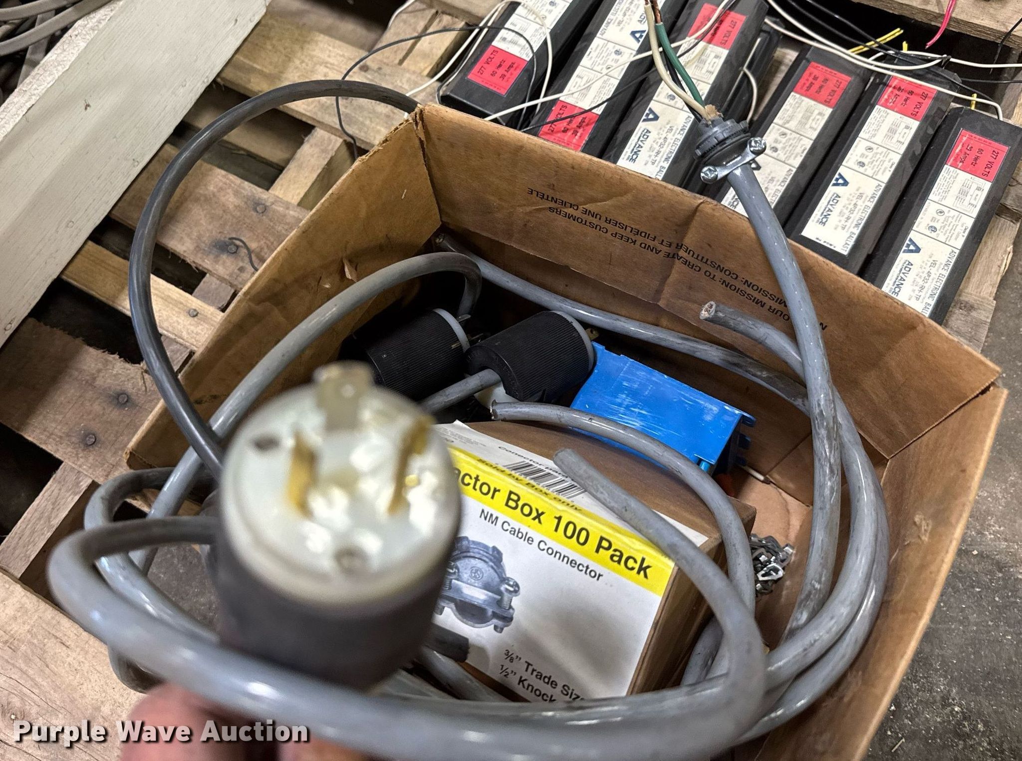 Purple Wave is selling a used Building Materials in Kansas. This item is a Building materials with the following: Approx. 35 Advance Transformer Co. ballasts, Box of electrical and plumbing fittings, 220V plugs and more