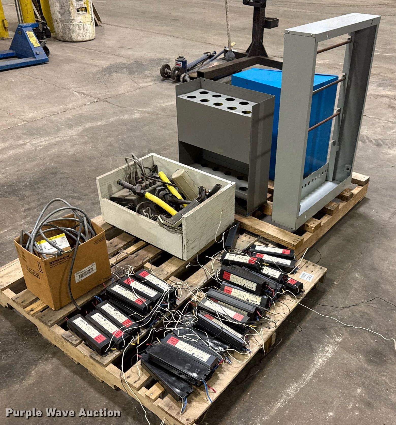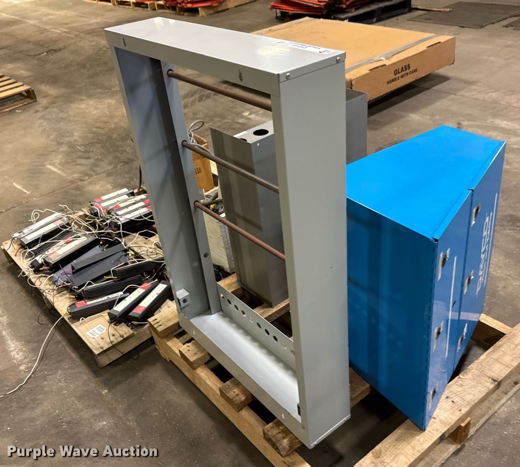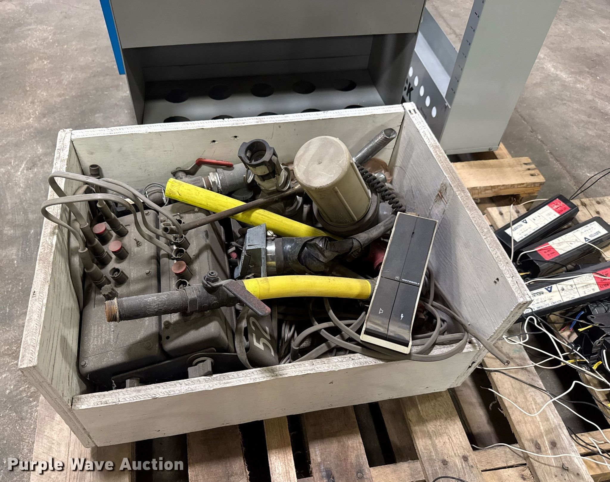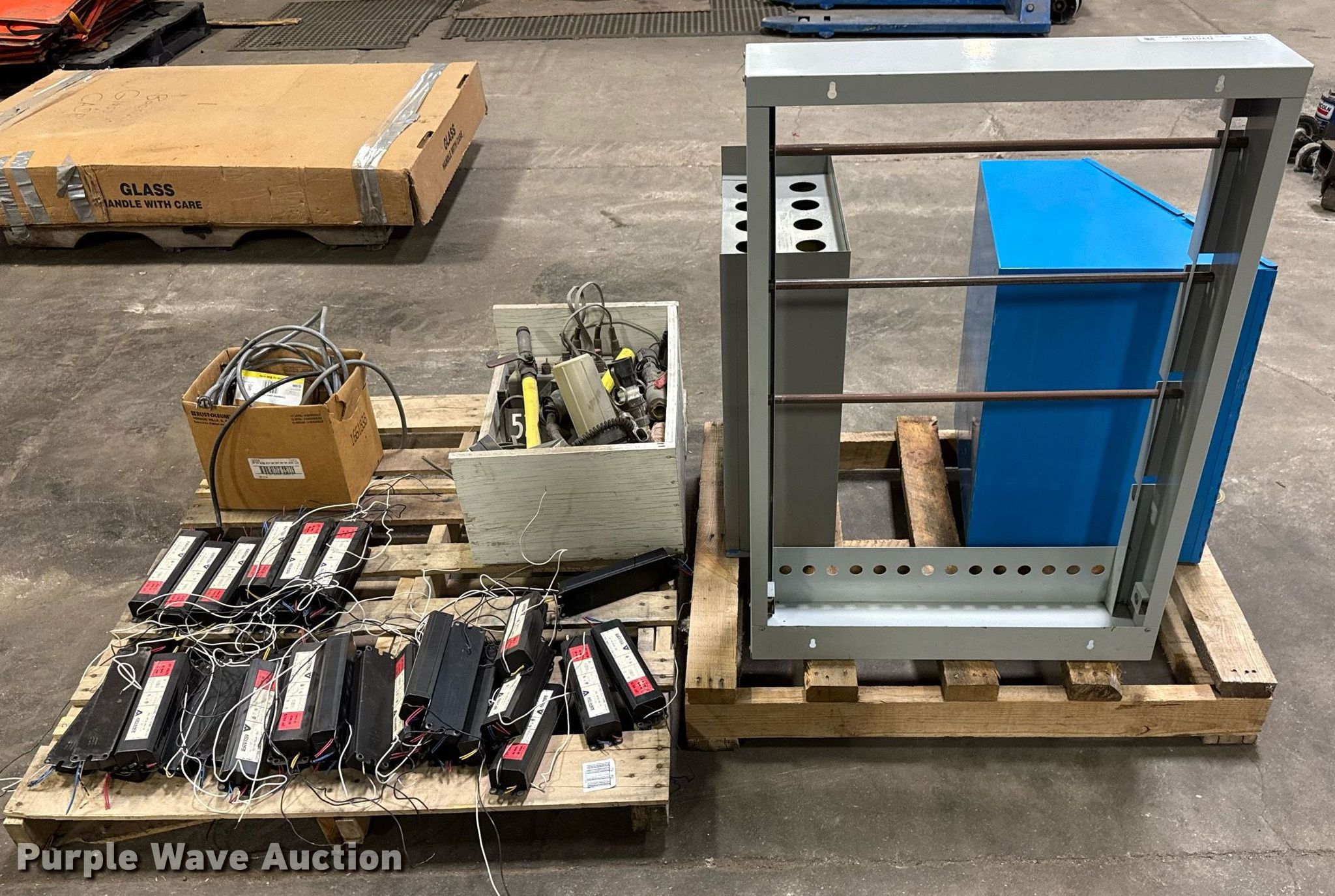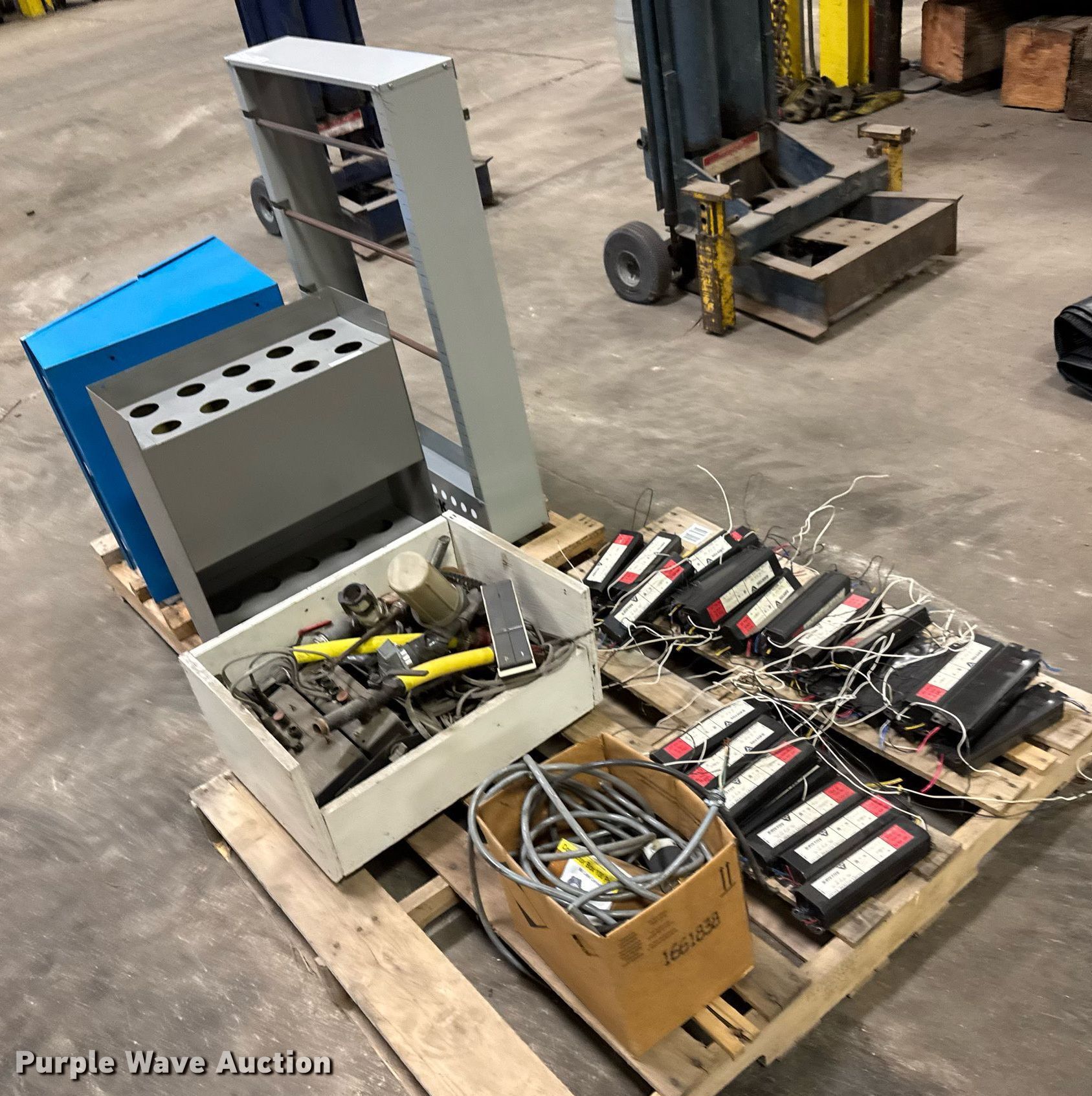 Purple Wave is selling a used Building Materials in Kansas. This item is a Building materials with the following: Approx. 35 Advance Transformer Co. ballasts, Box of electrical and plumbing fittings, 220V plugs and more