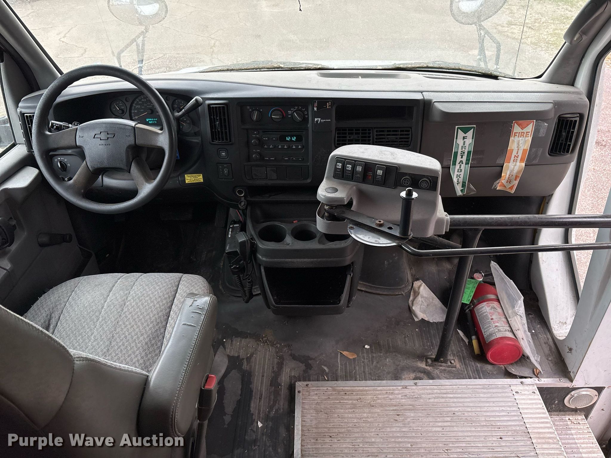 2005 Chevrolet Express G3500 shuttle bus. Miles: 169,473 on odometer, VIN: 1GBJG31UX51204927, Unit #: 12885. Engine Displacement: 6.0L, Cylinders: 8, Fuel type: Gas. Transmission Automatic. Chassis Axles: Single, Suspension: Spring, Brakes: Hydraulic. Interior AC, Heat, Heated mirrors, Cruise control, Auxiliary controls, Passengers: 19. Tires Size: LT225/75R16. Notes Dash warning indicator: Check engine, Dead battery, Catalytic converter missing. Oklahoma title. Title distribution may be delayed up to 14 days from verification of funds. LIFT Community Action Agency. Hugo, OK 74743