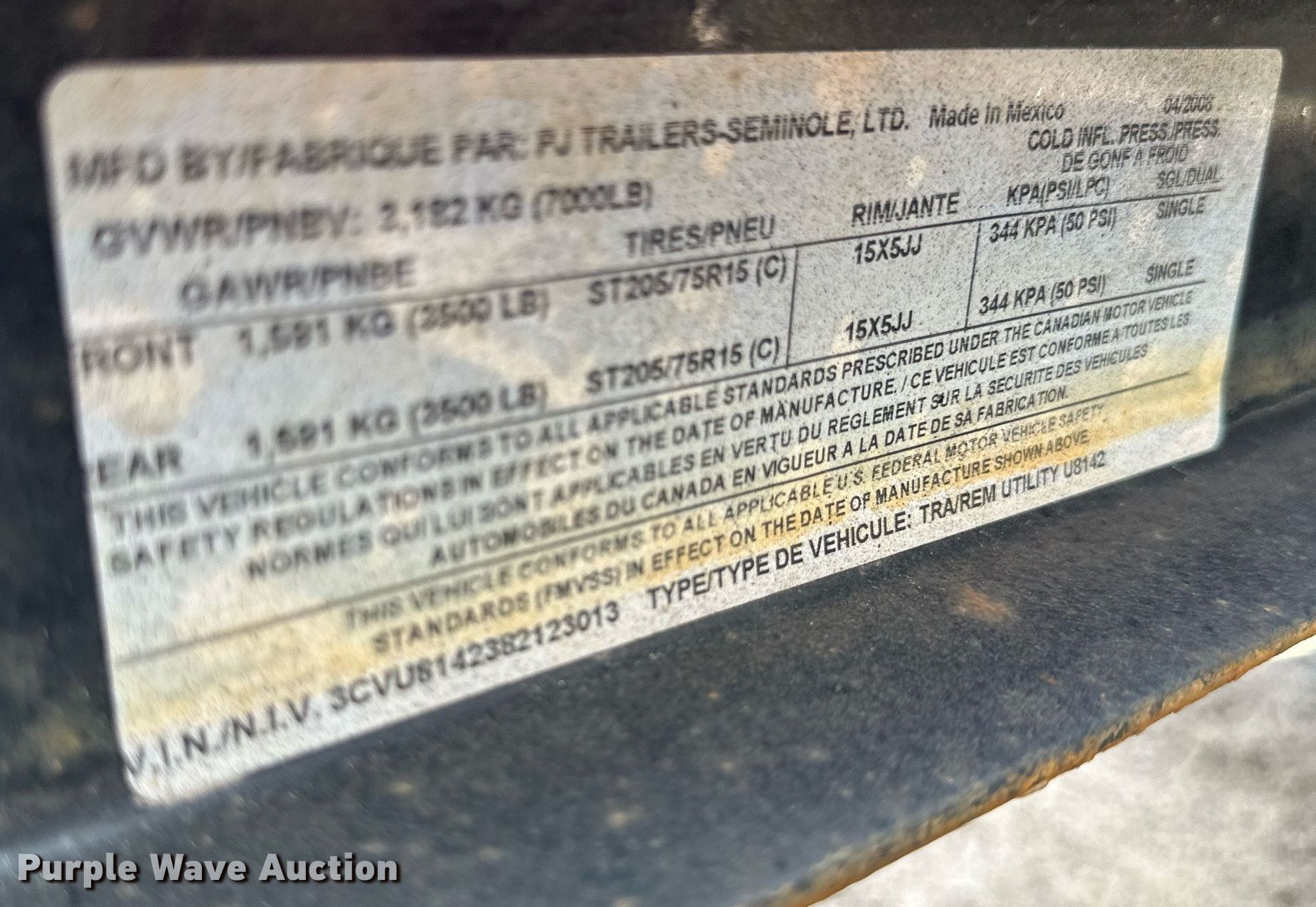 Take a look at this used 2008 PJ utility trailer with instaprime mp 150 water pump being sold on June 24th, 2025 in the SOLD! June 24 Government Auction made by PJ. Take a look at all of the item information below or take a look at similar auctions for Trailers.