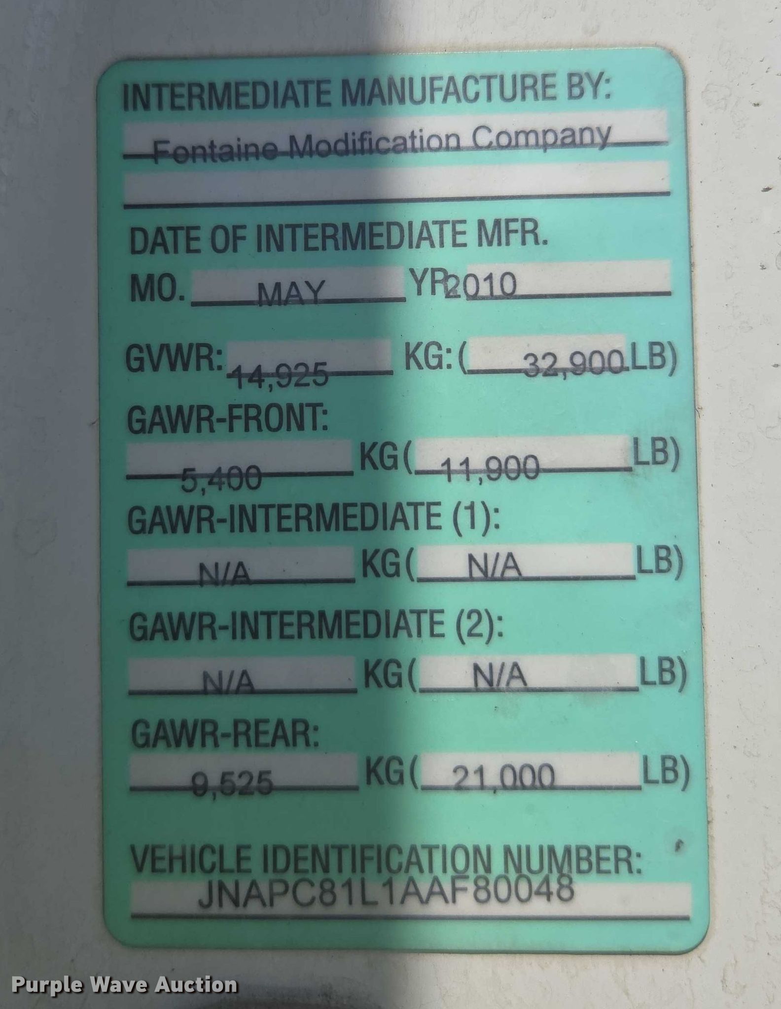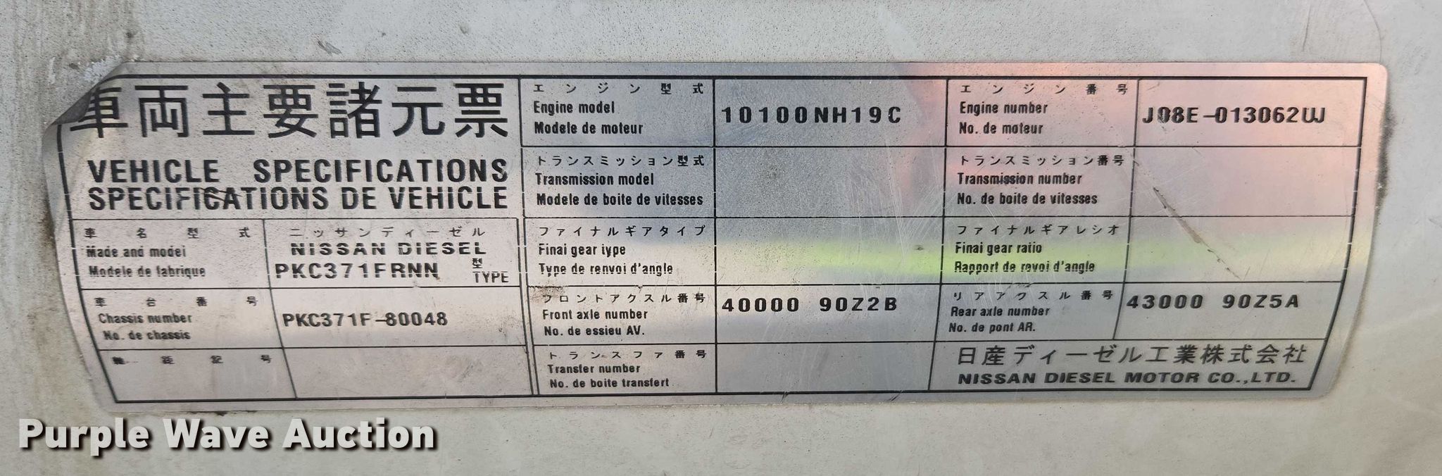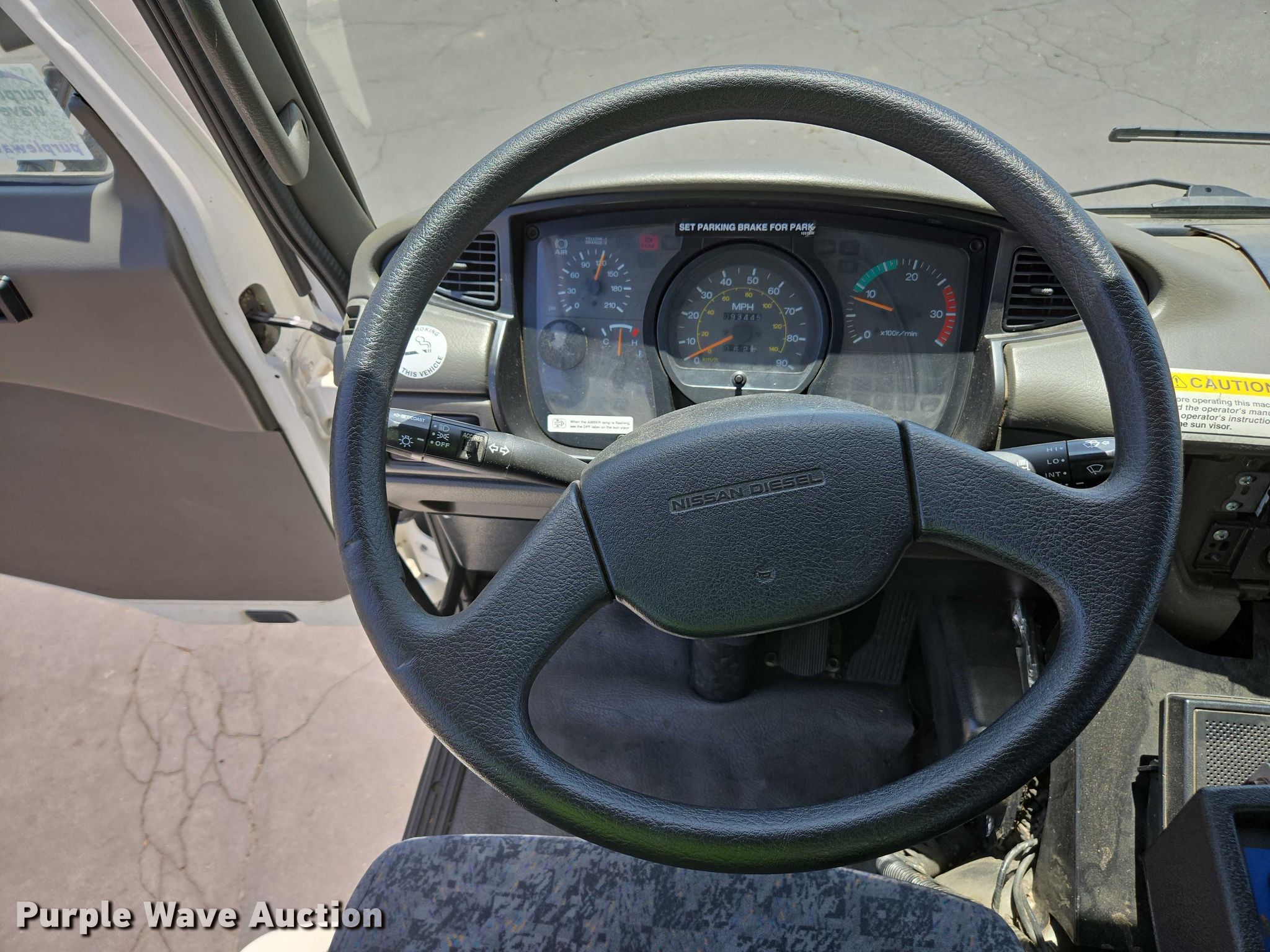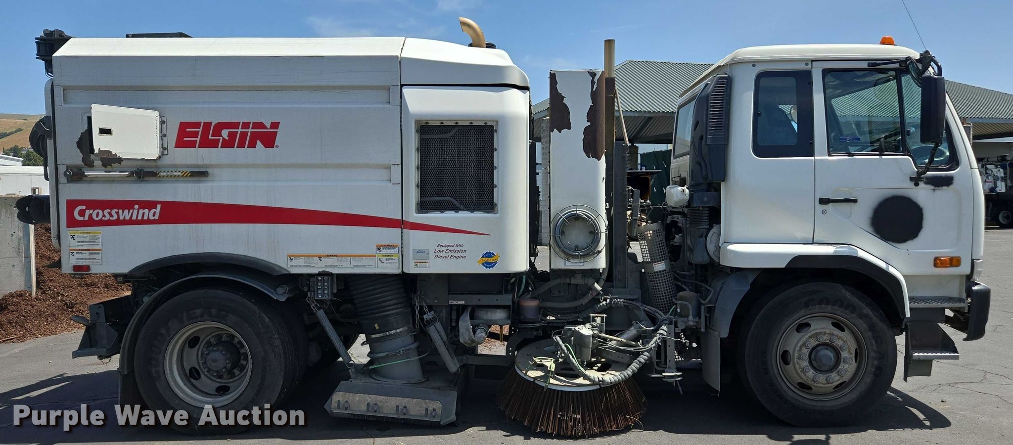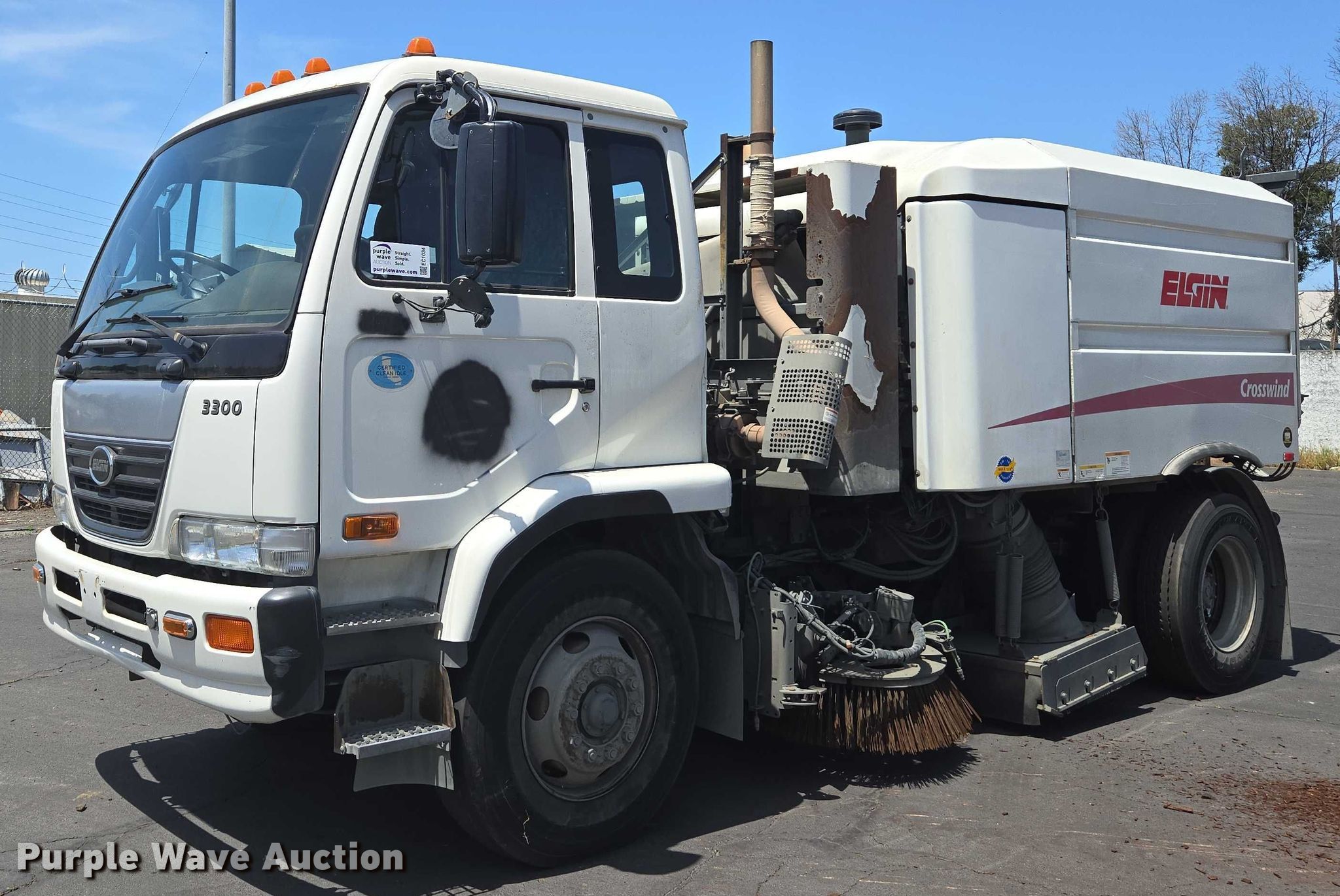 2010 Elgin 3300 street sweeper truck. Miles: 93,445 on odometer, Miles: 93,515 on second odometer, Engine hours: 8794, VIN: JNAPC81L1AAF80048. Engine Nissan J08E-UJ, Displacement: 7.6L, Cylinders: 6, Fuel type: Diesel. Transmission Automatic. Chassis Suspension: Spring, Brakes: Hydraulic, GVWR: 32,900 lbs. Operators station AC, Heat, Dual operating station, Video monitoring system, Backup camera. Features Broom Width: 32", Water spray system, Sweeper bed Sweeper bed type: Vacuum Elgin Crosswind J series, Serial: J3290D, Left gutter broom Hours: 8,794, Diameter: 32", Right gutter broom Hours: 8,794, Diameter: 32", Engine John Deere. Tires Size: 11R22.5. California title. Title distribution may be delayed up to 30 days from verification of funds. City of Union City. Union City, CA 94587