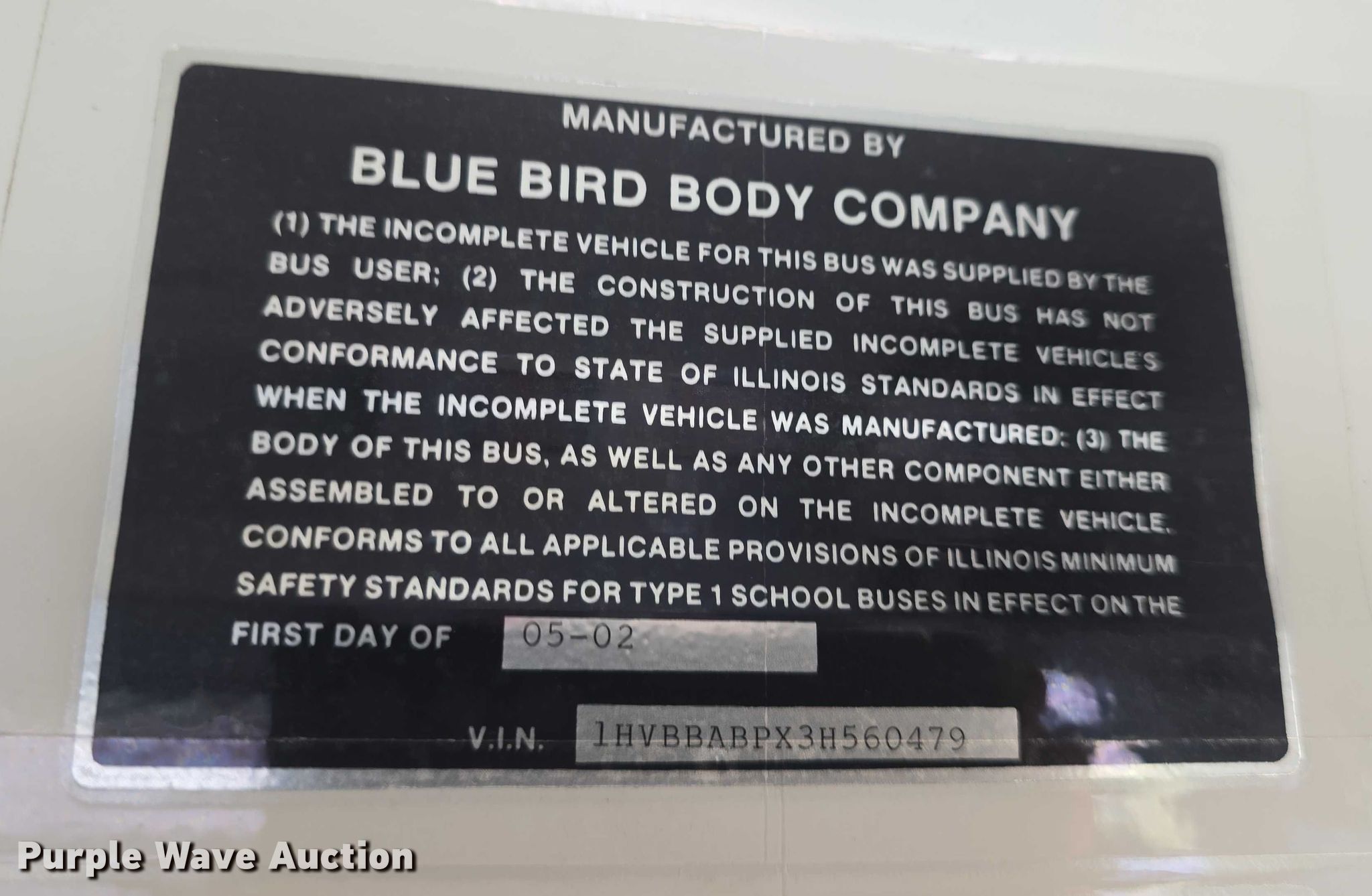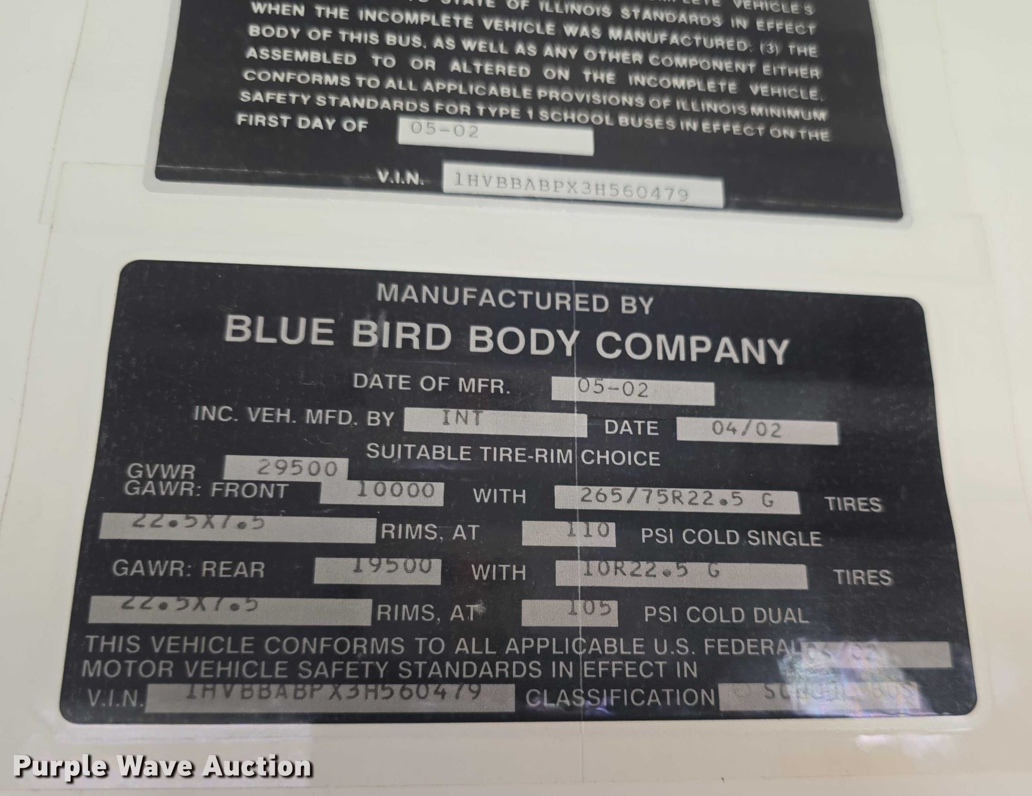 Purple Wave is selling a used Bus in Kansas. This item is a 2003 International 3800 school bus with the following: Miles: 160,142 on odometer, VIN: 1HVBBABPX3H560479, Unit #: 5
