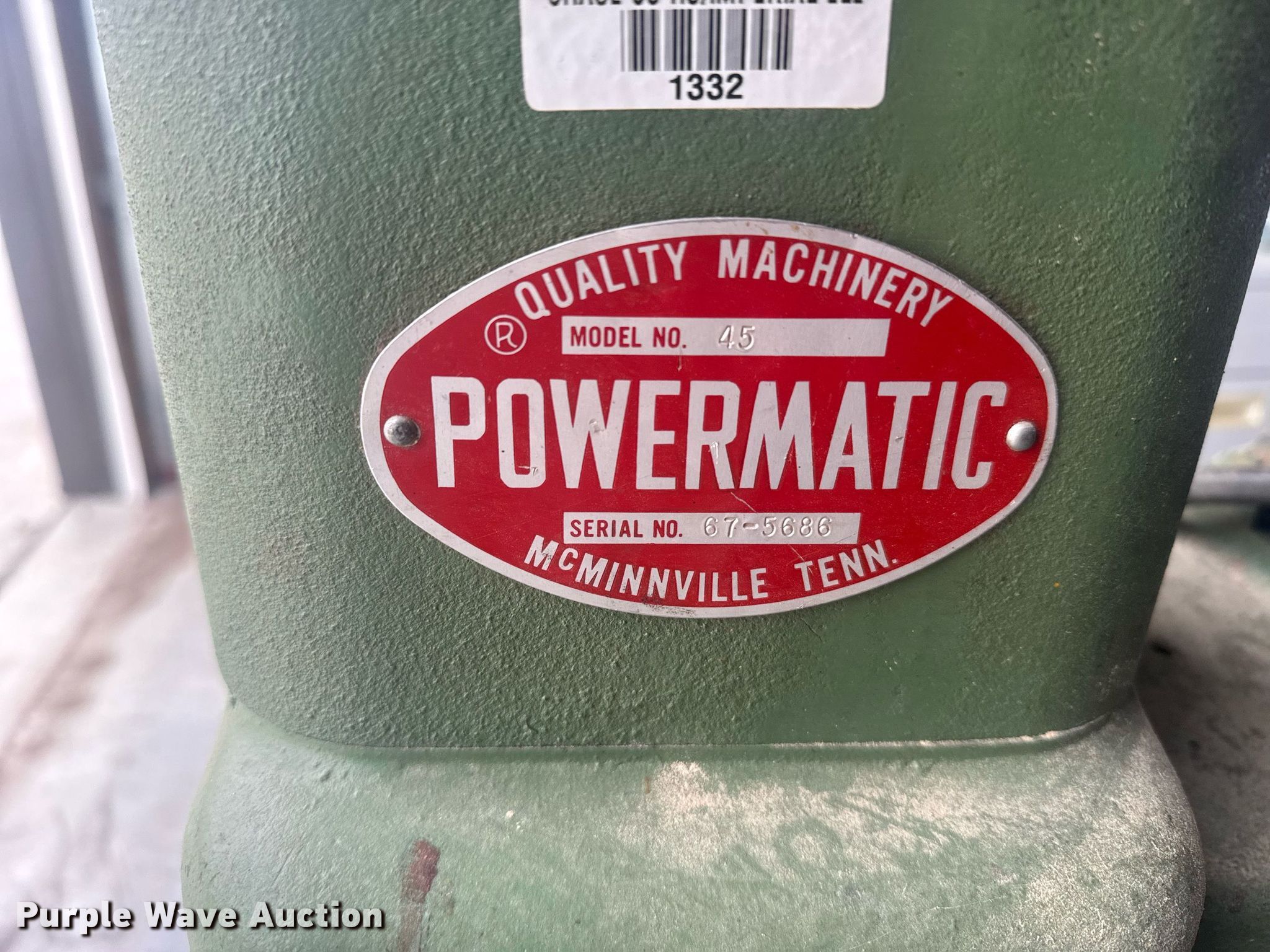 Purple Wave is selling a used Lathes, Manual in Nebraska. This item is a Powermatic 45 12" wood lathe with the following: Serial: 67-5686