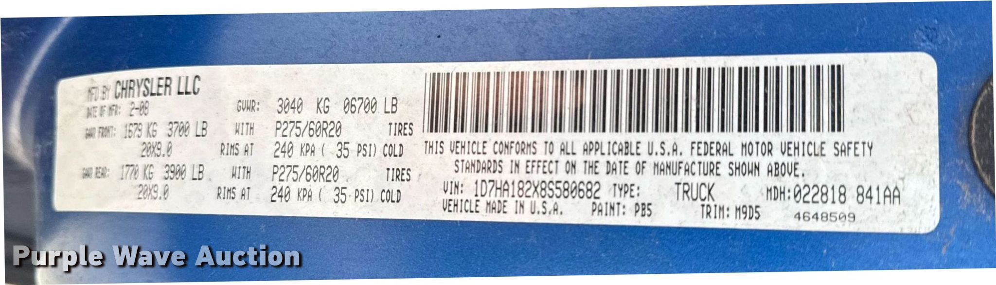 Take a look at this used 2008 Dodge Ram 1500 Quad Cab pickup truck being sold on June 24th, 2025 in the SOLD! June 24 Government Auction made by Dodge. Take a look at all of the item information below or take a look at similar auctions for Pickups and Vans.