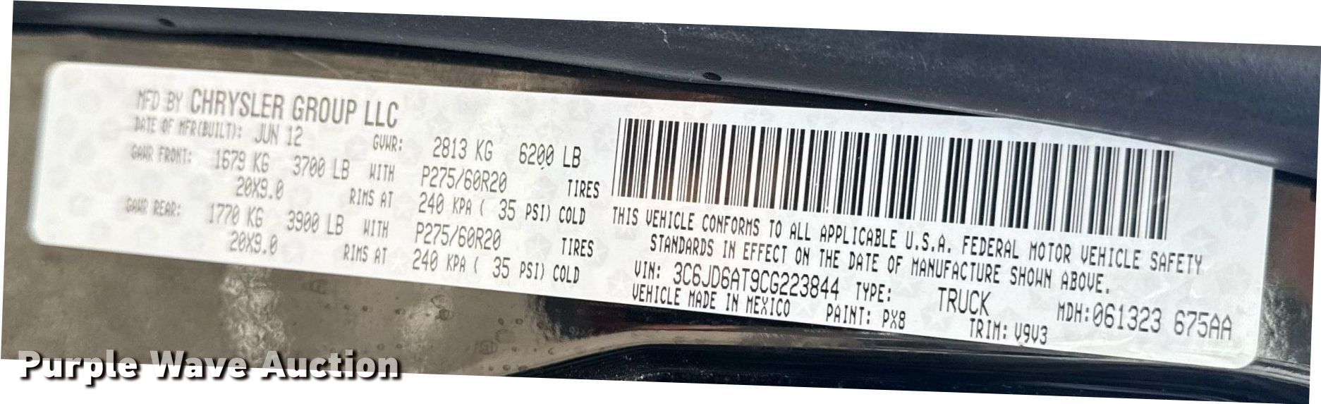 - VIN: 3C6JD6AT9CG223844