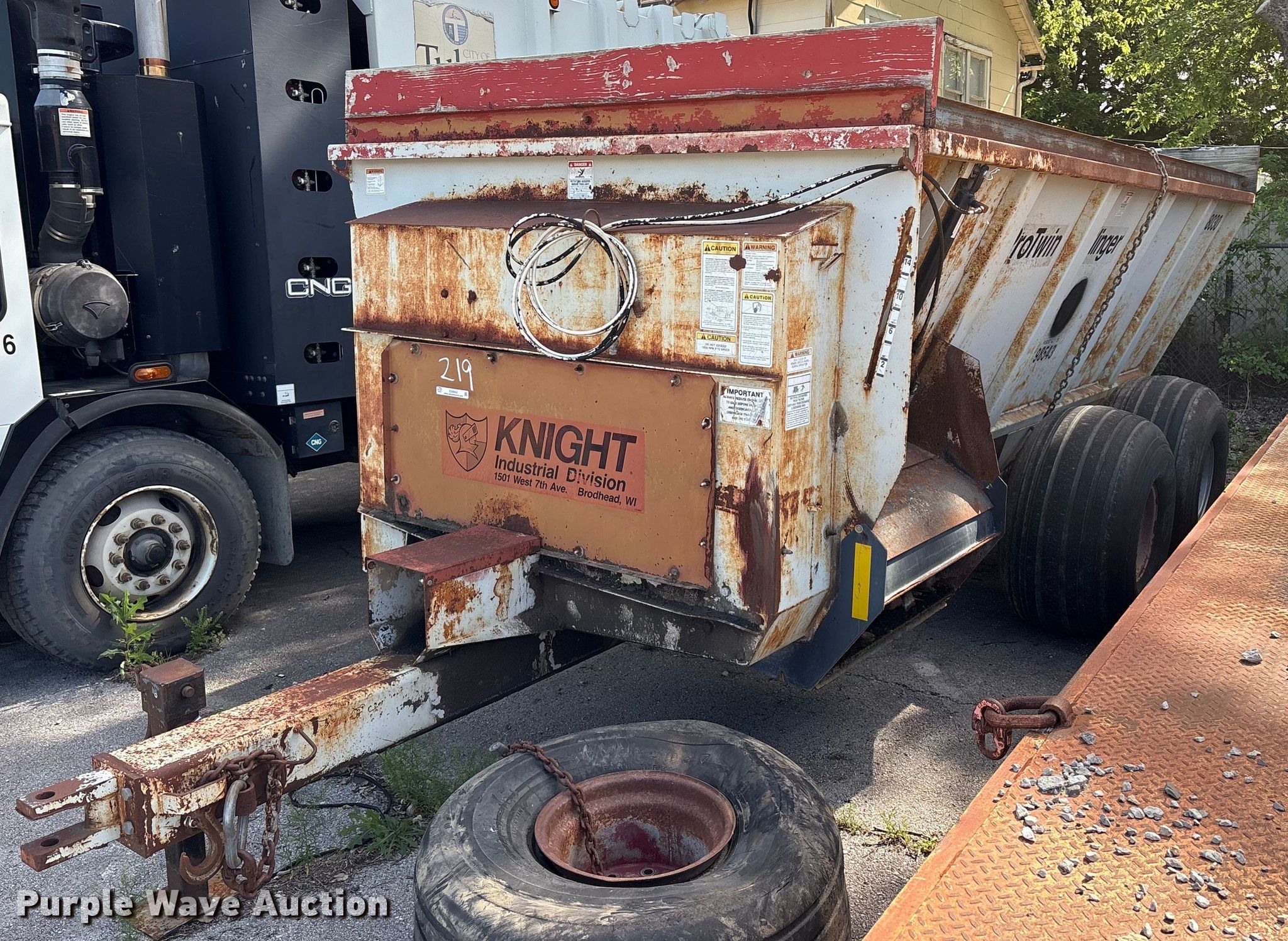 1998 Knight 8030 manure spreader. Serial: 915, Unit #: 219. Features PTO: 540. Chassis Hitch: Pin, Suspension: Walking beam, Axles: Tandem. Tires Size: 21.5L-16.1. Notes Tire and wheel removed but included. City of Tulsa. 108 N Trenton Ave. Tulsa, OK 74120