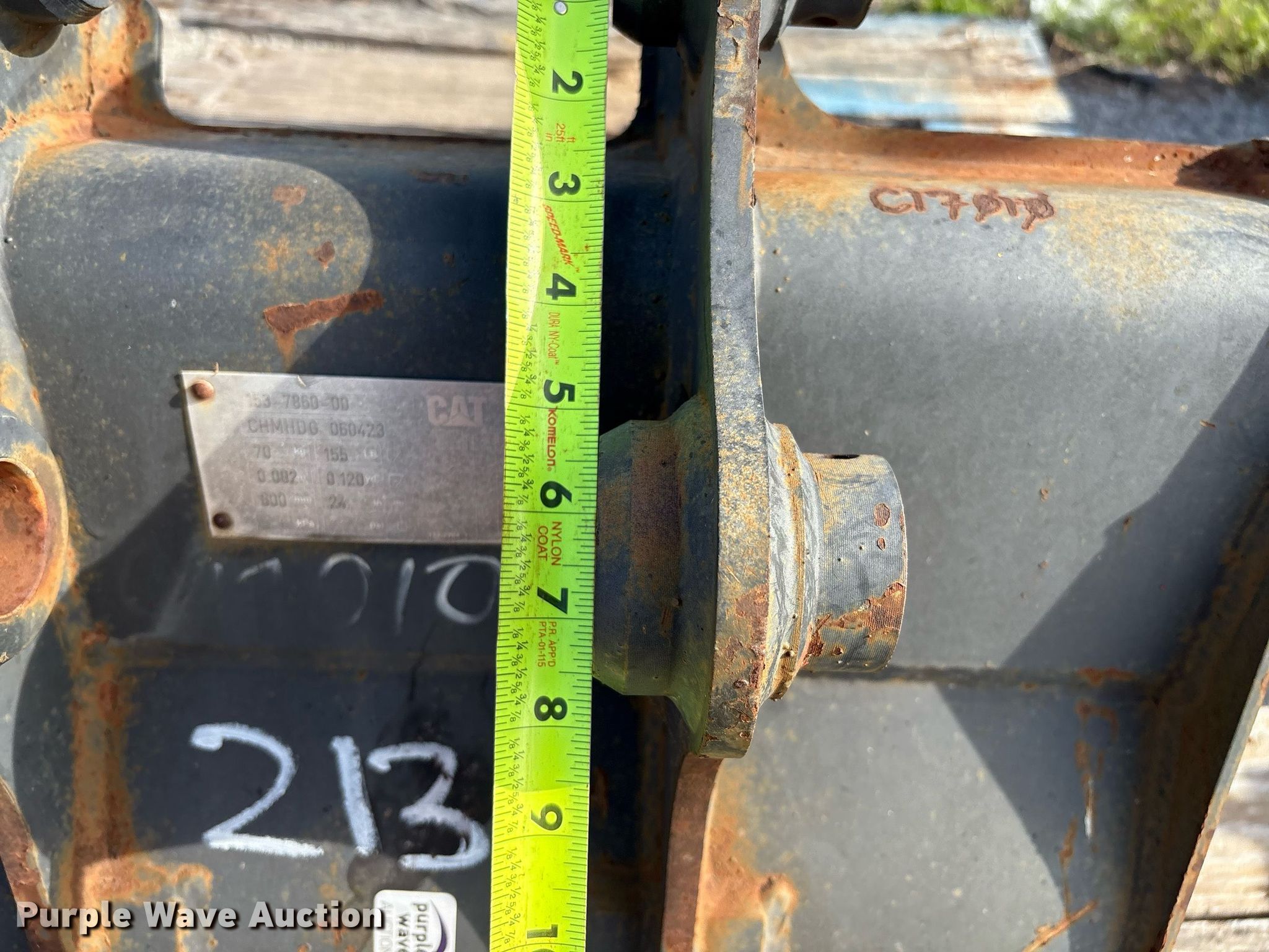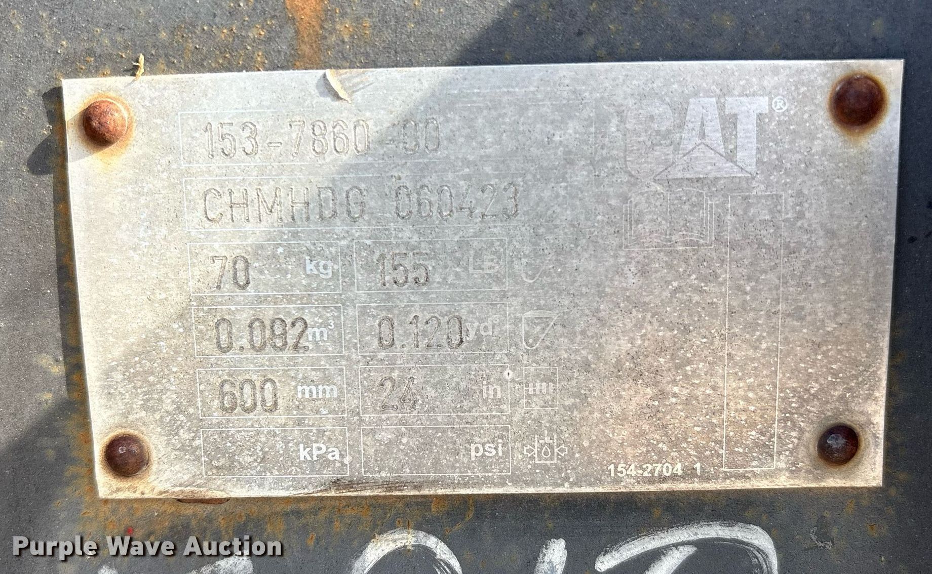 Purple Wave is selling a used Excavator Attach. in Oklahoma. This item is a Caterpillar CHMHDG 060423 excavator bucket with the following: Serial: 153-7860-00, Width: 22", Teeth: 4, Unit #: 213