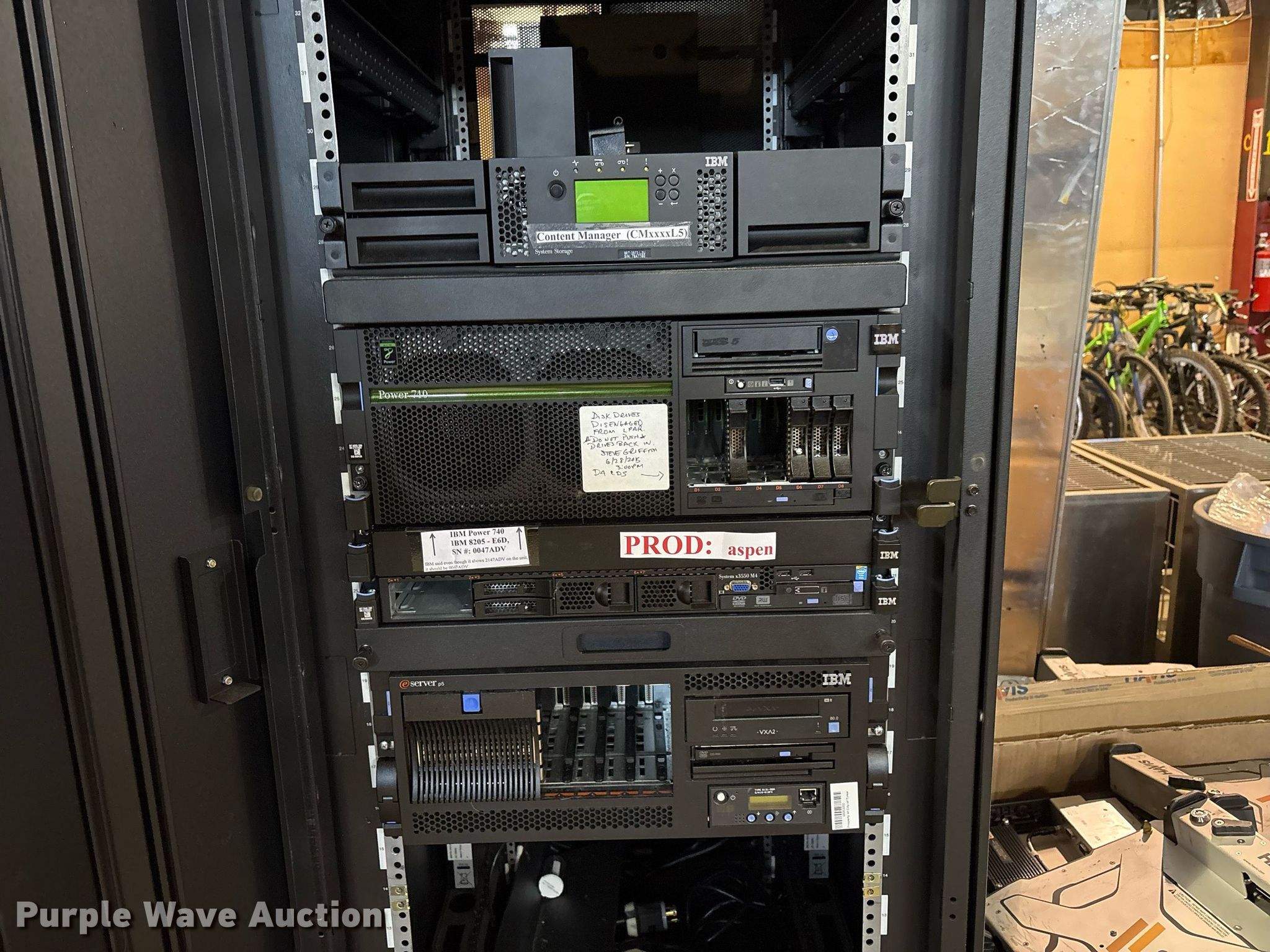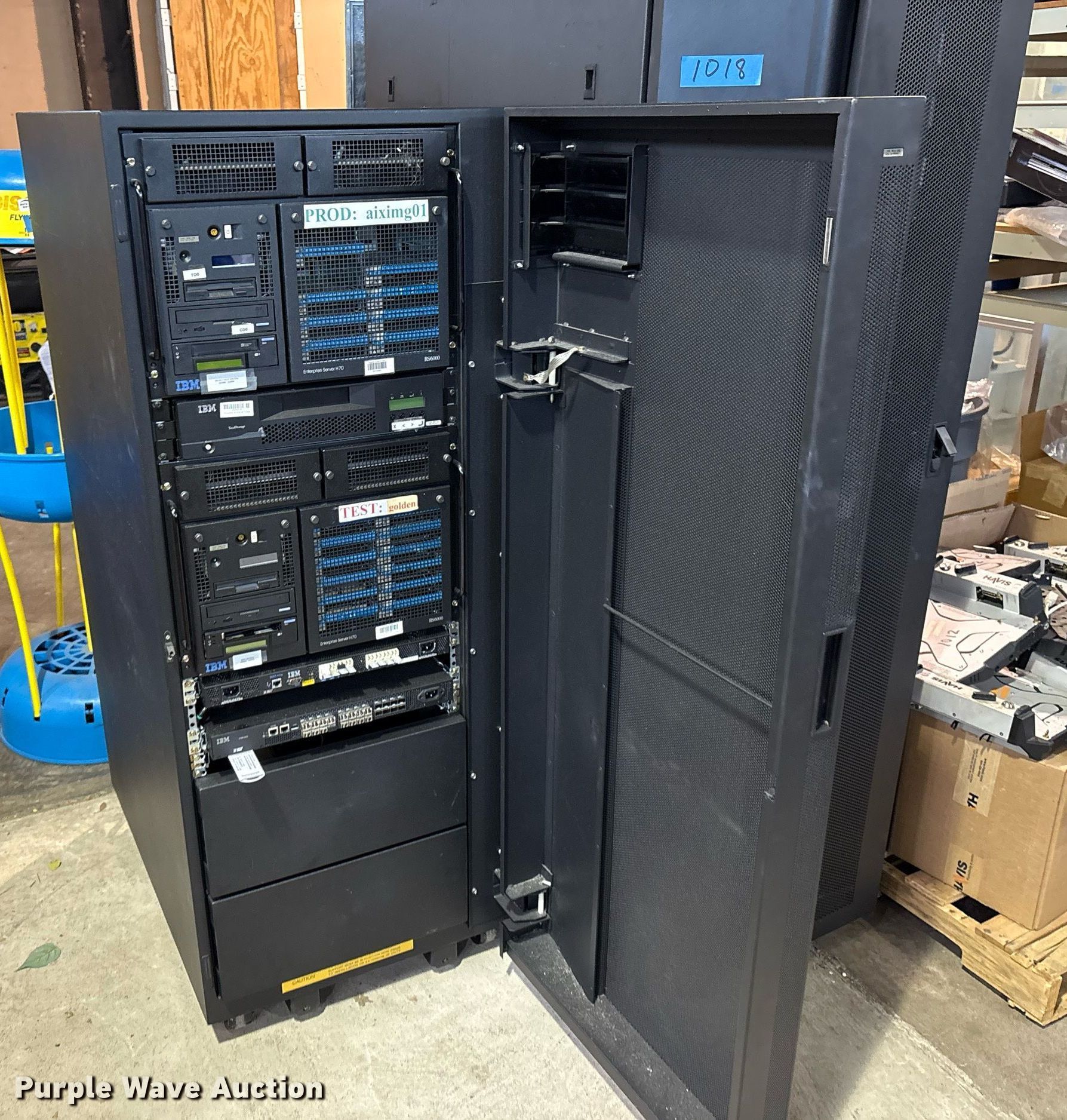 Purple Wave is selling a used Computers in Oklahoma. This item is a IBM electronics with the following: IBM RS/6000 server rack, Dimensions: 40 x 26 x 62, IBM System storage, Dimensions: 42 x 26 x 71, IBM Power 740 Express server, IBM System x3550 M4, (2) H70 RS/6000 enterprise servers, IBM SAN24B-4 high-performance, fibre channel switch, 2005 H16 San fibre channel switch, Unit #: 1018