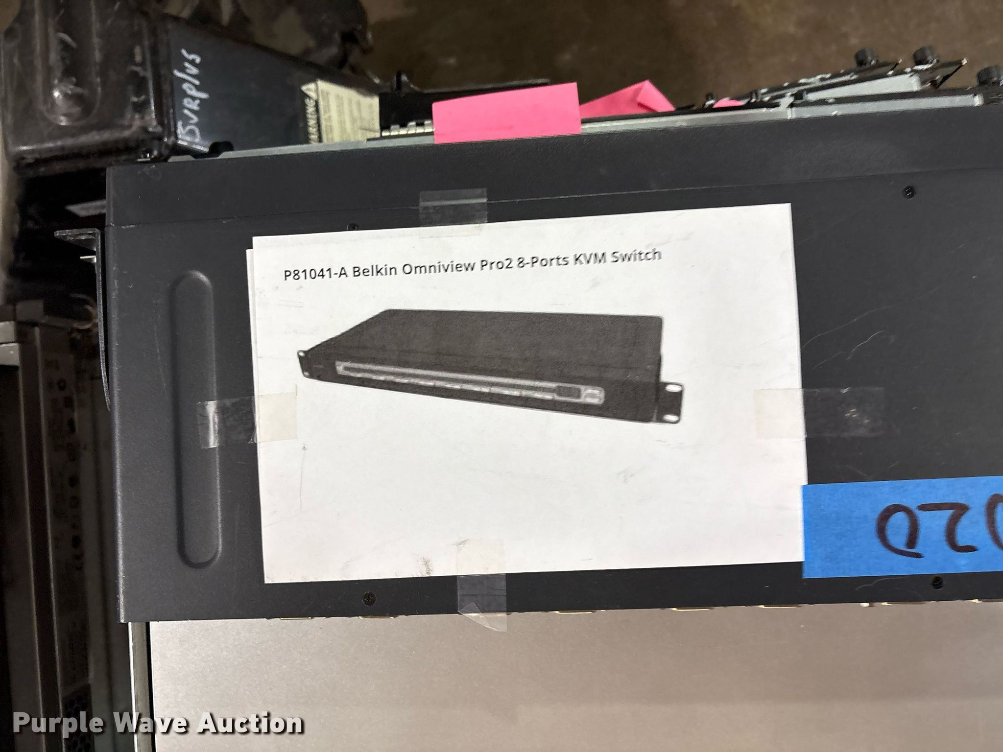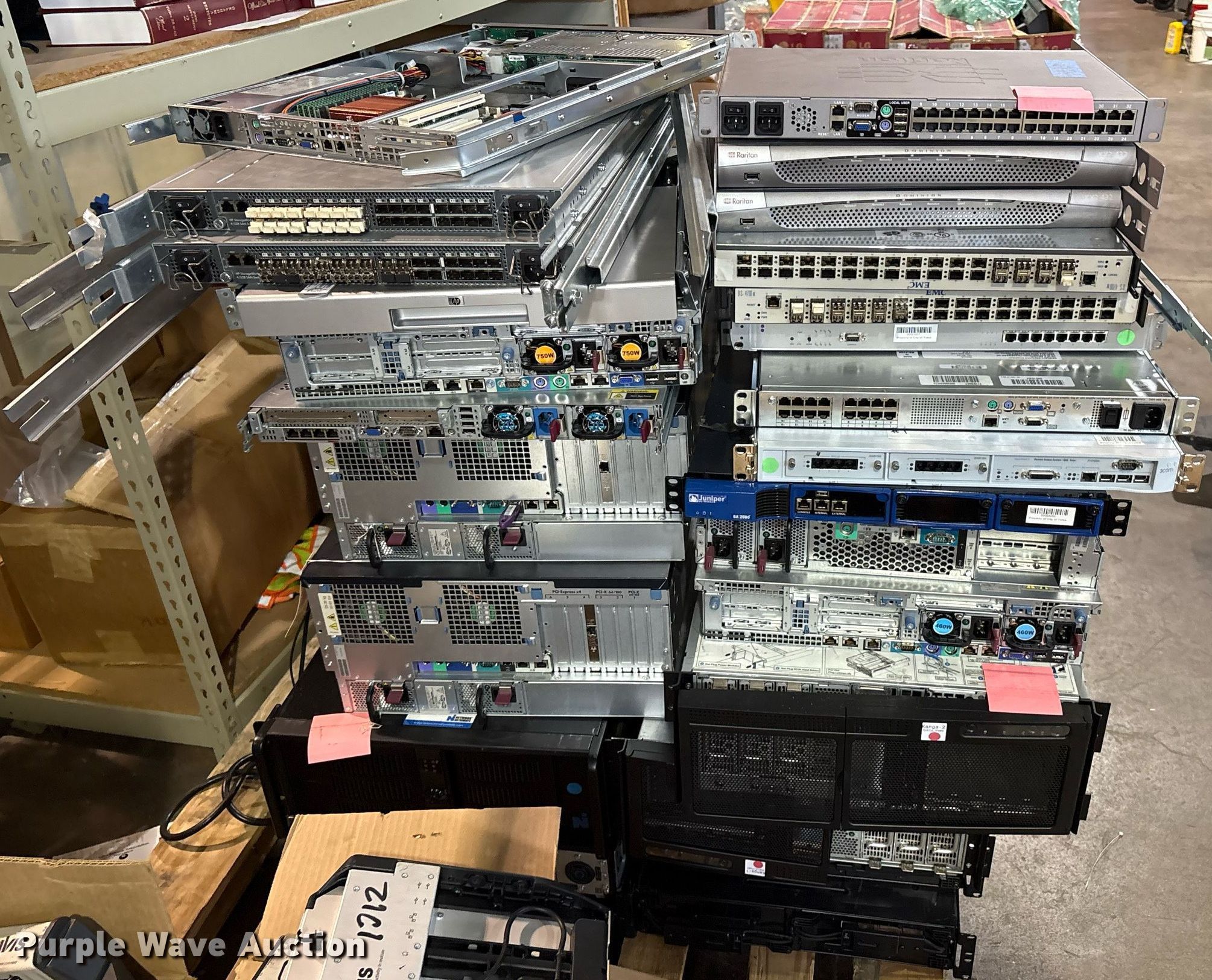 Purple Wave is selling a used Electronics in Oklahoma. This item is a Network equipment with the following: Approximately 7 Raritan Dominion DKXS-432 KVM switches, Raritan CC-SG-V1 CommandCenter Secure Gateway, HP ProLiant DL380 G4 server, HP ProLiant DL380 G5 server, HP ProLiant DL380 G7 server, HP ProLiant DL350 G5 server, Dell PowerEdge 1650 rack-mount server, Dell PowerEdge 2850 rack-mount server, Dell PowerEdge 1750 rack-mount server, HP StorageWorks 4/32B SAN switch, HP ProCurve 2626 switch, HP TFT7600 KVM console kit, EMC DS-4700M SAN switch, APC UPS surge protector, Tripp-Lite UPS surge protector, Belkin P81041-A Omniview Pro2 8-Port KVM switch, APC SRT96BP battery pack, Radware LinkProof WAN optimizer, Juniper SA2500 SSL VPN appliance, 3Com SuperStack 3 remote access system, Unit #: 1020