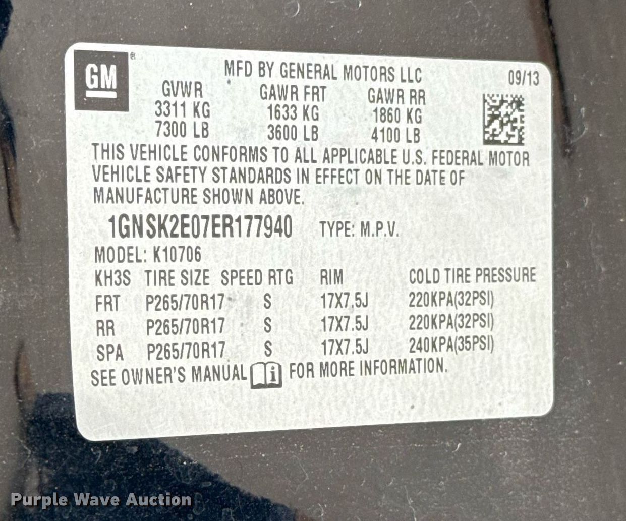 - VIN: 1GNSK2E07ER177940