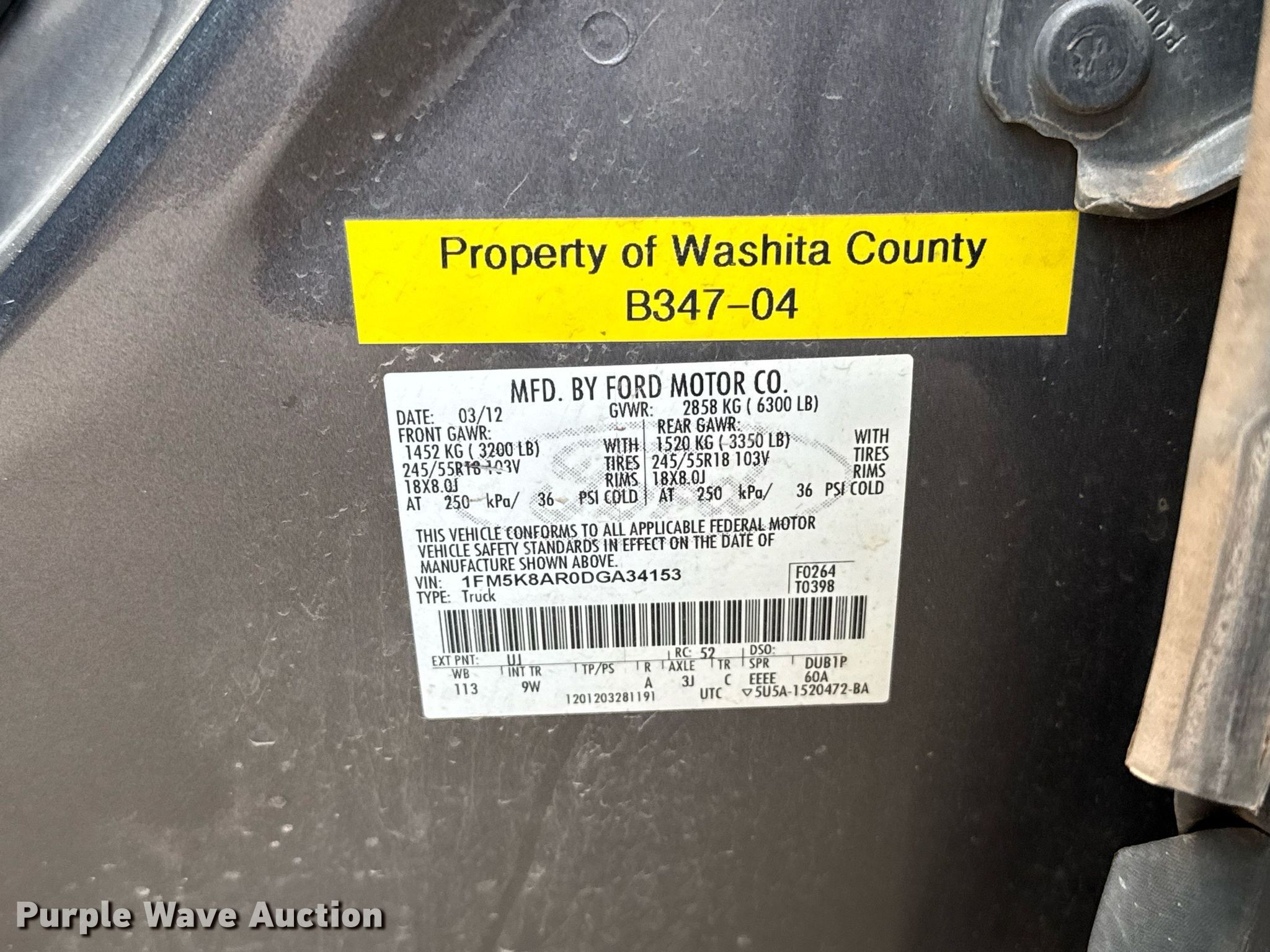 - VIN: 1FM5K8AR0DGA34153