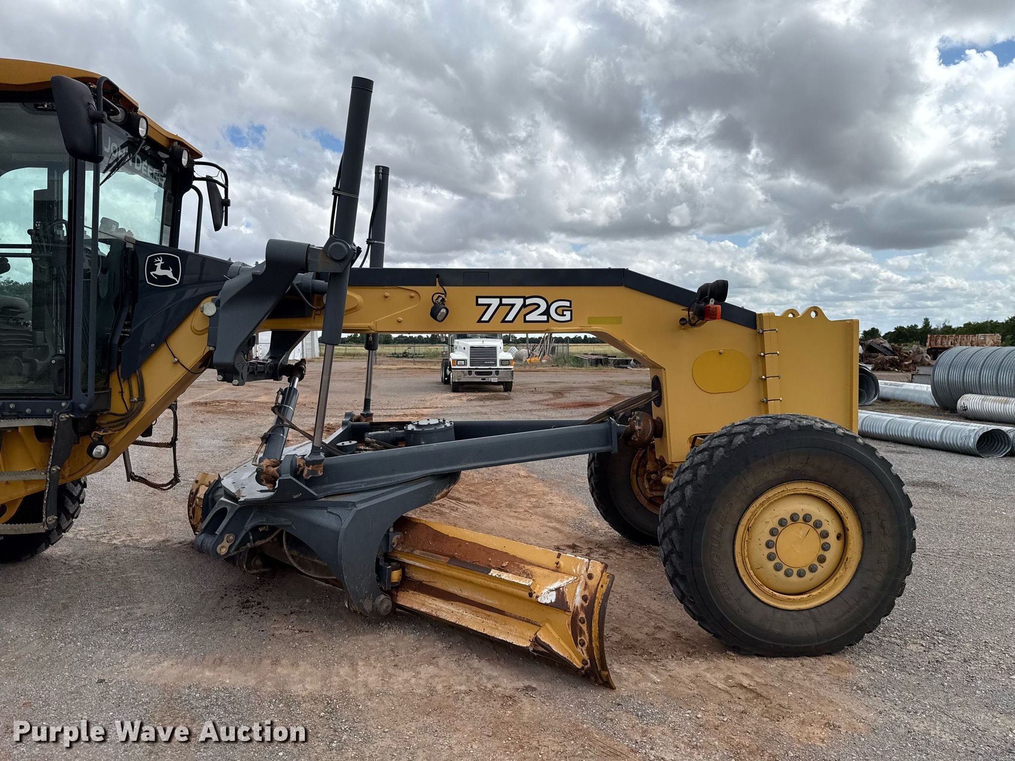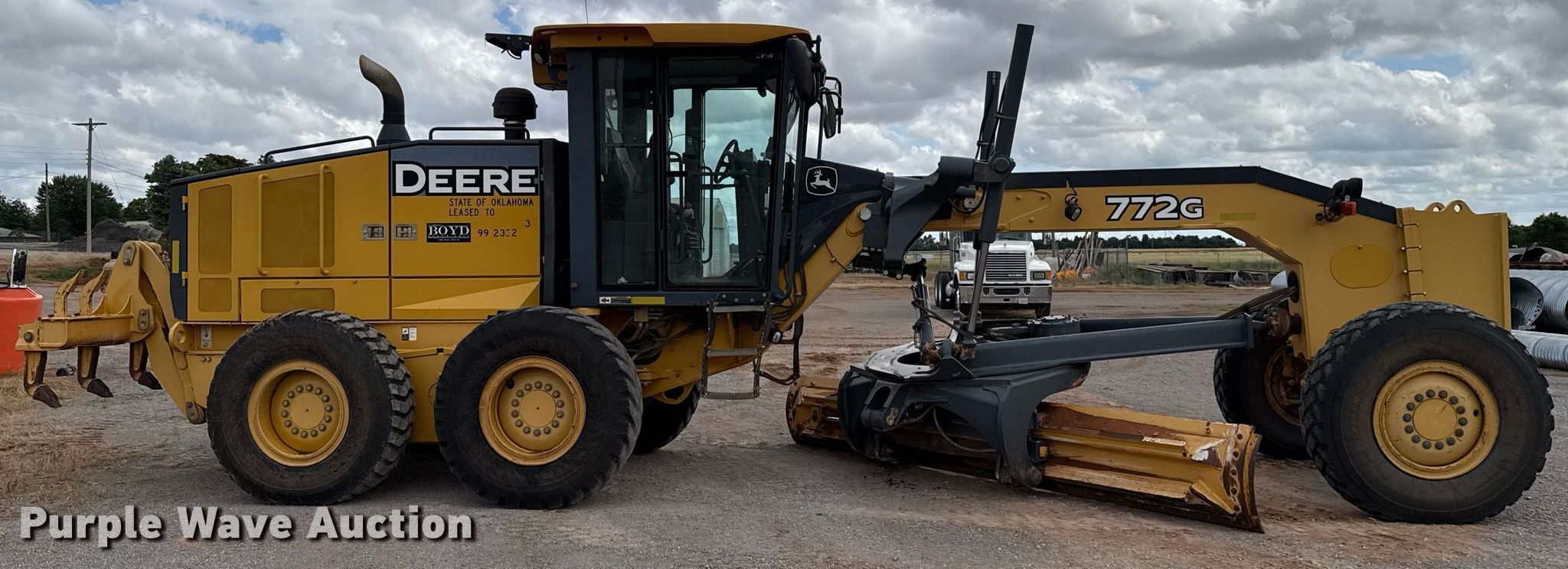 Purple Wave is selling a used Motor Grader in Oklahoma. This item is a 2013 John Deere 772G motor grader with the following: Hours: 8,840 on meter, Serial: 1DW772GXVDE651867