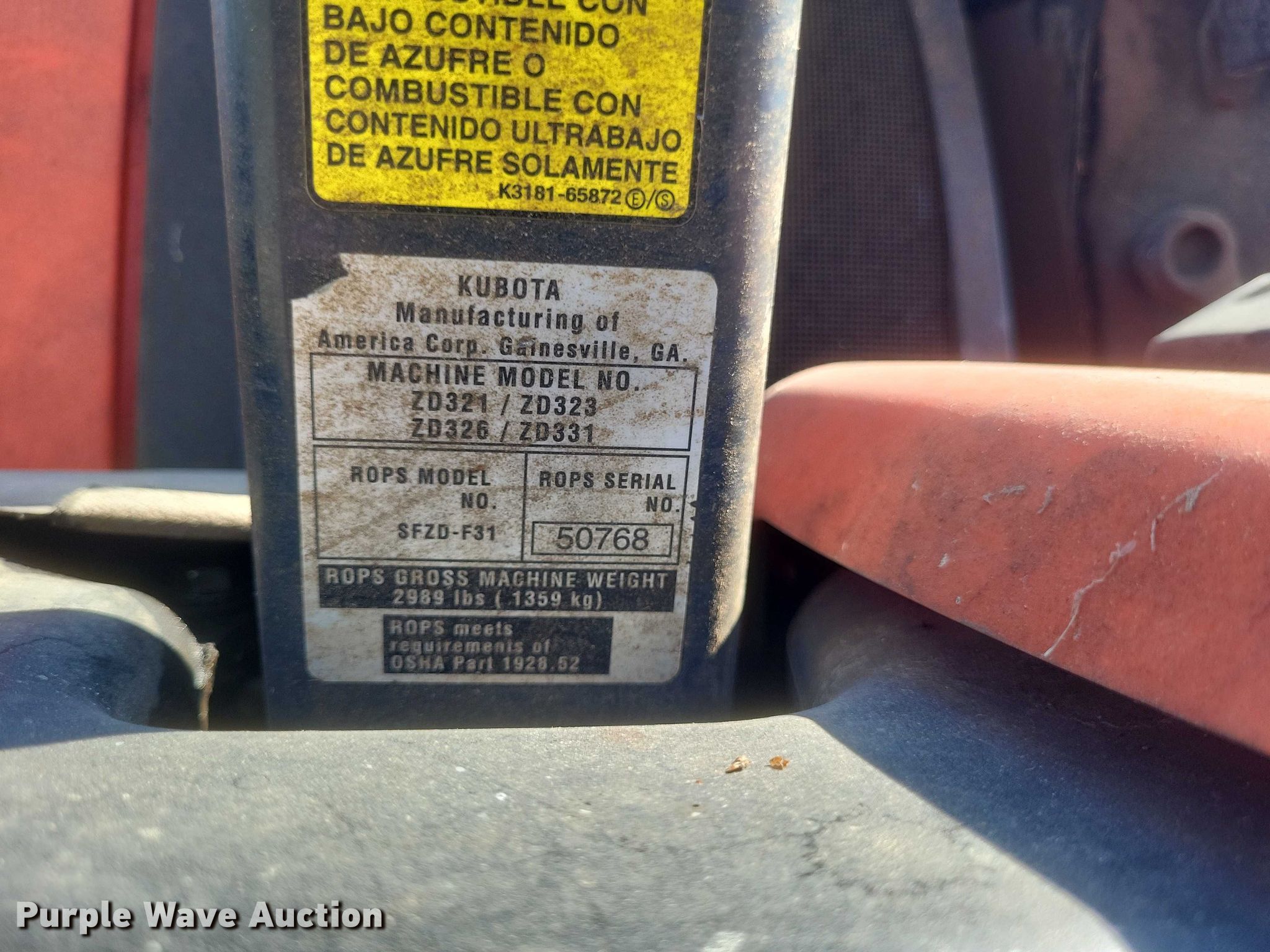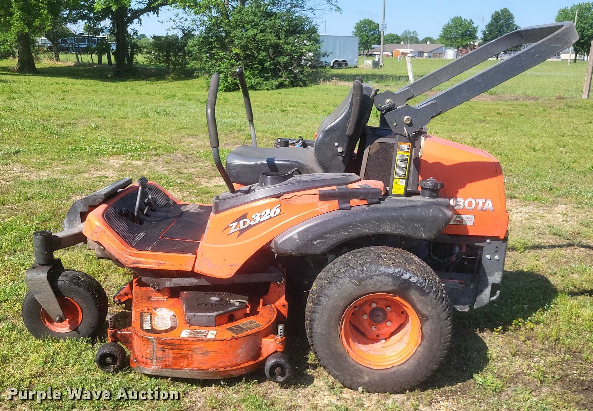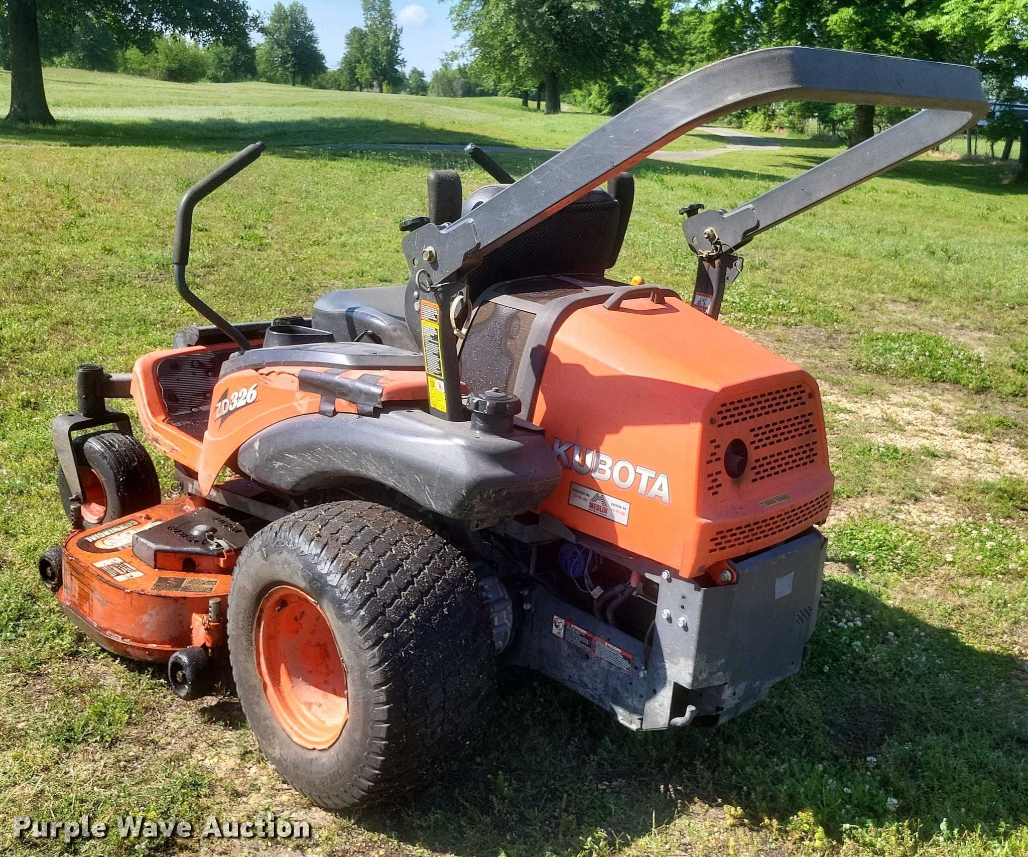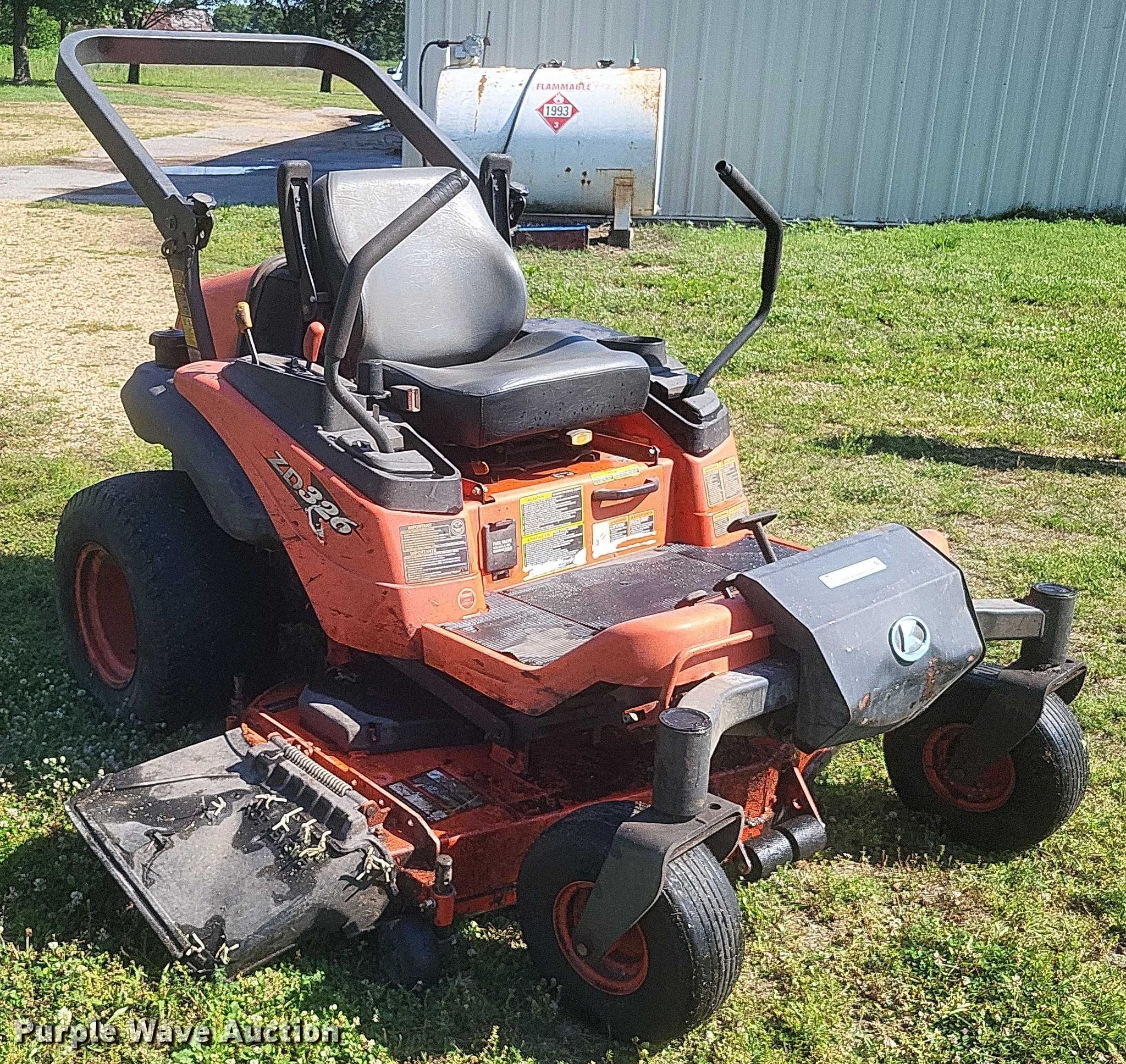 Purple Wave is selling a used Commercial Turf Mower in Missouri. This item is a Kubota ZD326 ZTR lawn mower with the following: Hours: 2,083 on meter, Cutting width: 60"