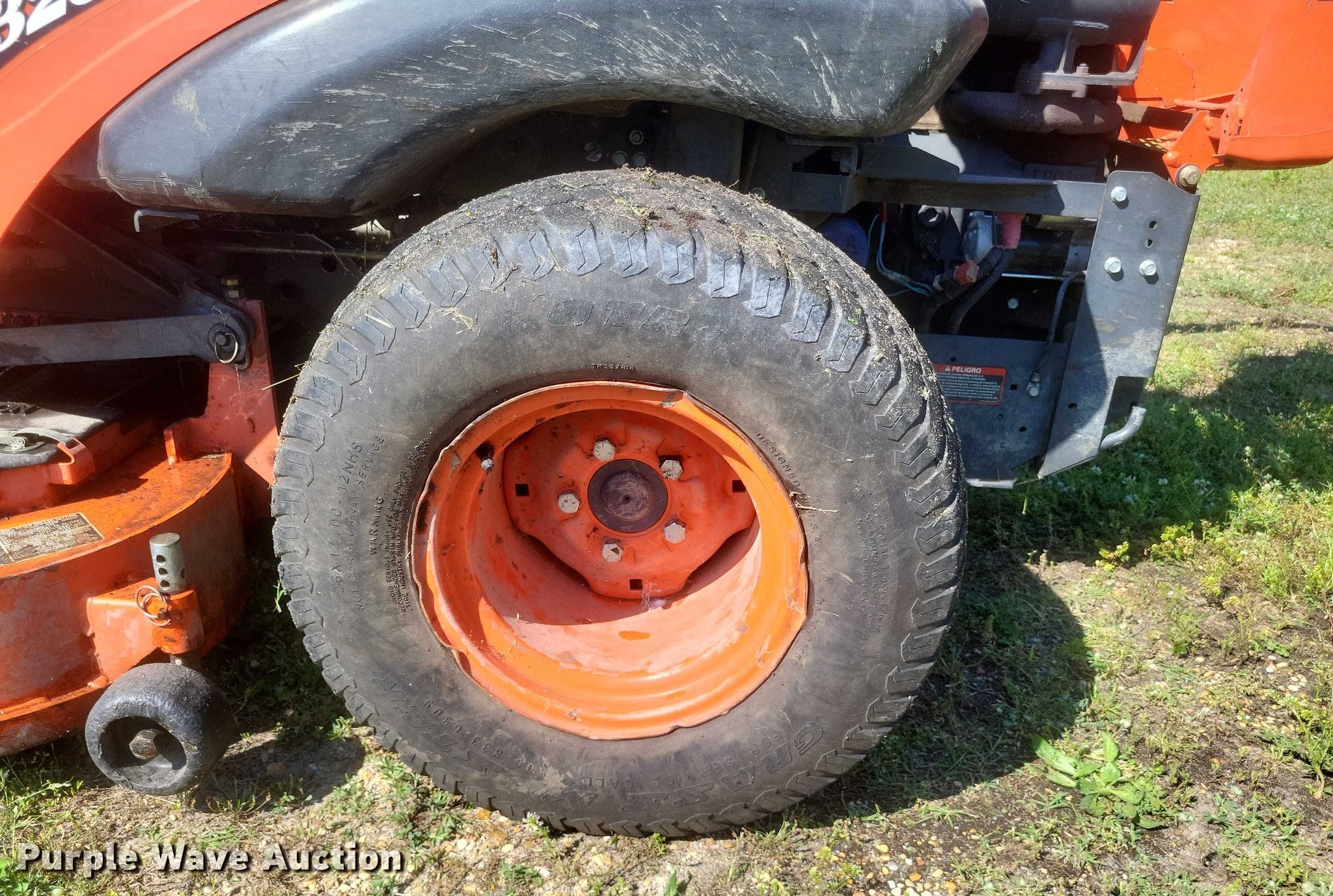 Kubota ZD326 ZTR lawn mower. Hours: 2,083 on meter, Cutting width: 60". Engine Kubota, Cylinders: 3, Fuel type: Diesel. Transmission Hydrostatic. Operators station OROPS. Tires Front: 15x6.00-4.50, Rear: 26x12.00-12. Notes Dead battery, Rear right tire damaged, Left rear wheel damaged. Sikeston Board of Municipal Utilities. Sikeston, MO 63801