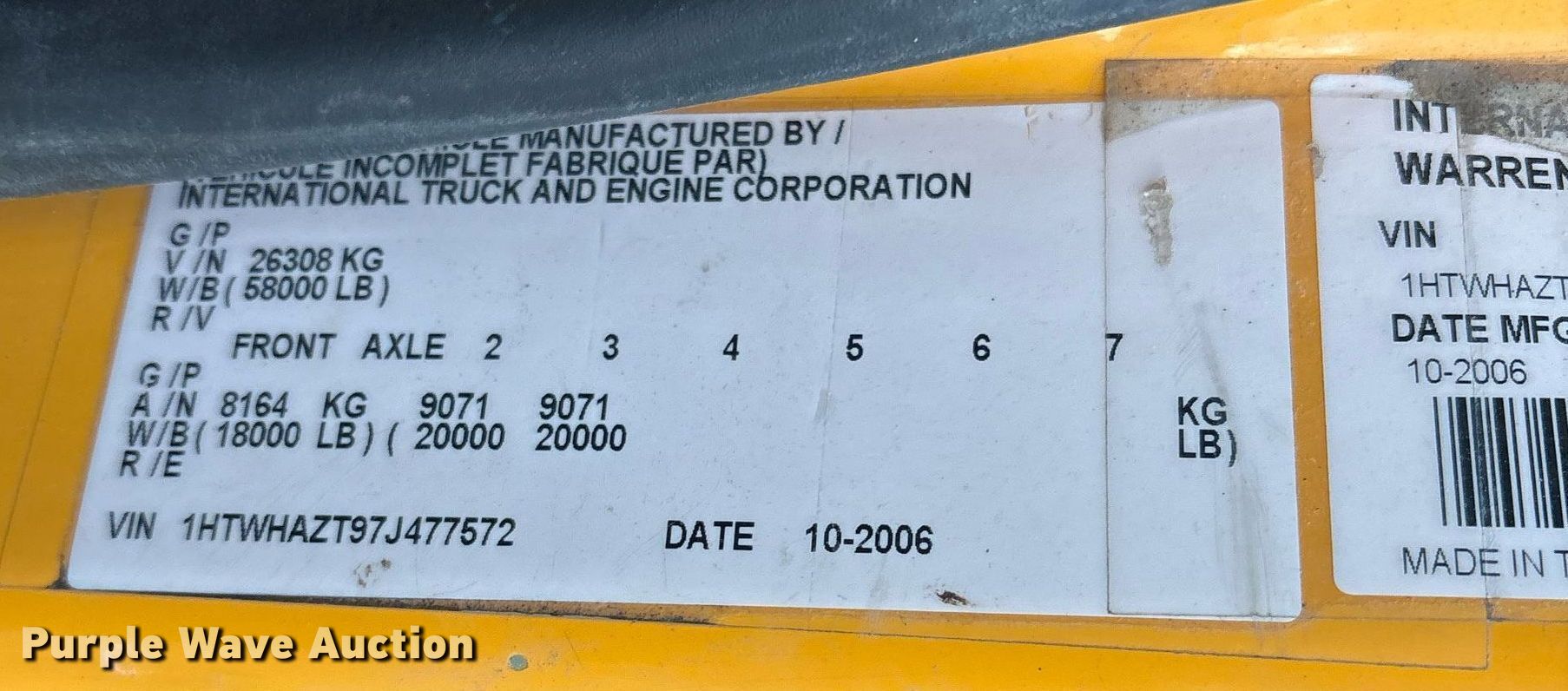 Purple Wave is selling a used Construction Dump Truck in Oklahoma. This item is a 2007 International 7400 dump truck with the following: Miles: 194,950 on odometer, VIN: 1HTWHAZT97J477572