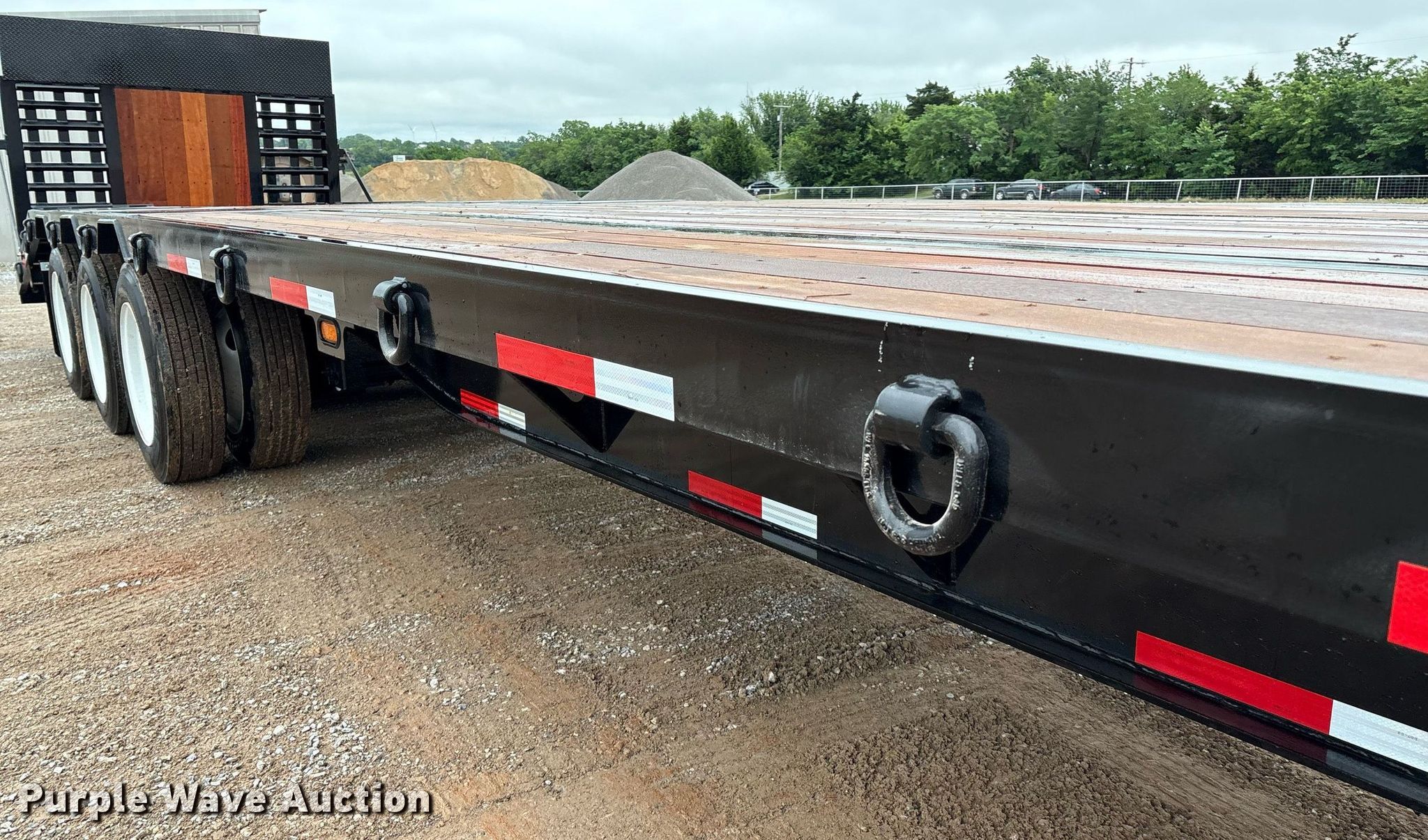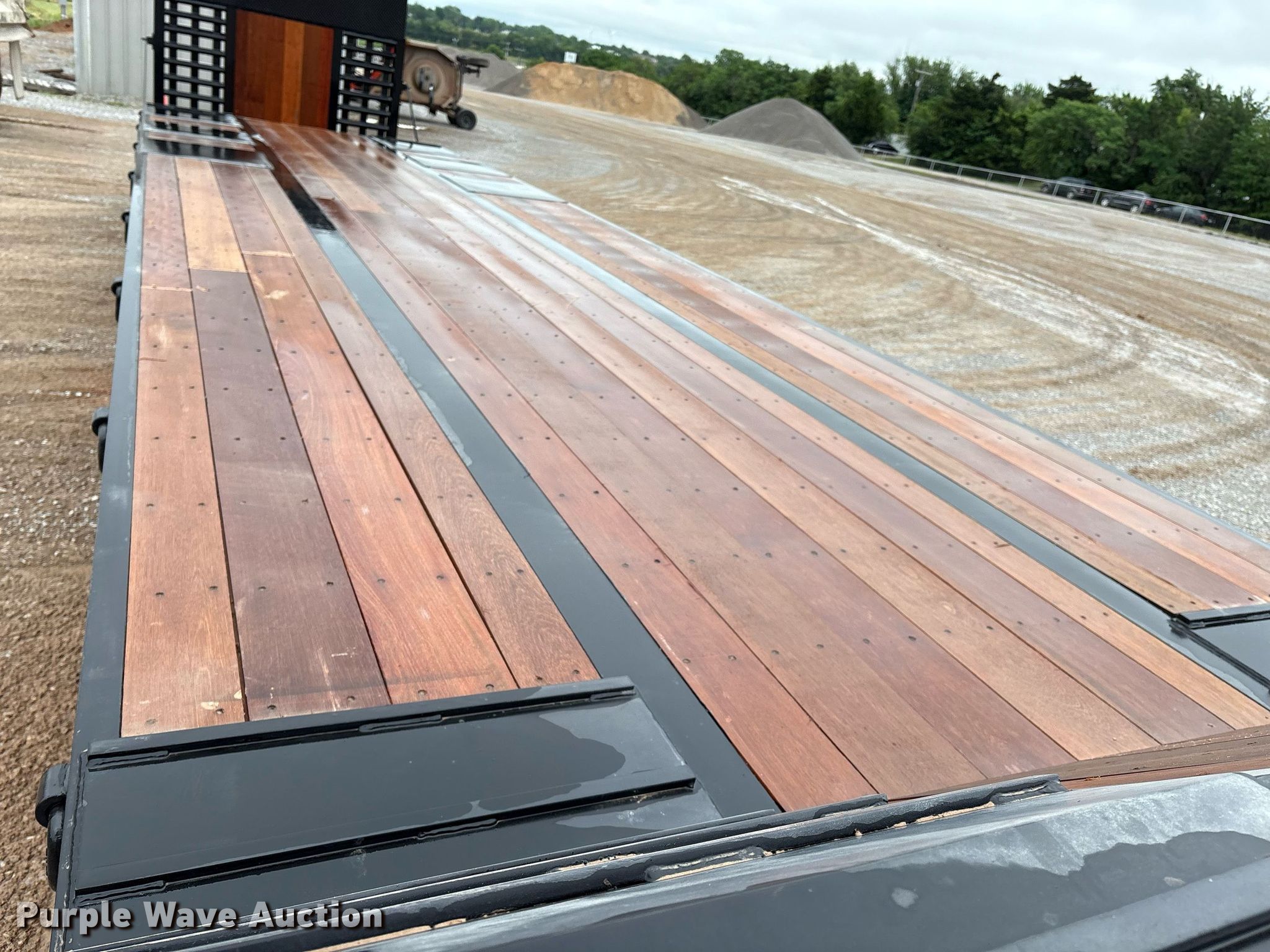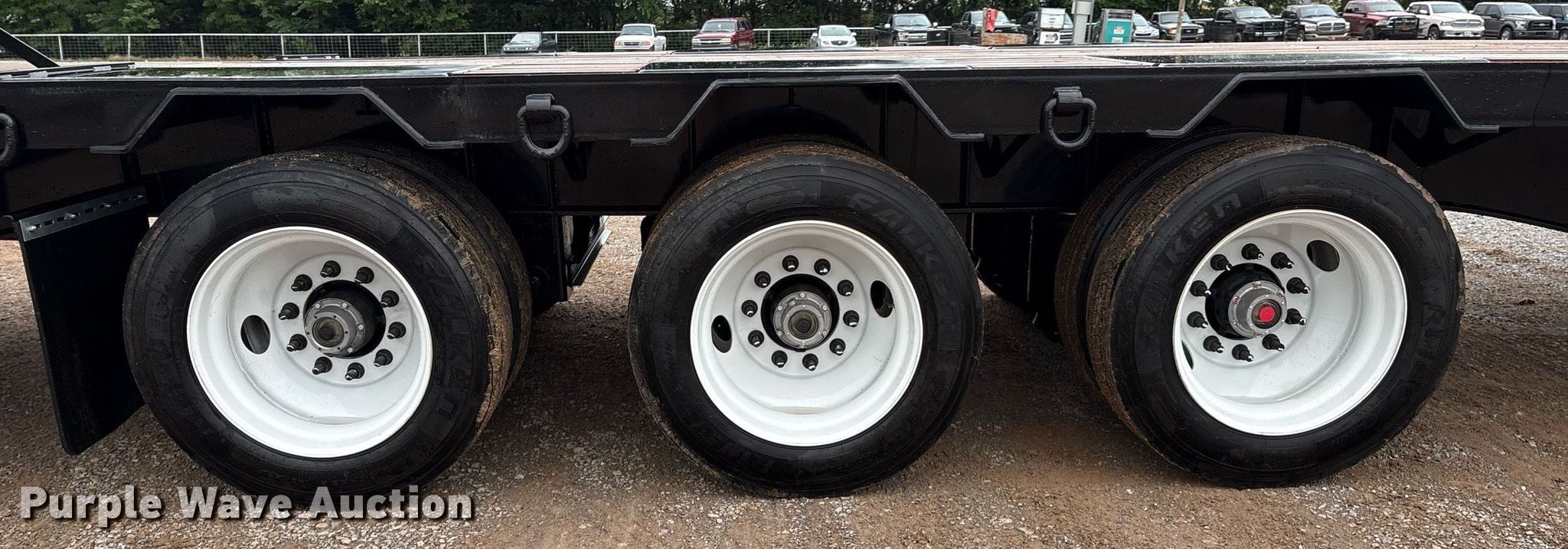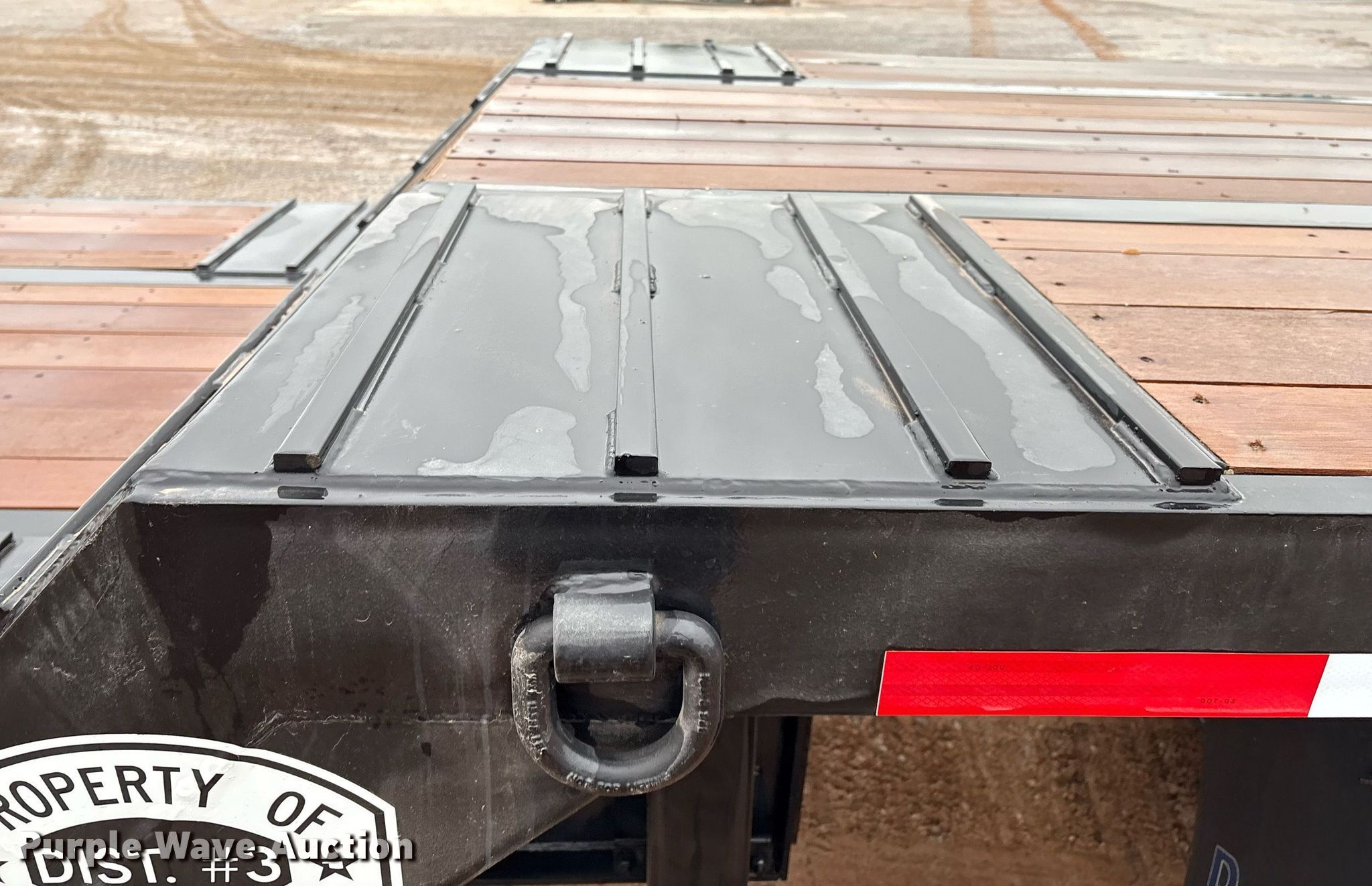 2024 BT Trailers drop deck equipment trailer. VIN: 4B9B6LR33RF154062. Dimensions Overall: 46' L x 102" W, Deck: 30' L x 102" W, Top deck length: 10', Deck height: 43", Tail length: 6', Ramps: Hydraulic Length: 6'. Features Deck type: Wood, Self-contained hydraulics, Hydraulic controls: Remote control. Chassis Landing gear: Dual, Suspension: Air, Brakes: Air, Axles: Triple, GVWR: 100,000 lbs. Tires Steel wheels, Size: 255/70R22.5. Oklahoma title. Title distribution may be delayed up to 30 days from verification of funds. Grady County. Rush Springs, OK 73082