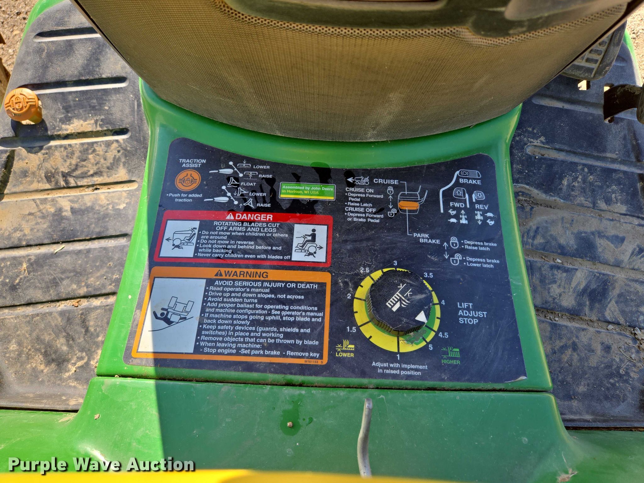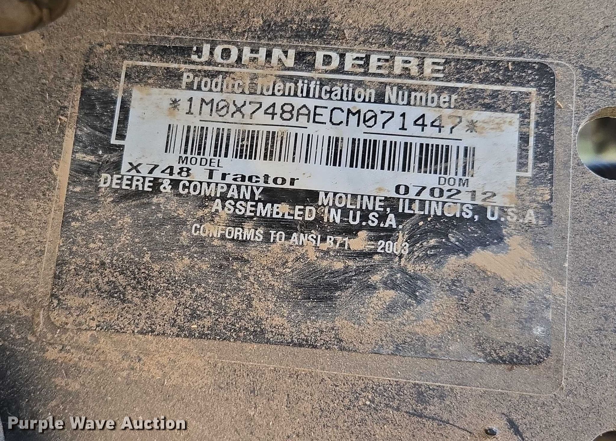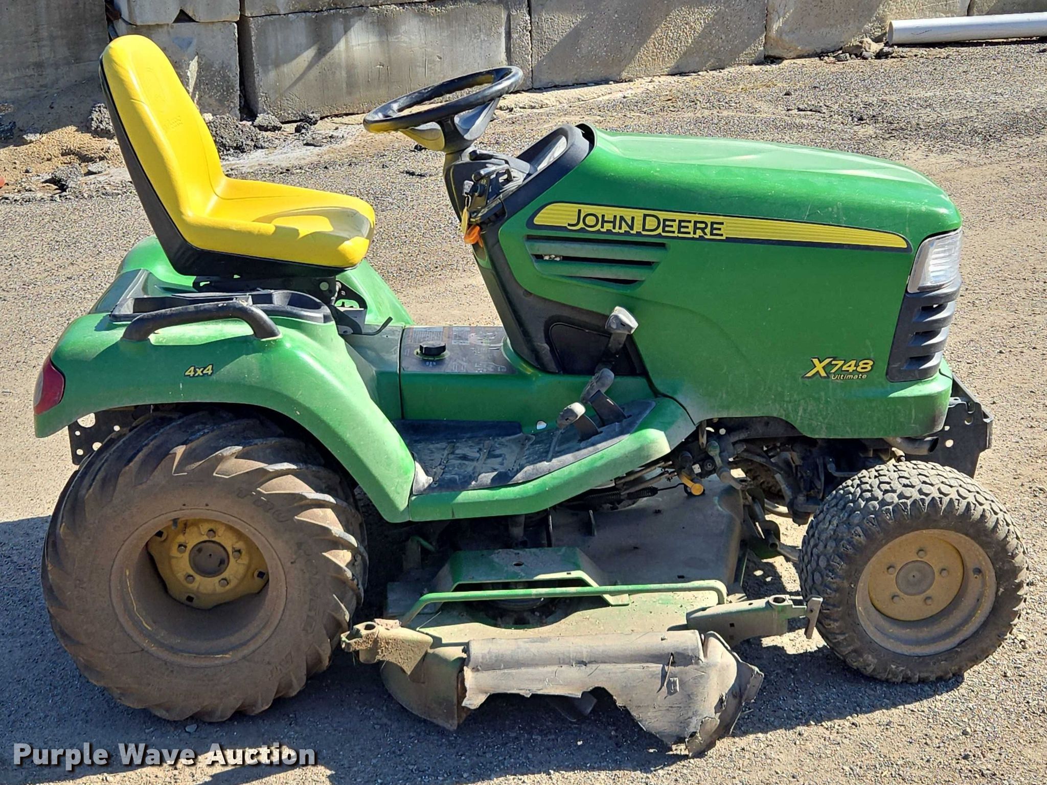 Purple Wave is selling a used Lawn Mower in Missouri. This item is a John Deere X748 lawn mower with the following: Hours: 848 on meter, Cutting width: 60"