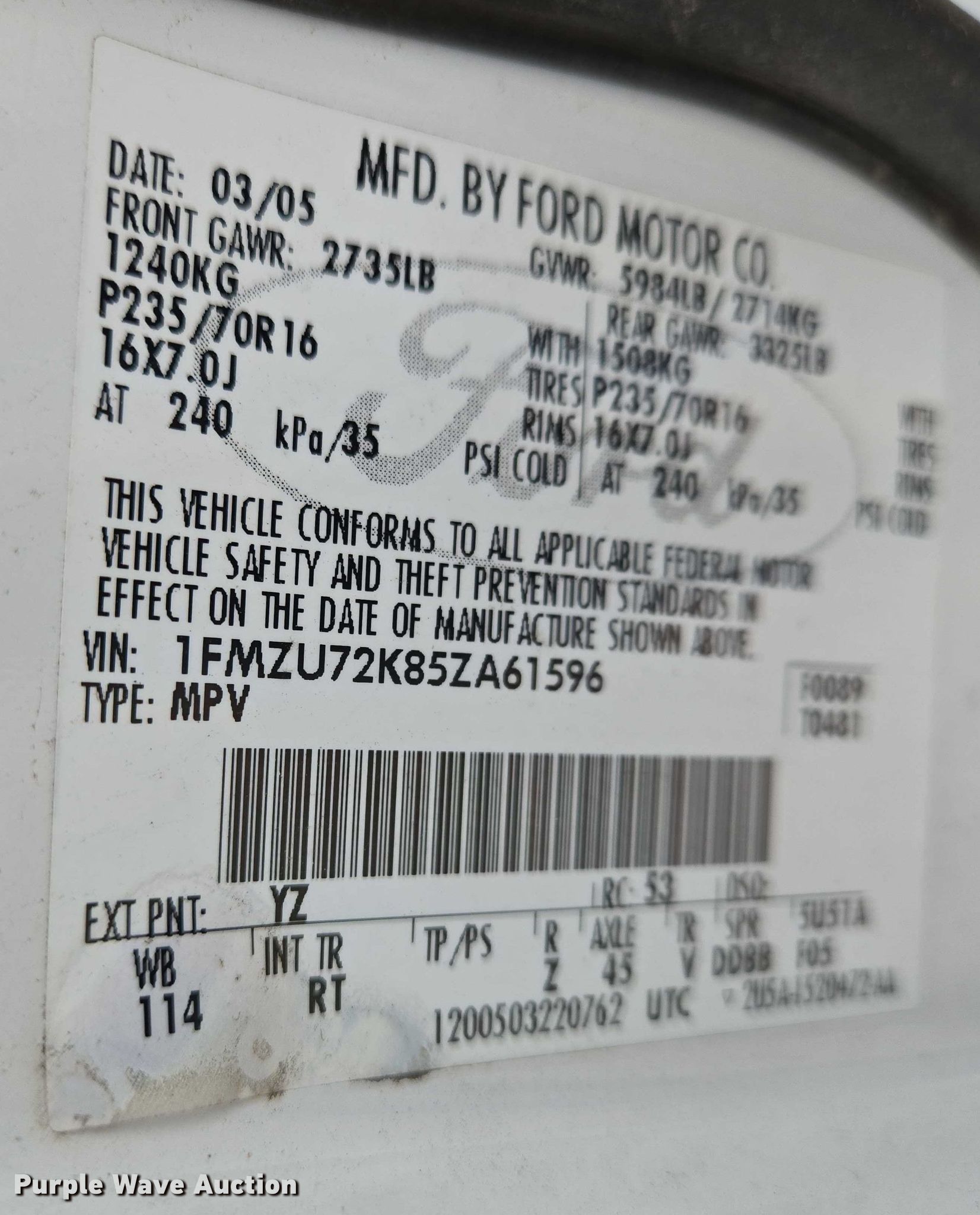 - VIN: 1FMZU72K85ZA61596