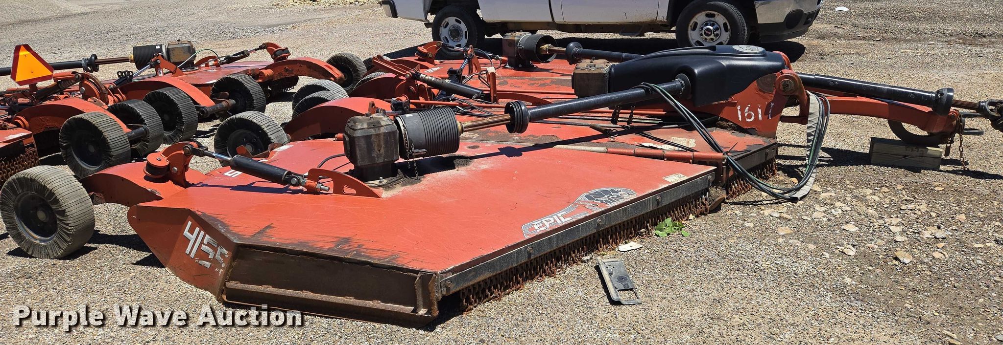 Purple Wave is selling a used Mower, Cutter, Shredder in Kansas. This item is a Rhino 4155 batwing rotary mower with the following: Width: 15', Hydraulic lift, Hydraulic fold, PTO: 540
