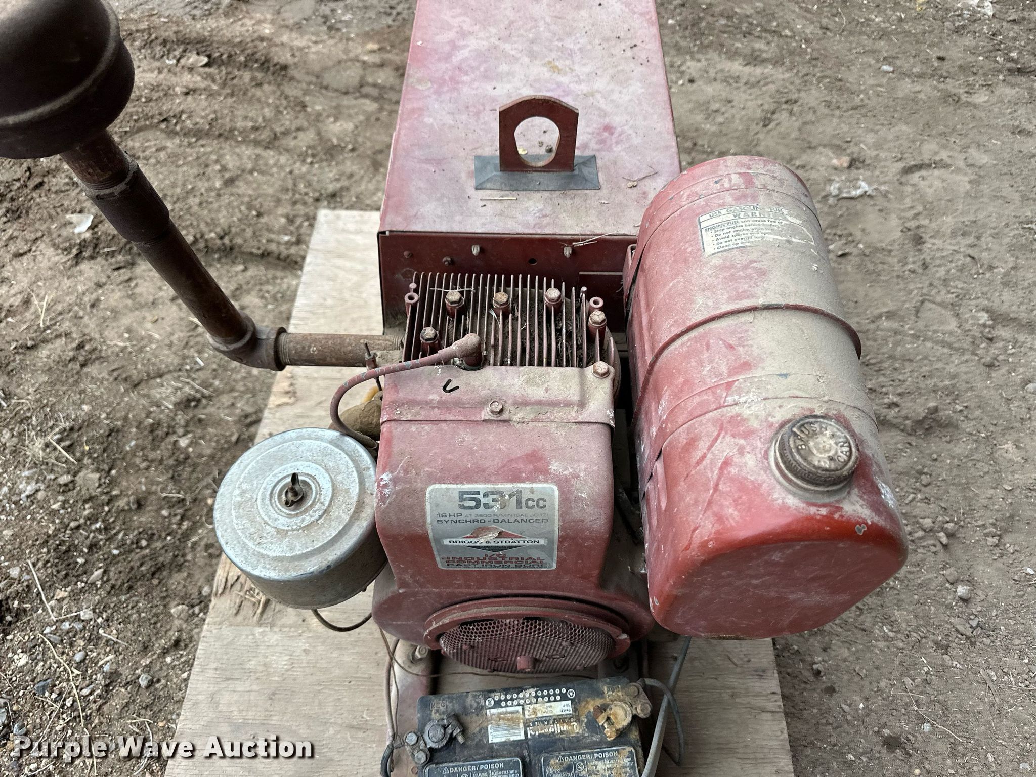Lincoln Electric Weldanpower welder/generator. Serial: A1024746. Engine Briggs & Stratton, Displacement: 531 cc, Cylinders: 1, Fuel type: Gas, HP: 16. Features Welder Capabilities: DC, AC, Stick, Leads, Fuel tank, Skid mounted, Generator Watts: 6,000, Phase: Single, 230V outlets: 2, 115V outlets: 4. Booker, TX 79005