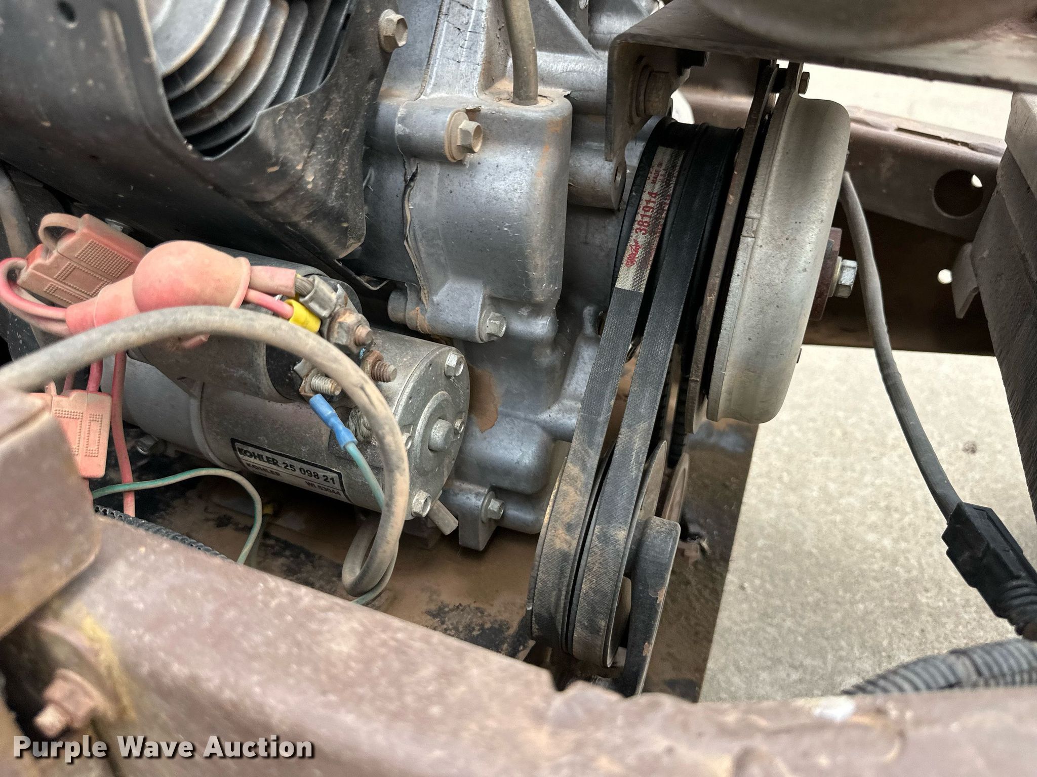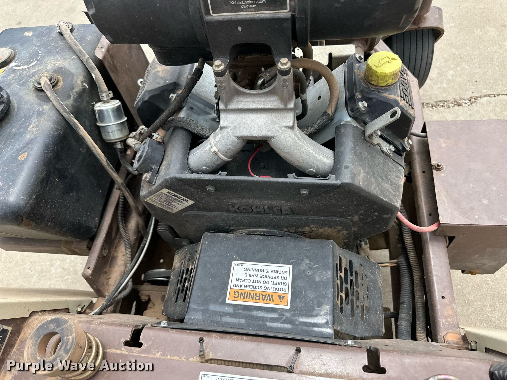 Grasshopper 727K ZTR lawn mower. Hours: 1,829 on meter. Engine Kohler, Cylinders: 2, Fuel type: Gas. Transmission Hydrostatic. Tires Front: 22x11.00-10. Notes Aerator not included. Booker ISD. Booker, TX 79005