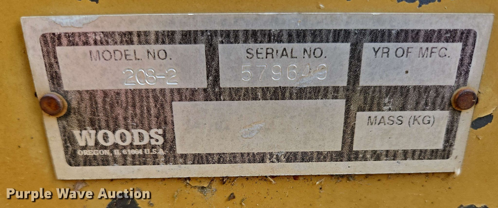 Purple Wave is selling a used Mower, Cutter, Shredder in Arkansas. This item is a Woods 208-2 rotary mower with the following: Serial: 579649