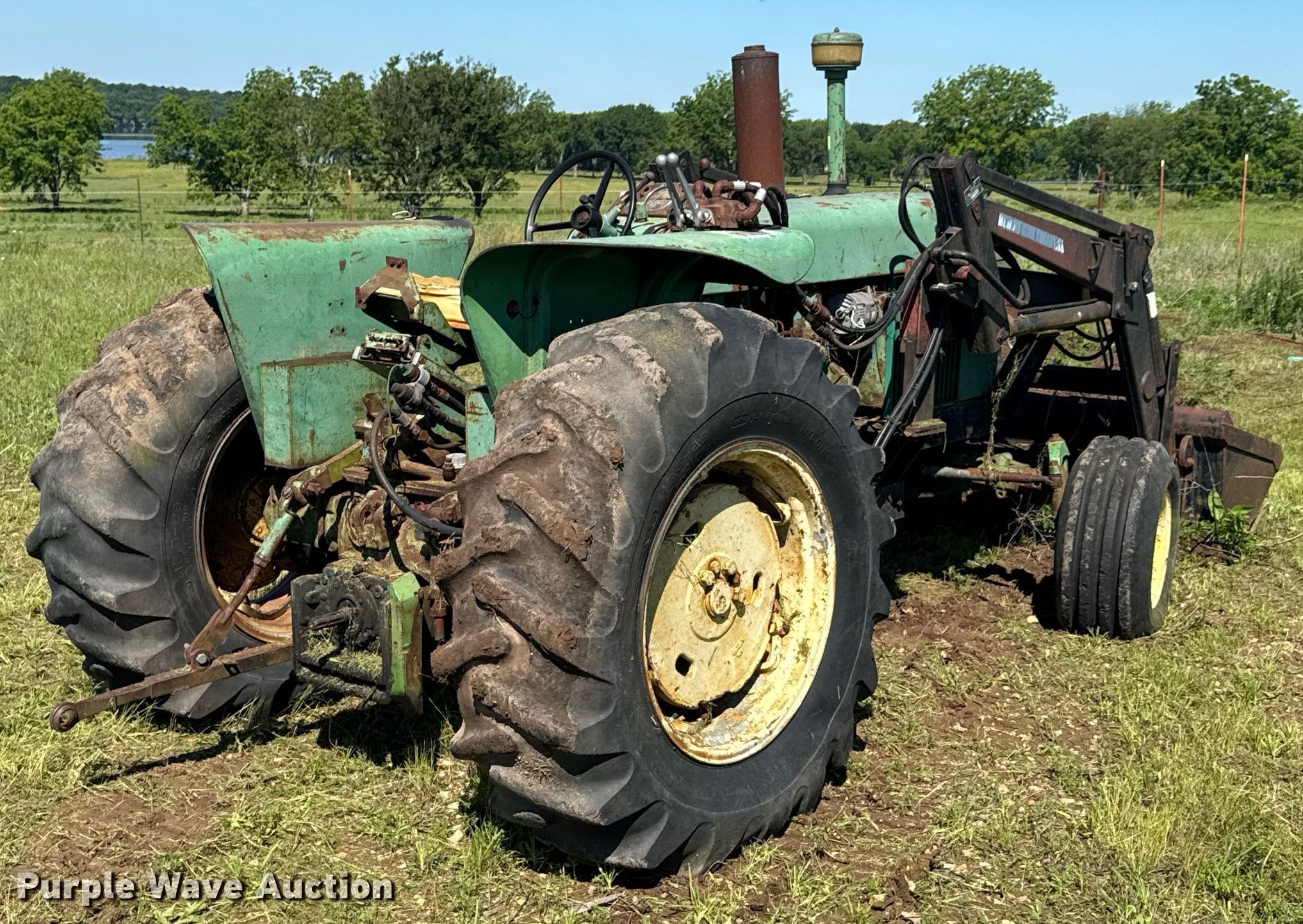 1961 John Deere 3010 tractor. Hours: 298 on meter Actual hours unknown, Serial: 14T17927. Engine John Deere, Cylinders: 4, Fuel type: Diesel. Transmission Synchro, 8F - 3R. Features PTO: 540, Three point, Hydraulic remote sets Rear: 1, Loader Controls: Two-lever, Bucket Width: 62".. Tires Front: 11L-15, Rear: 16.9-28. Notes Non-operational dash clusters, Non-operational unit. Spring Creek Ranch. Strang, OK 74367