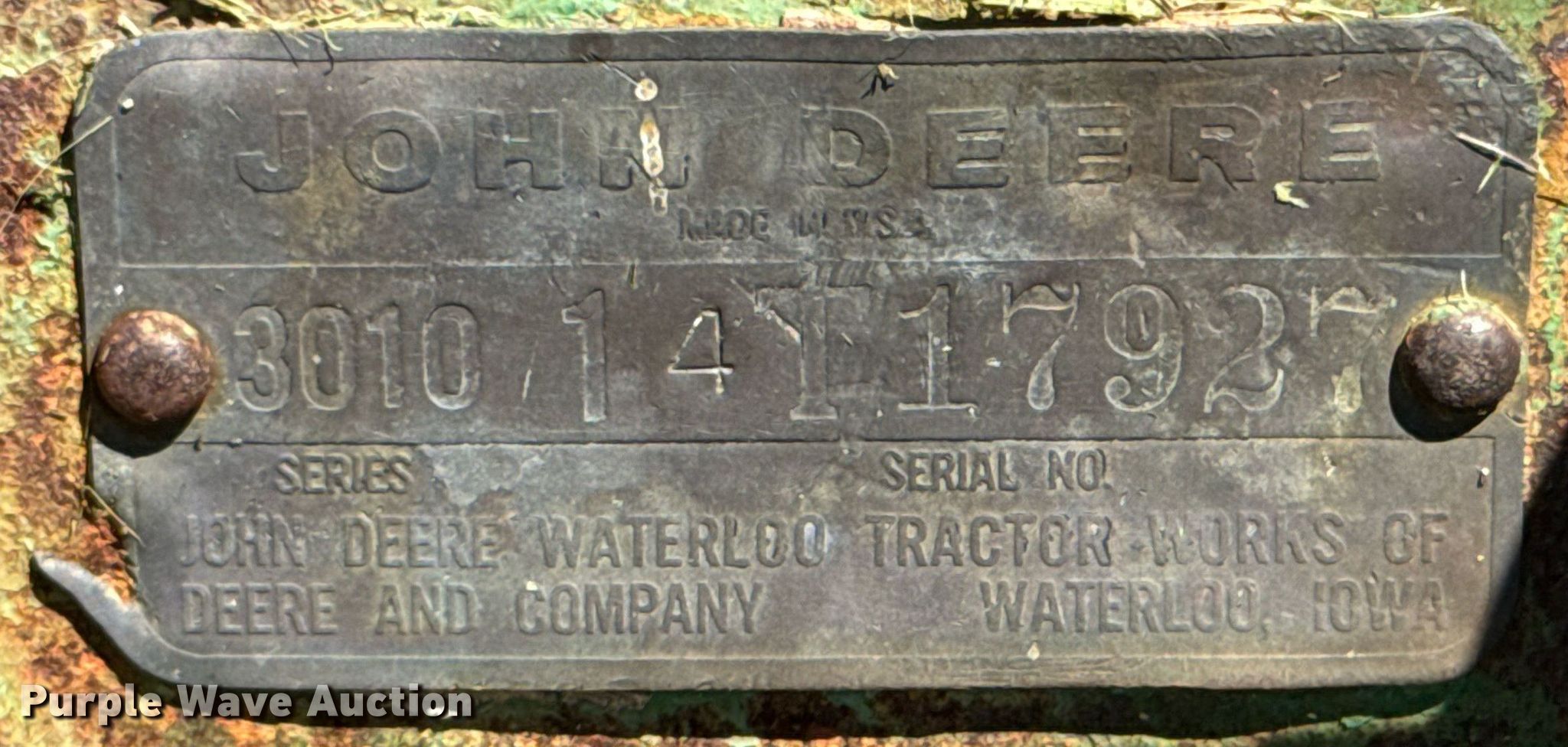 Purple Wave is selling a used Tractor in Oklahoma. This item is a 1961 John Deere 3010 tractor with the following: Hours: 298 on meter, Actual hours unknown, Serial: 14T17927