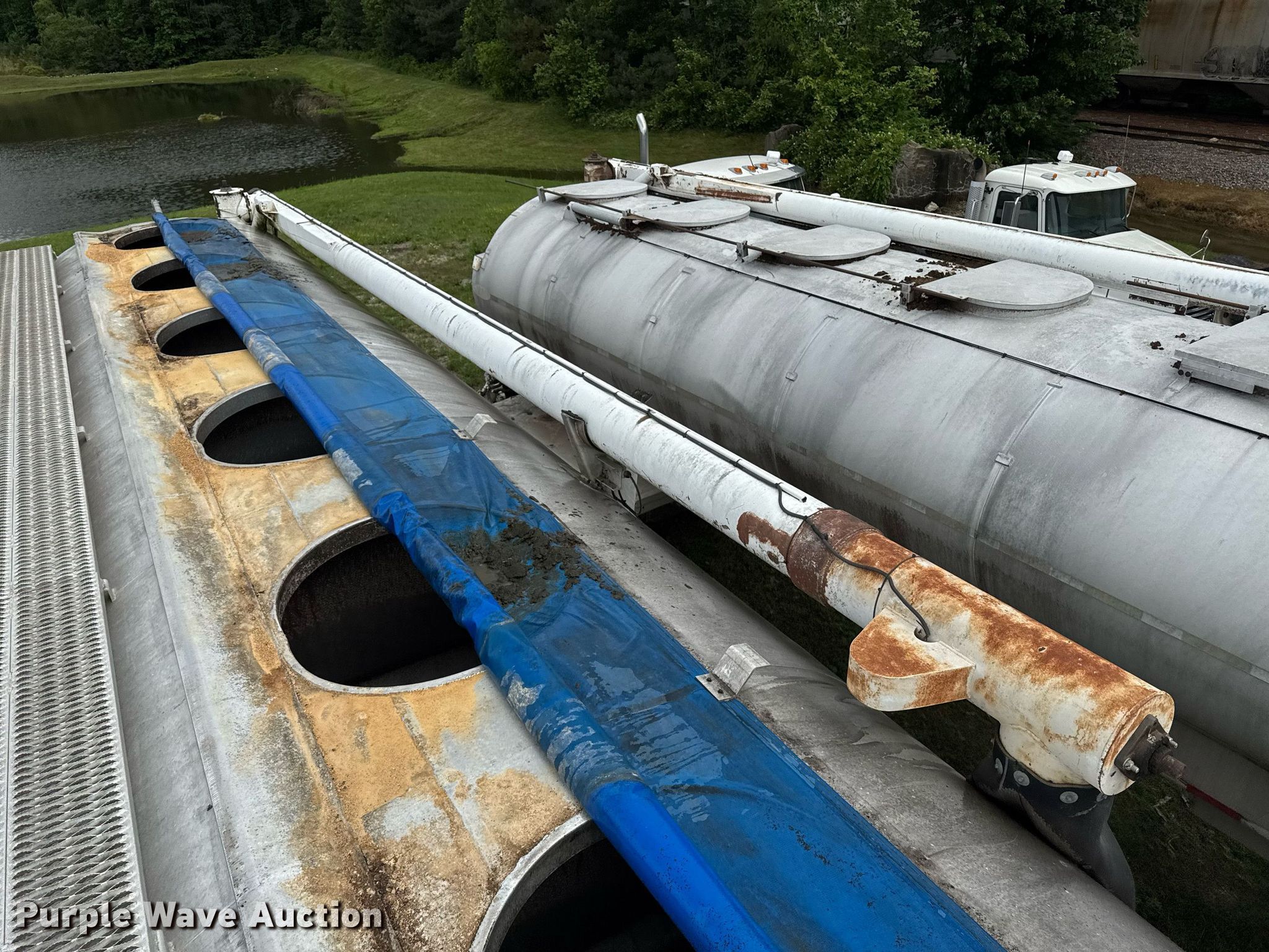 2006 Ledwell feed delivery trailer. Dimensions. Overall: 44' L x 96" W, VIN #1L9BC12C36L033668, Body: 40' L x 96" W. Features Body type: Aluminum, Compartments: 8, Roll tarp, Discharge auger Length: 30', Diameter: 10". Chassis Landing gear: Dual, Suspension: Air, Brakes: Air, Axles: Tandem. Tires Steel wheels, Size: 11R24.5. North Carolina title. Smithfield Hog Production. Waverly, VA 23890