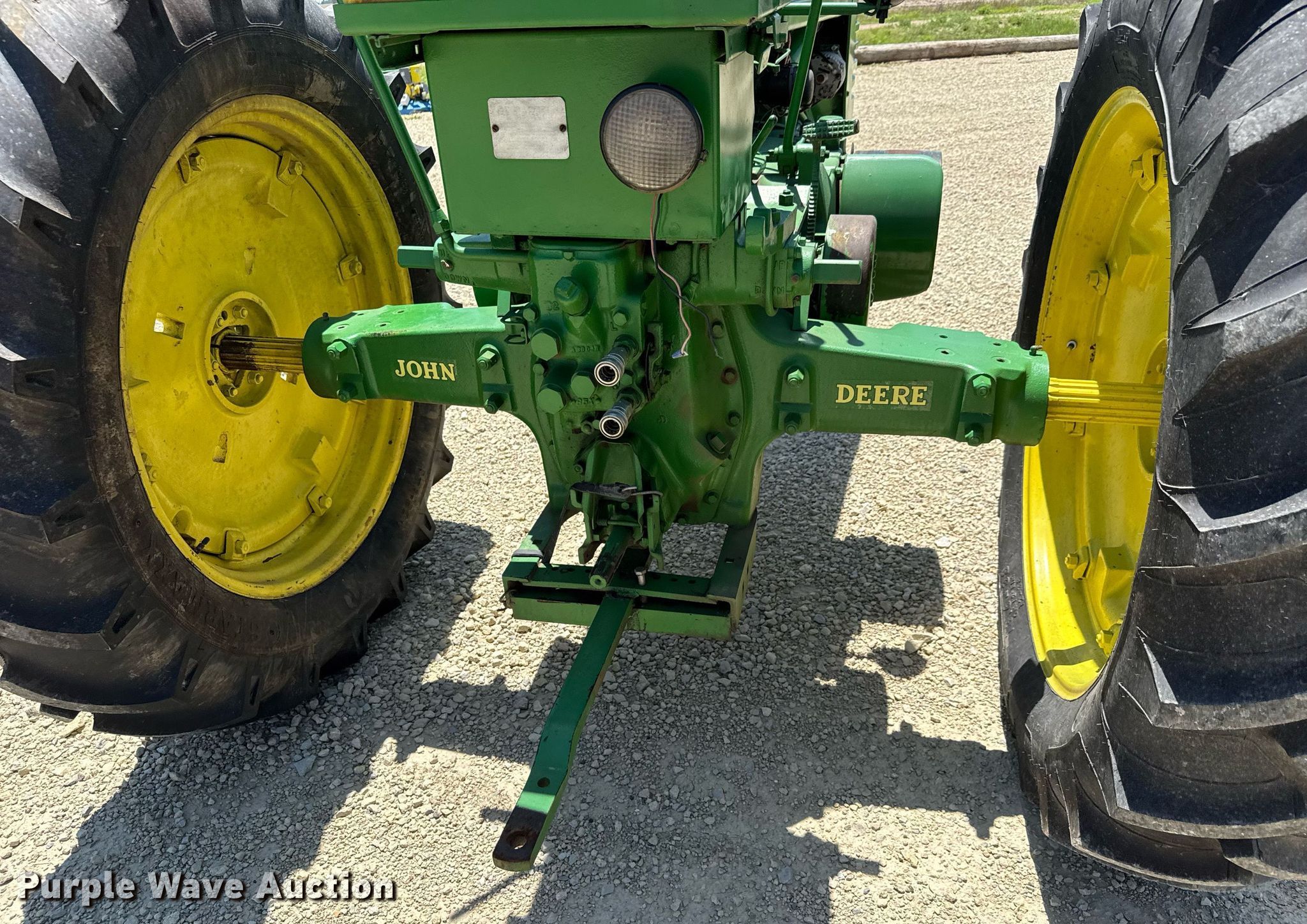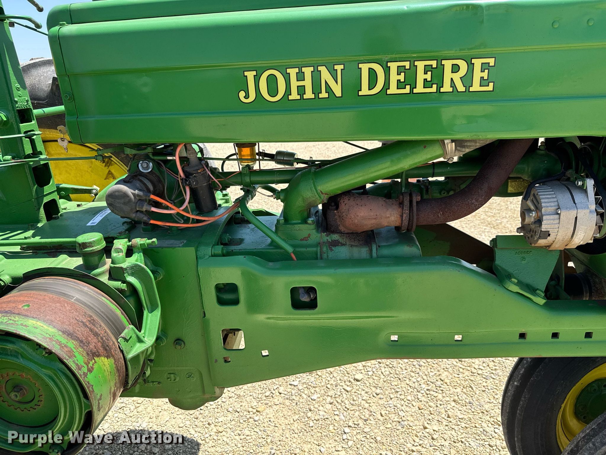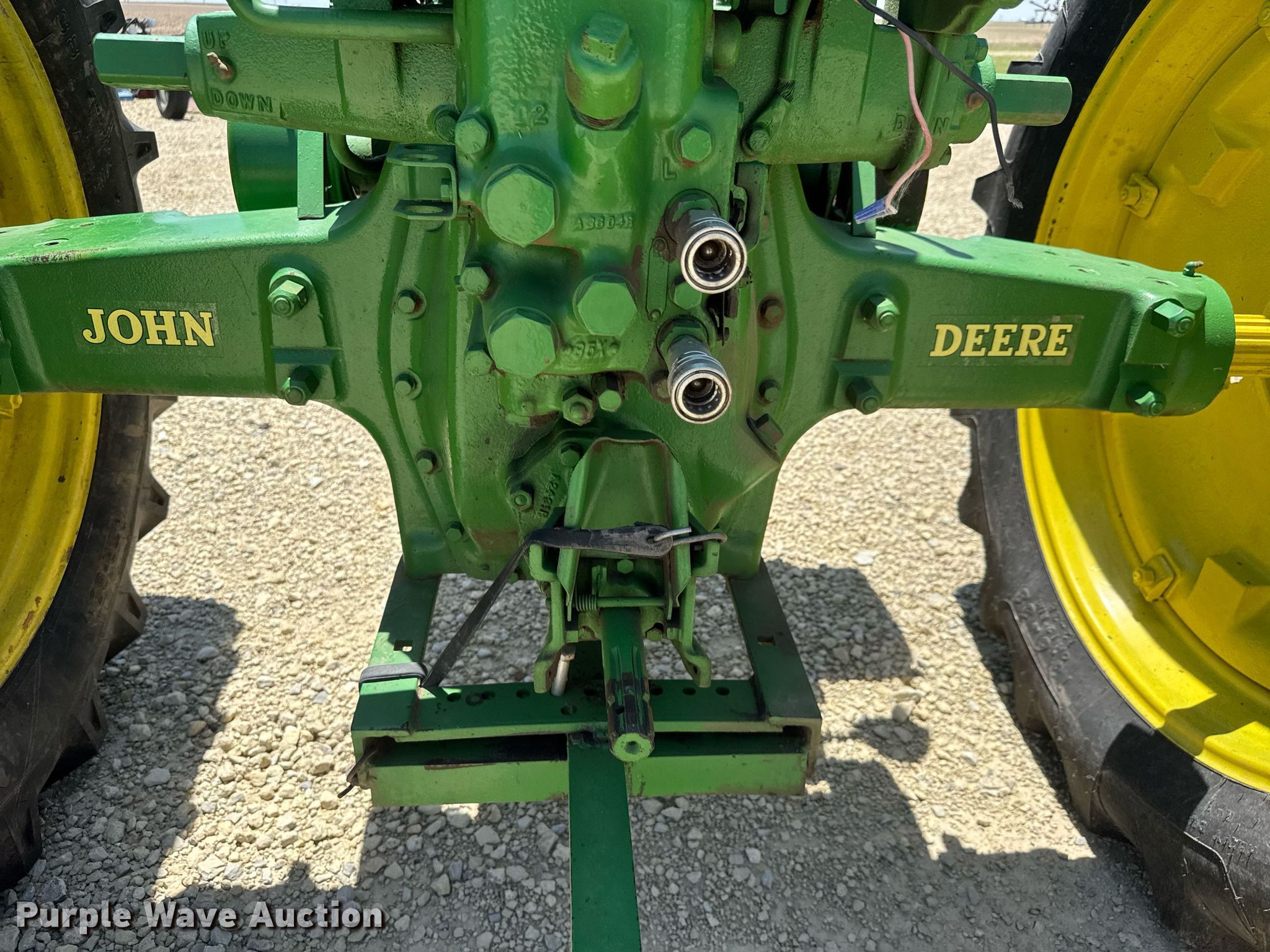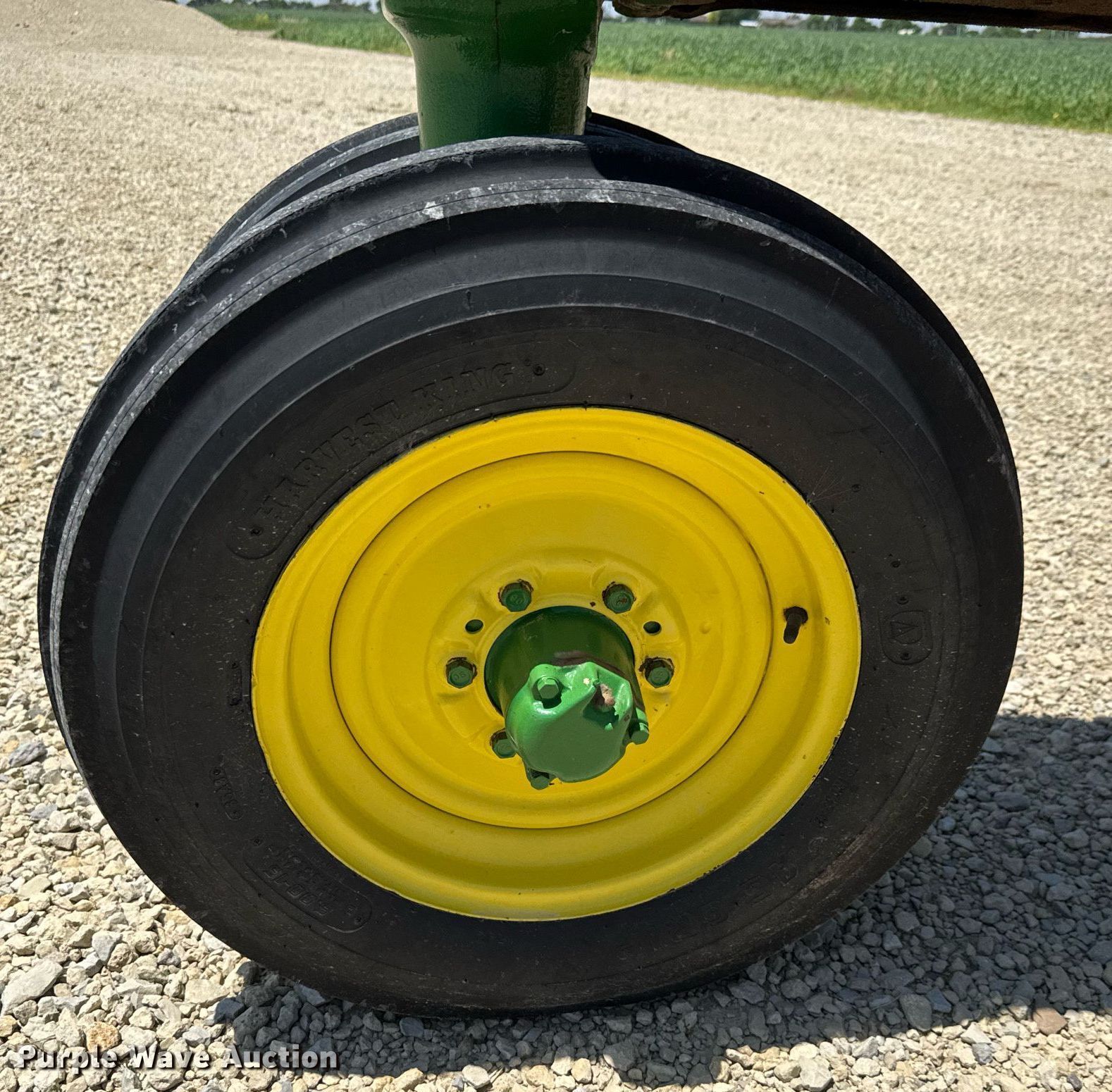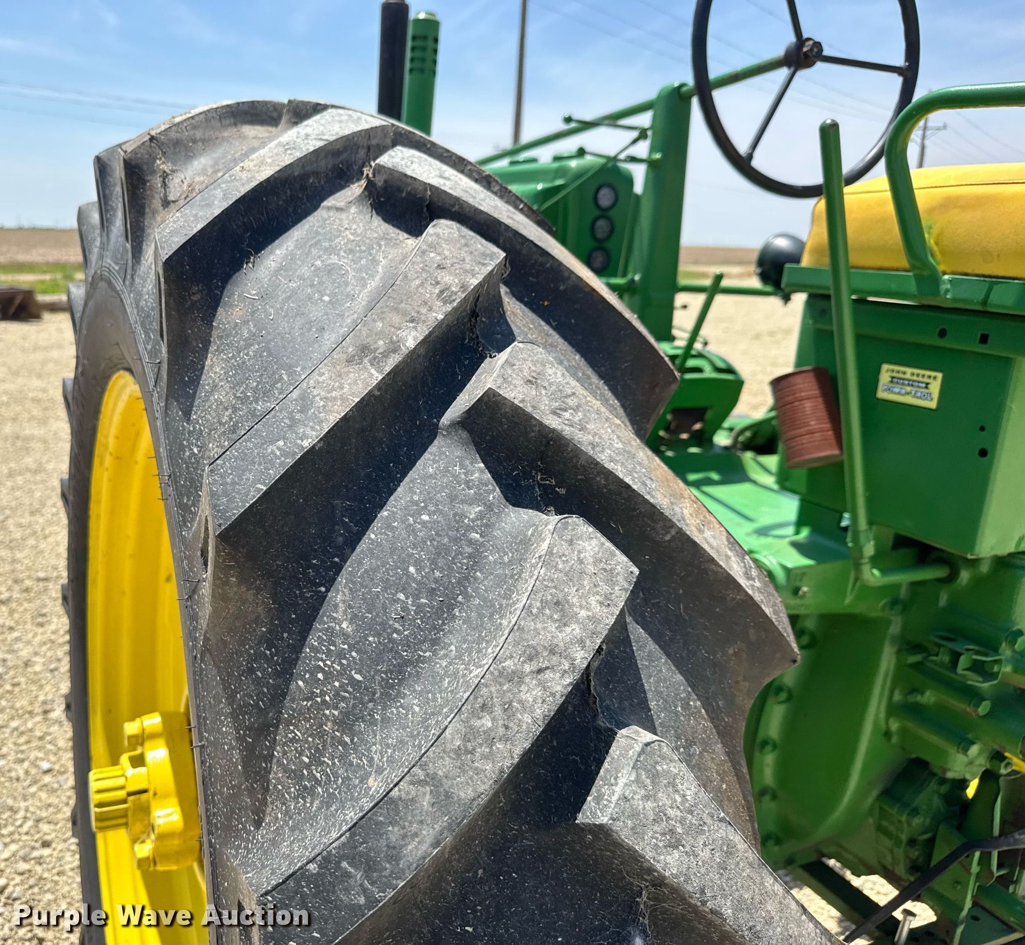 1950 John Deere A tractor. Serial: 657470. Engine Cylinders: 2, Fuel type: Gas. Transmission Manual, 6F - 1R. Features PTO: 540, Hydraulic remote sets Rear: 1. Tires Front: 6.00-16, Rear: 15.5-38. Notes Possible brake issues. Greensburg, KS 67054