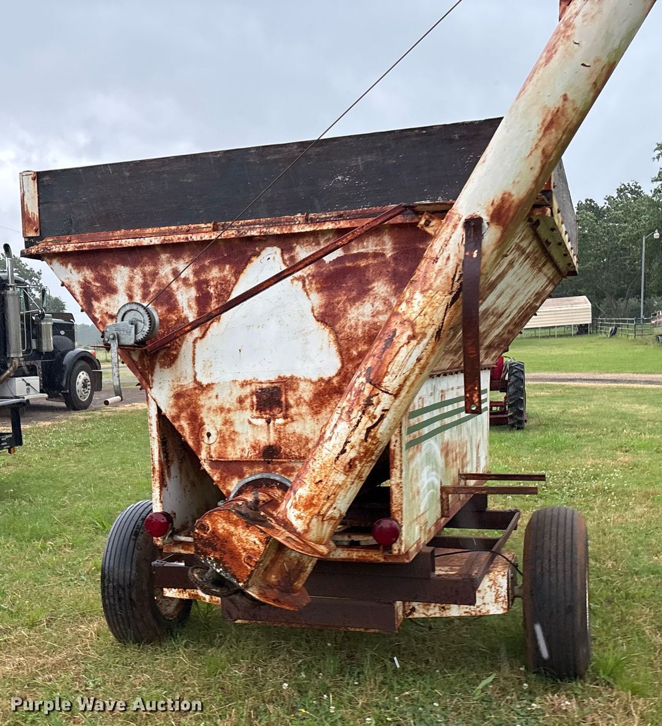 Purple Wave is selling a used Grain Cart or Gravity Wagon in Texas. This item is a Grain cart with the following: Lift: Manual, PTO: 540, Auger diameter: 6", PTO: 540