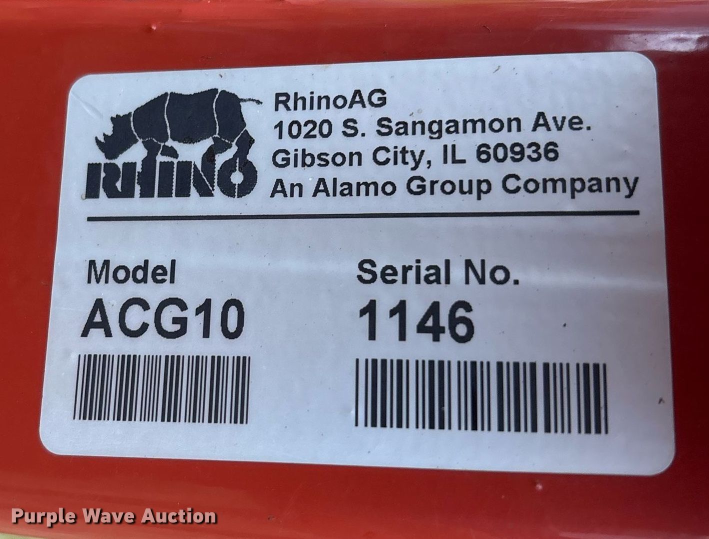 Purple Wave is selling a used Hay Handling in Texas. This item is a Rhino ACG10 bale accumulator grapple with the following: Serial: 1146, Capacity: 10 bales