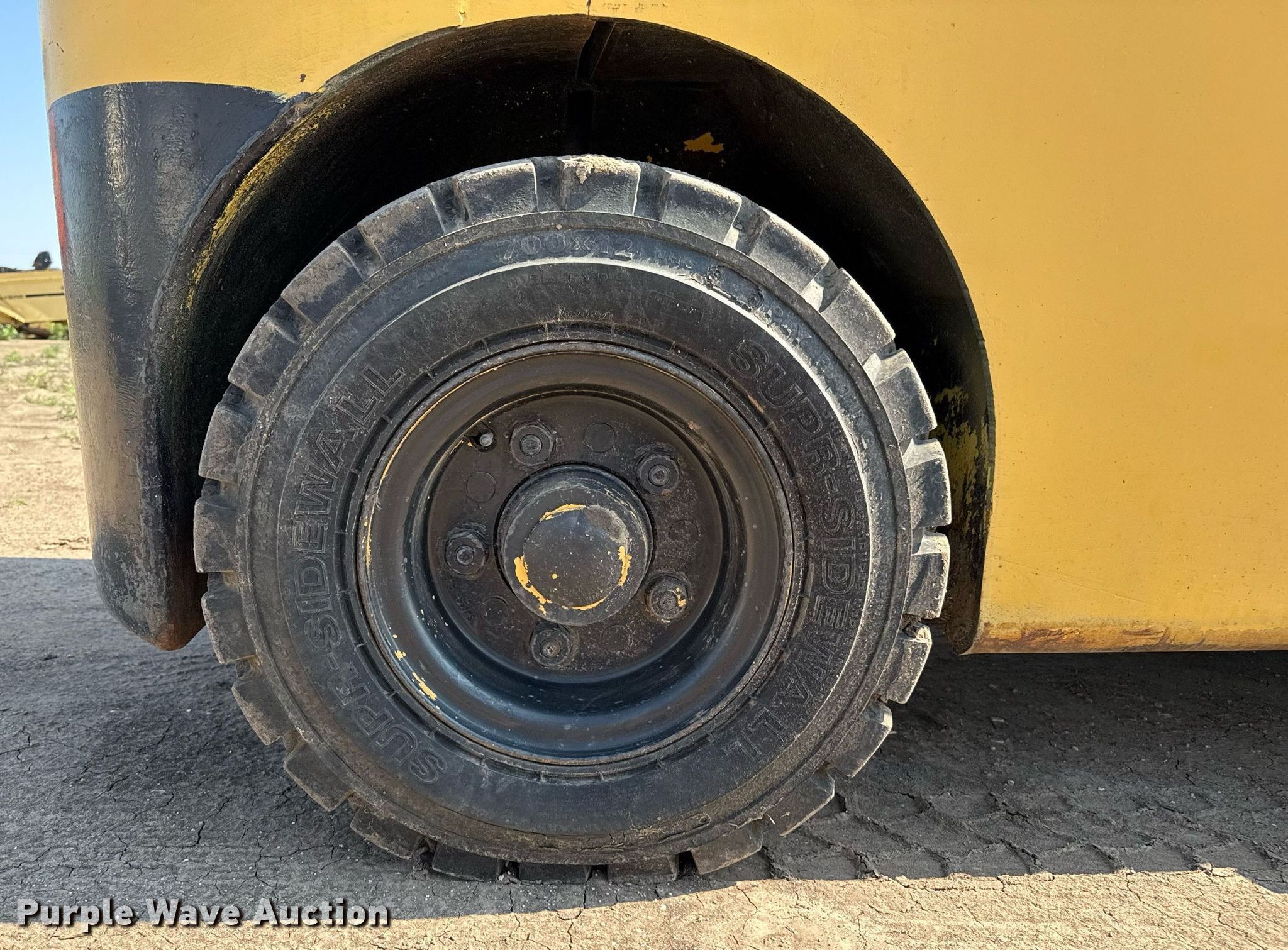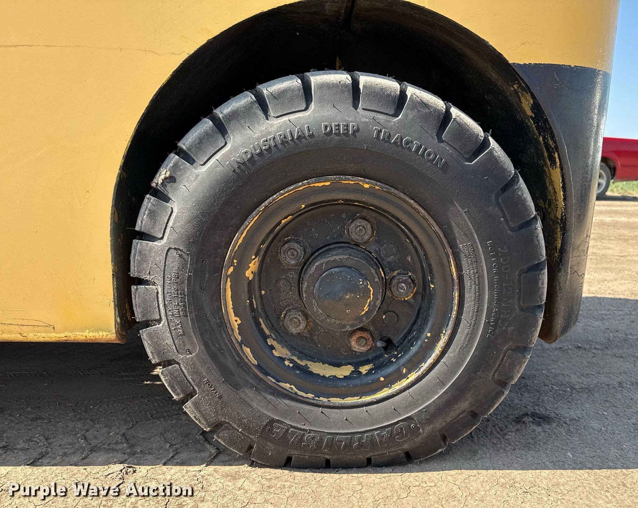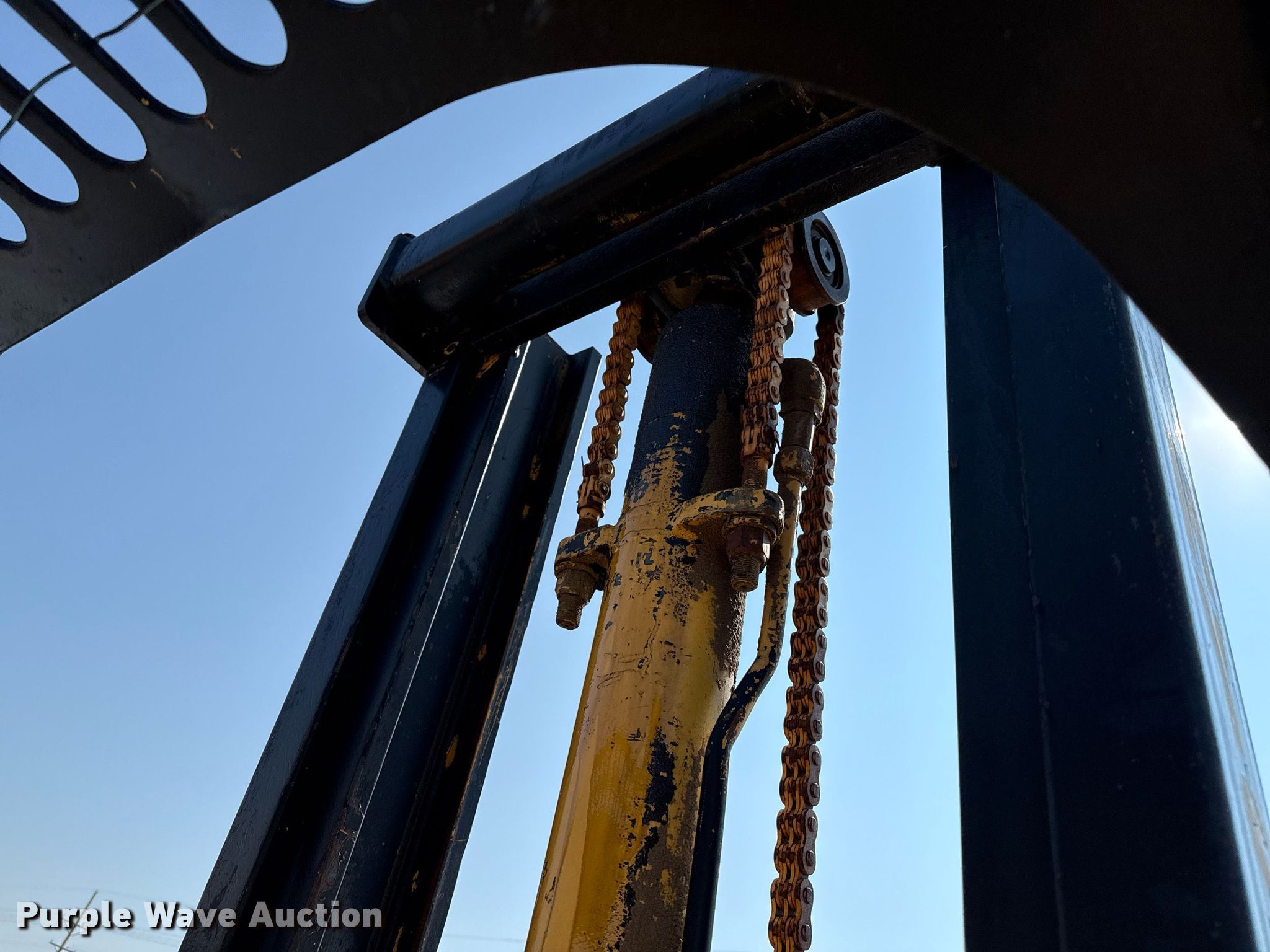 2001 Hyster H80C forklift. Hours: 1,856 on meter, Serial: C005D19408Y. Engine Cylinders: 6, Fuel type: Gas. Transmission Shuttle shift, 3F - 3R. Operators station Canopy. Features Maximum lift capacity: 17,416 lbs, Maximum lift height: 170", Collapsed mast height: 108", Mast stages: 2, Mast tilt, Fork length: 60". Tires Front: 8.25-15, Rear: 7.00-12. Plains, KS 67869