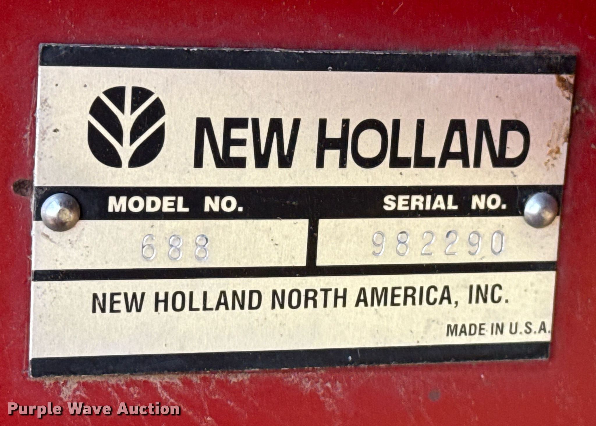 Purple Wave is selling a used Round Baler in Kansas. This item is a 2000 New Holland 688 round baler with the following: Serial: 982290