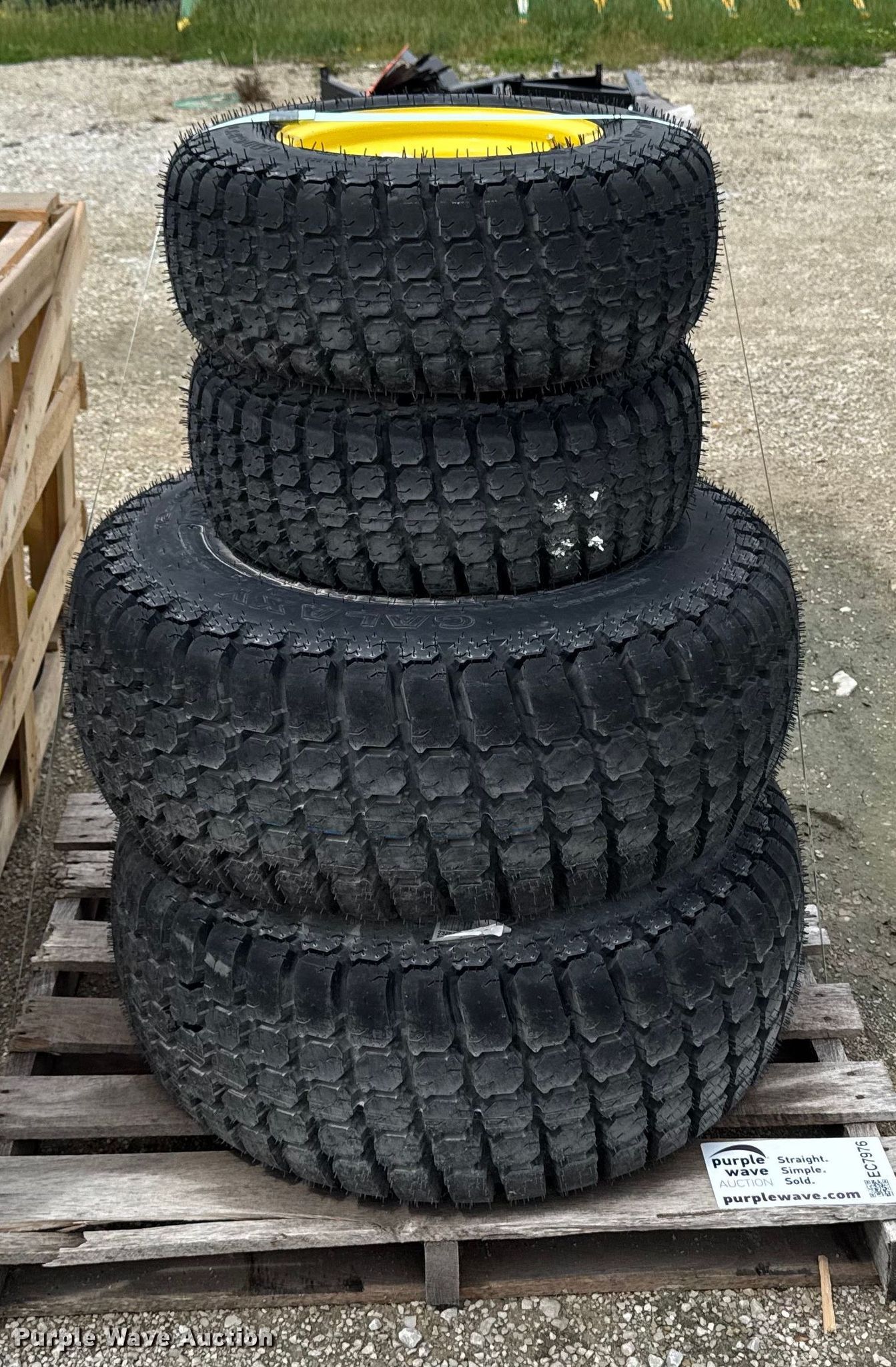 Purple Wave is selling a used Industrial Tires or Tracks in Iowa. This item is a Galaxy Mighty Mow turf tires and wheels with the following: (2) 23-8.50-12SS, (2) 12-16.5 NHS
