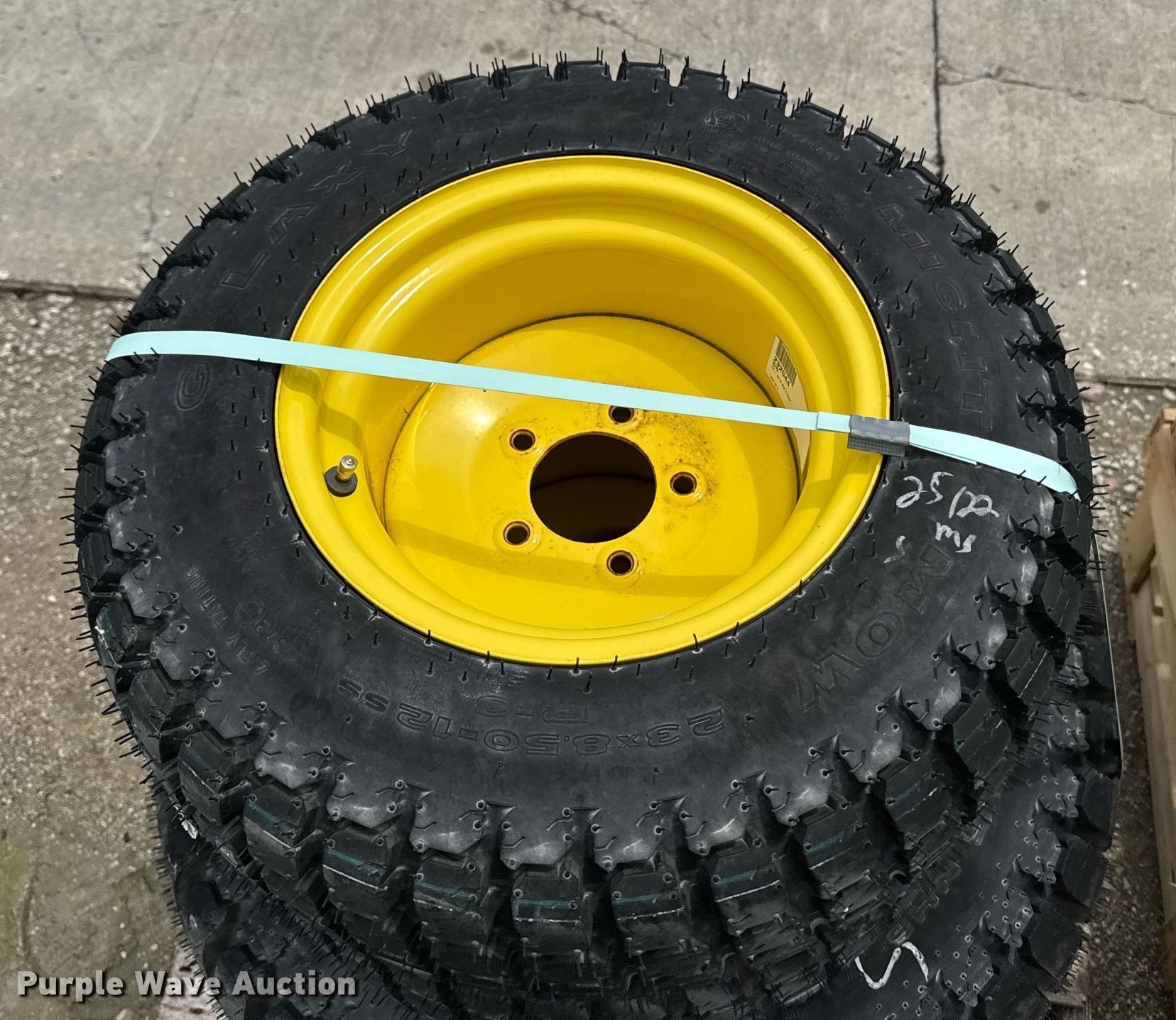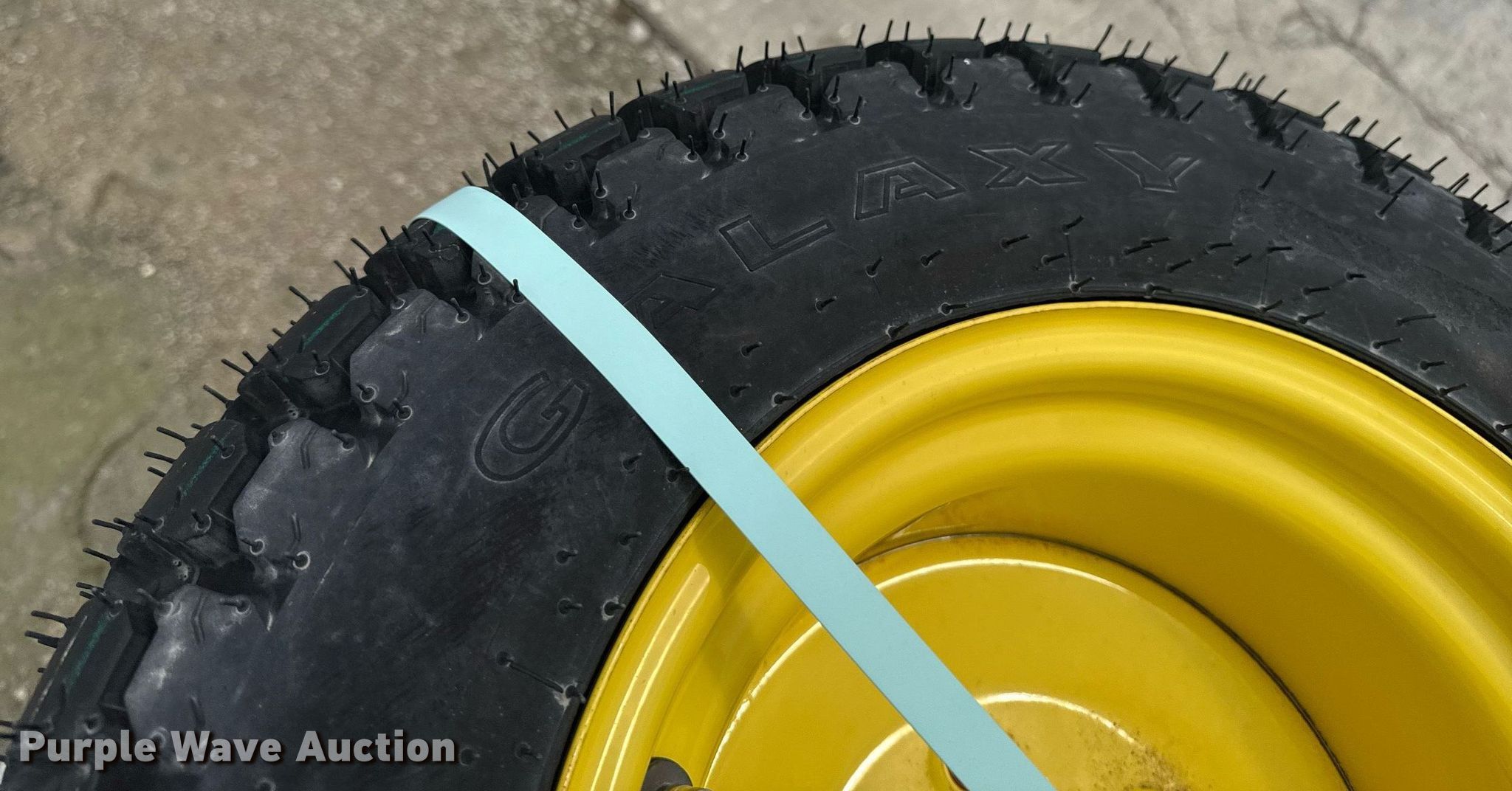 Galaxy Mighty Mow turf tires and wheels. (2) 23-8.50-12SS, (2) 12-16.5 NHS. Notes Removed from 2025R, Unused. AgriVision Equipment. Winterset, IA 50273