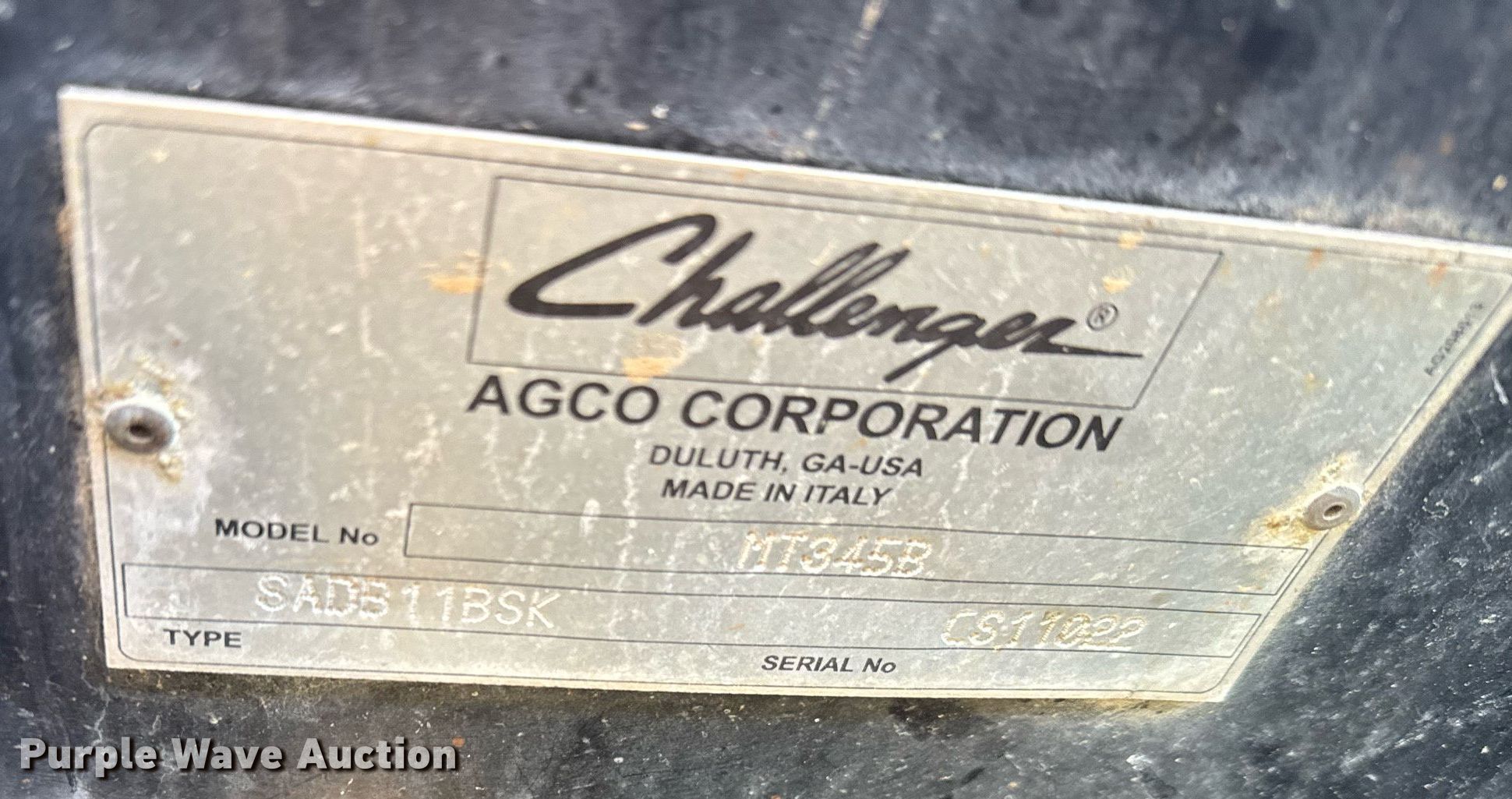 Purple Wave is selling a used Tractor in Kansas. This item is a 2007 Challenger MT345B tractor with the following: Hours: Unknown, Serial: CS11022